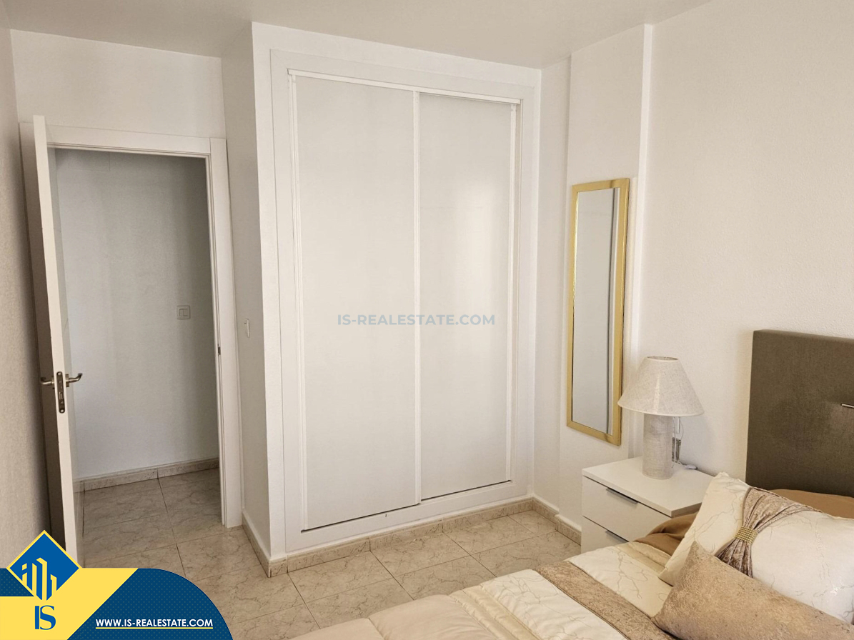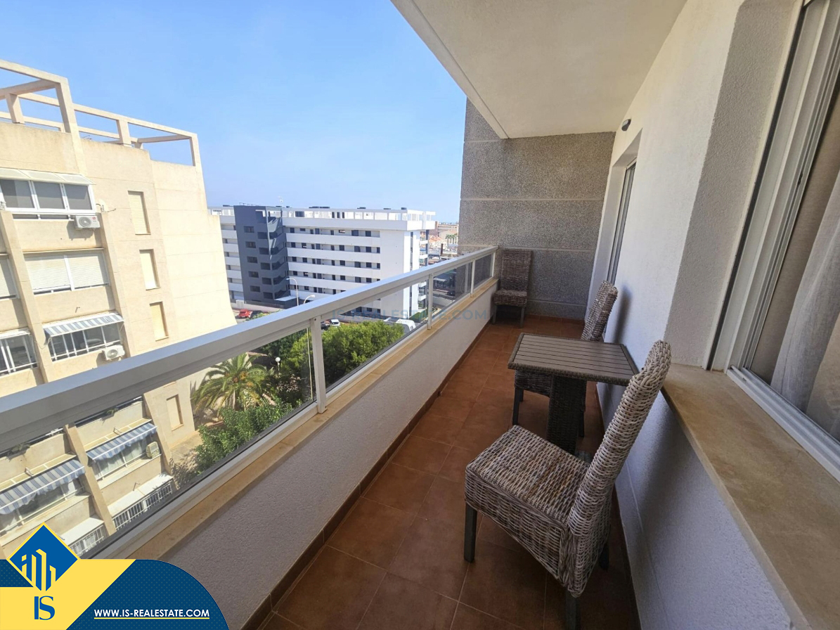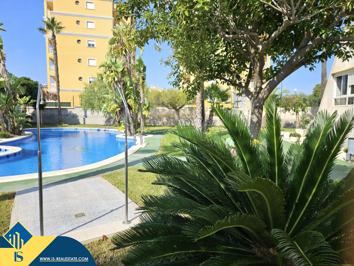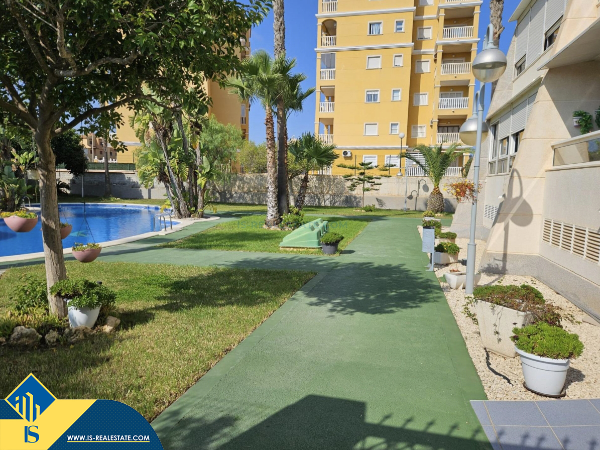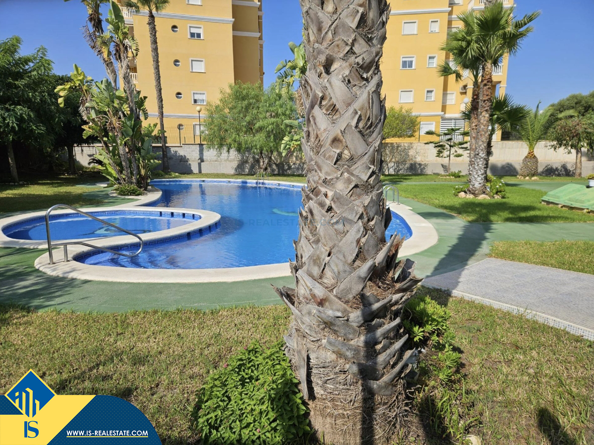 2-jų kambarių renovuotas apartamentas su bendru baseinu, Ispanijoje, Alicante provincijoje, Torrevieja mieste, bendras plotas 60 m², 1 kilometras iki jūros, 45 kilometrai iki Alicante oro uosto. Turtui priklauso bendras baseinas, terasa, vieta automobiliui. Netoli turto yra parduotuvės, restoranai, vaistinės, autobusų stotelės, degalinės, žalios zonos, kavinės
