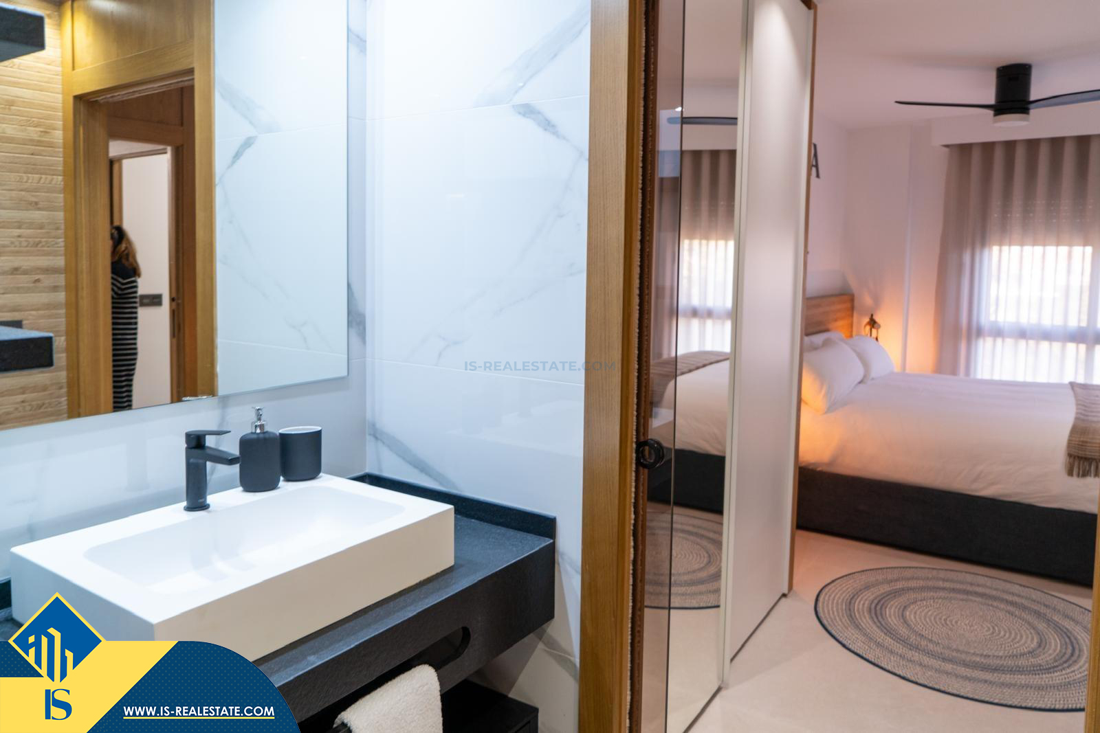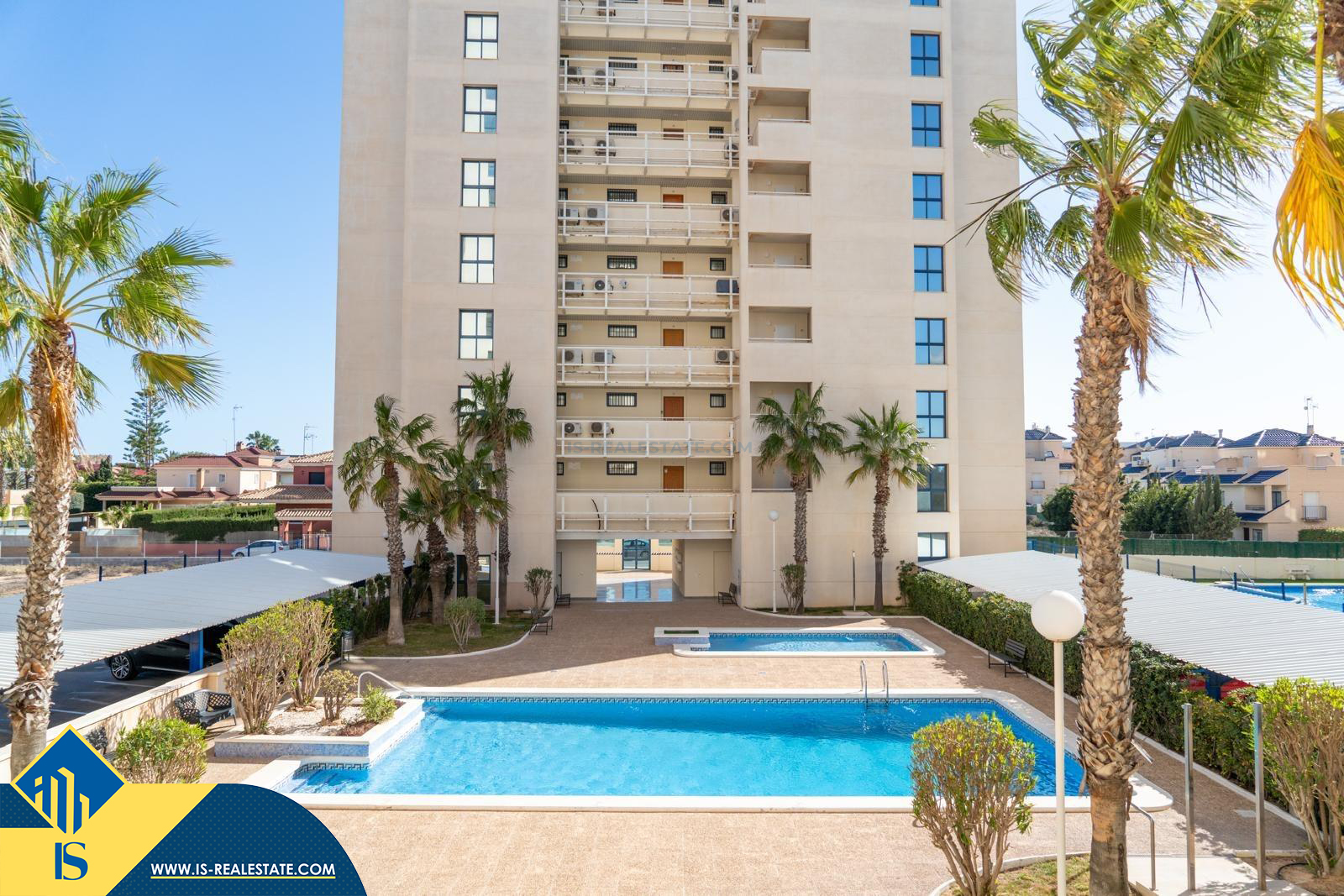 3-jų kambarių renovuotas apartamentas su bendru baseinu, Ispanijoje, Alicante provincijoje, Torrevieja mieste, Playa de los Náufragos rajone, bendras plotas 94 m², 60 metrų iki jūros, 45 kilometrai iki Alicante oro uosto. Turtui priklauso terasa, liftas, bendras baseinas. Netoli turto yra parduotuvės, restoranai, vaistinės, autobusų stotelės, degalinės, žalios zonos, kavinės
