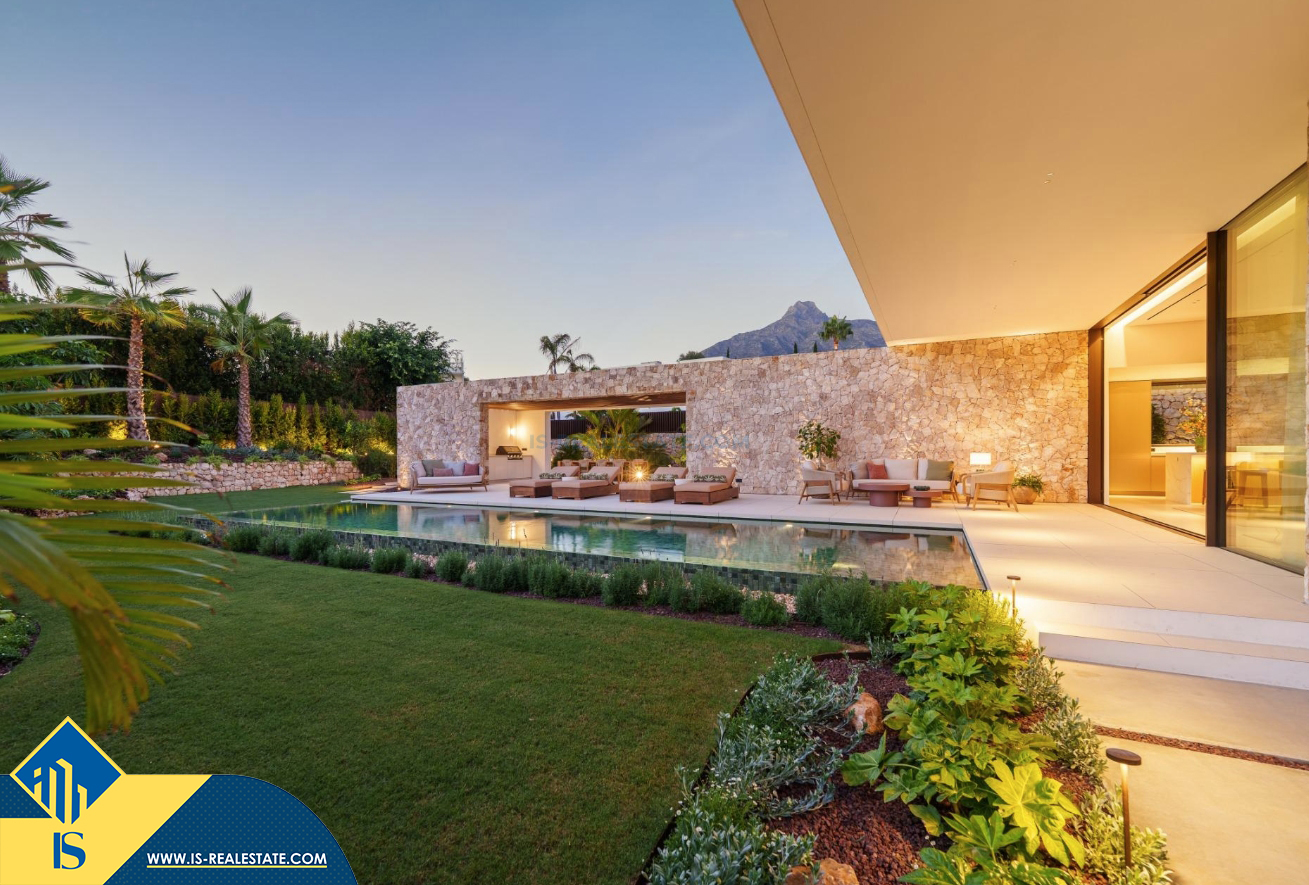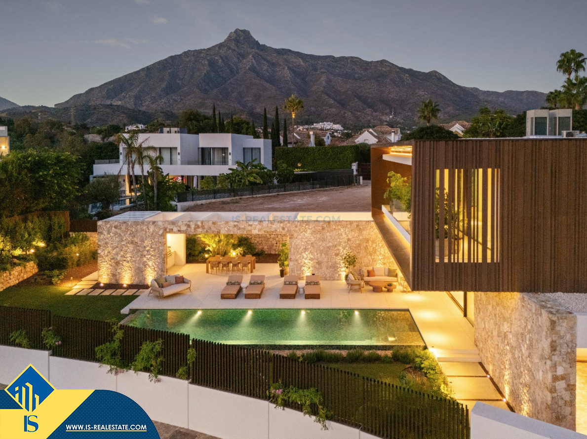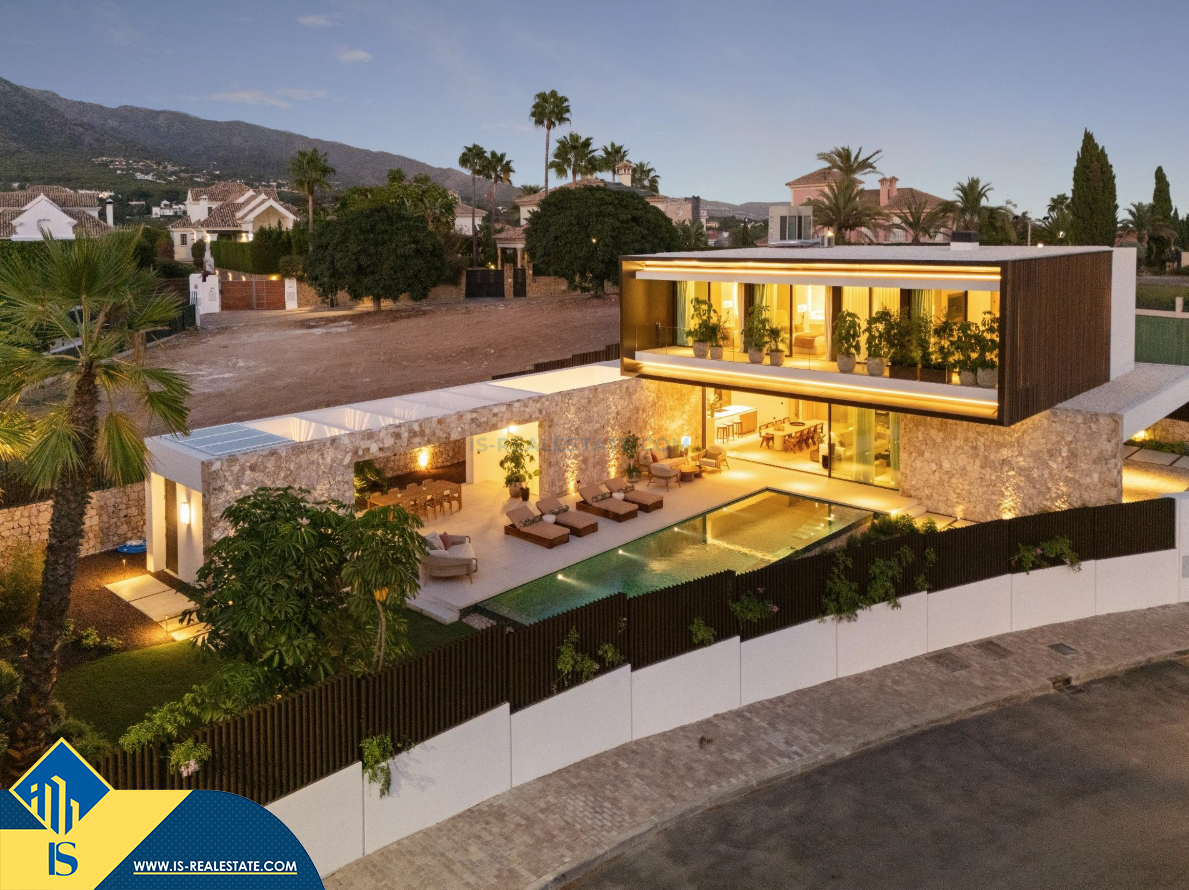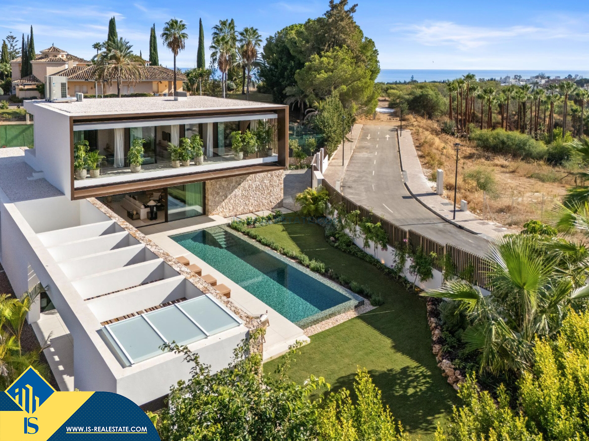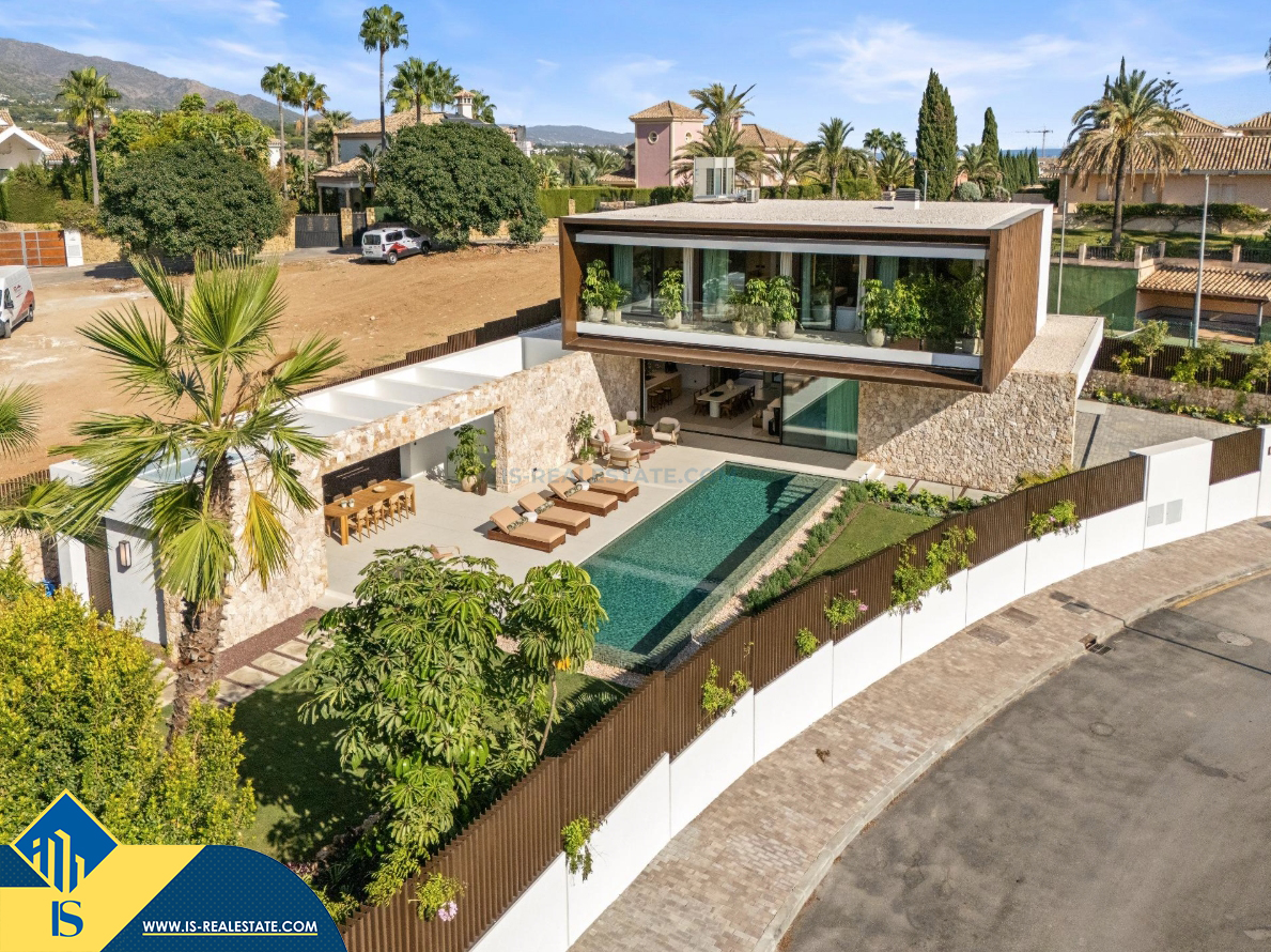 6-ių kambarių vila su privačiu baseinu, Ispanijoje, Malaga provincijoje, Marbella mieste, Auksinės mylios rajone, bendras plotas 696 m², 1 kilometras iki jūros, 57 kilometrai iki Malaga oro uosto. Turtui priklauso terasa, privatus baseinas, garažas, privatus kiemas. Netoli turto yra parduotuvės, restoranai, autobusų stotelės, vaikų zonos, degalinės, žalios zonos, kavinės, vaistinės, ligoninė
