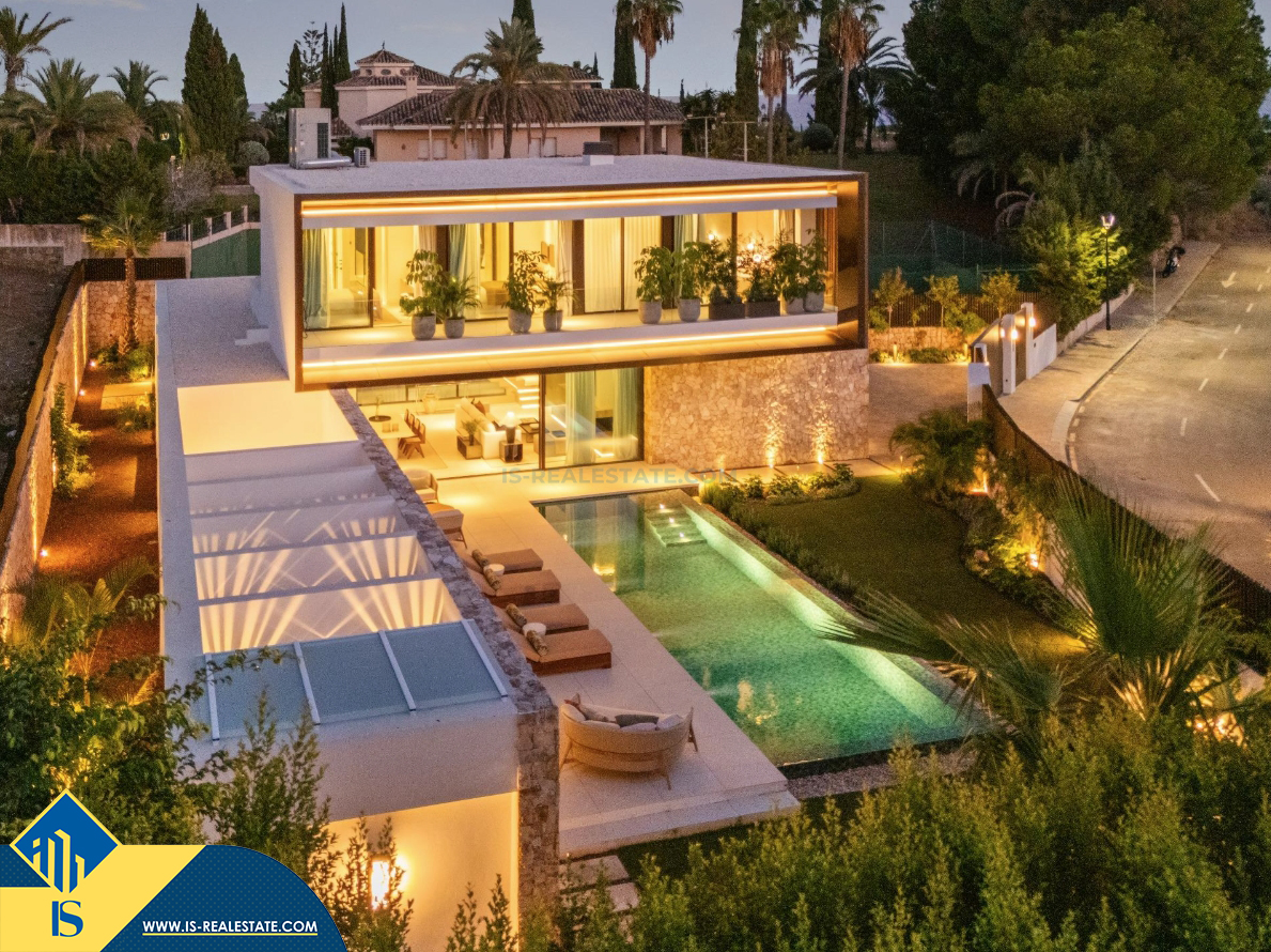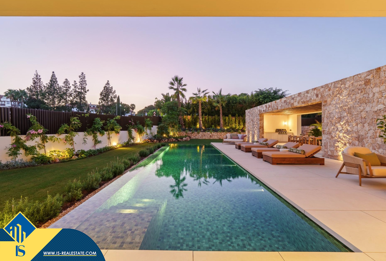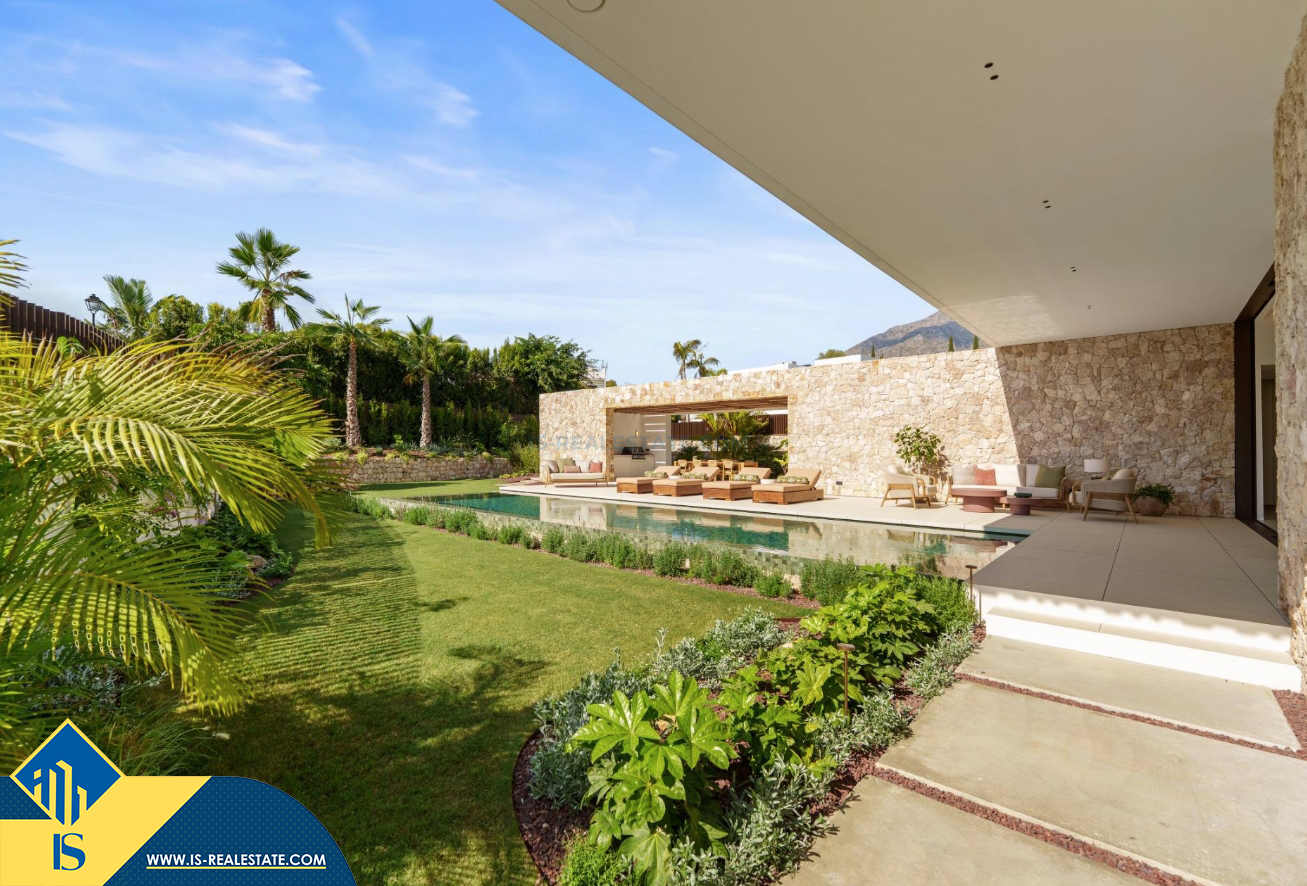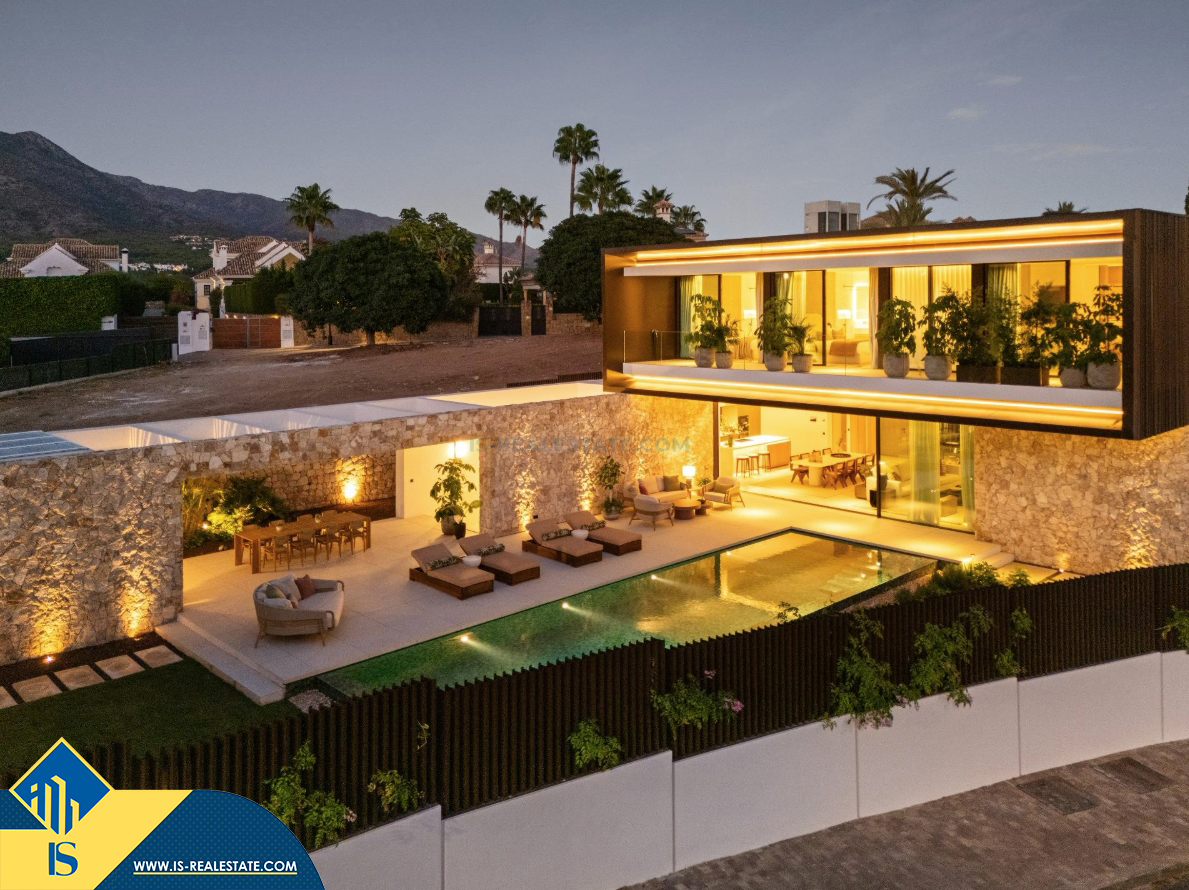 6-ių kambarių vila su privačiu baseinu, Ispanijoje, Malaga provincijoje, Marbella mieste, Auksinės mylios rajone, bendras plotas 696 m², 1 kilometras iki jūros, 57 kilometrai iki Malaga oro uosto. Turtui priklauso terasa, privatus baseinas, garažas, privatus kiemas. Netoli turto yra parduotuvės, restoranai, autobusų stotelės, vaikų zonos, degalinės, žalios zonos, kavinės, vaistinės, ligoninė