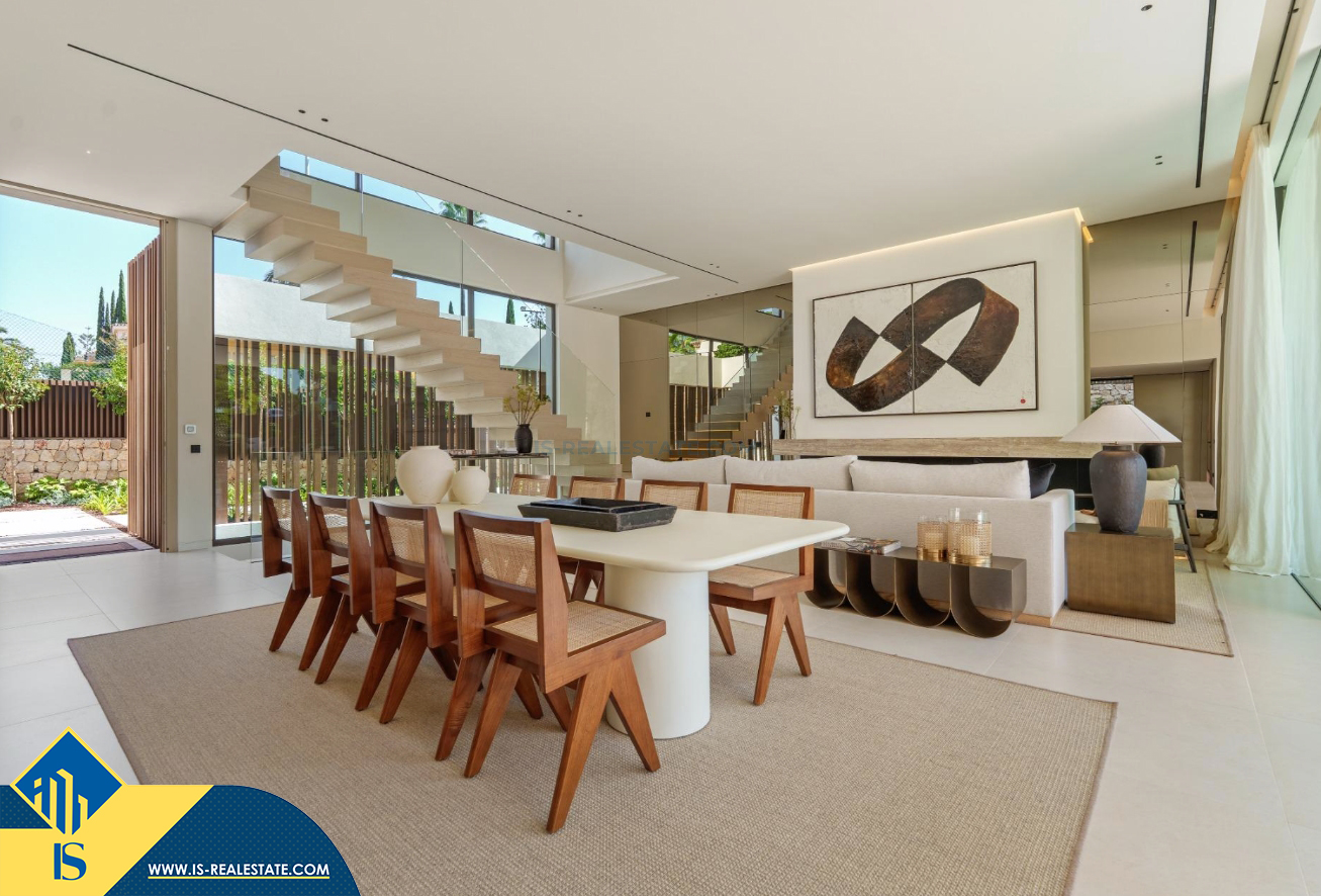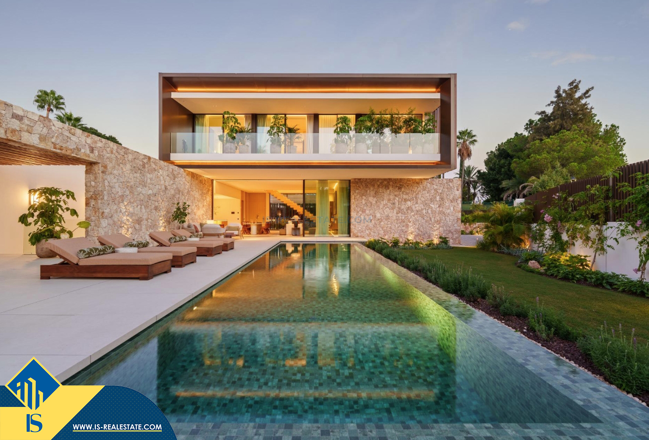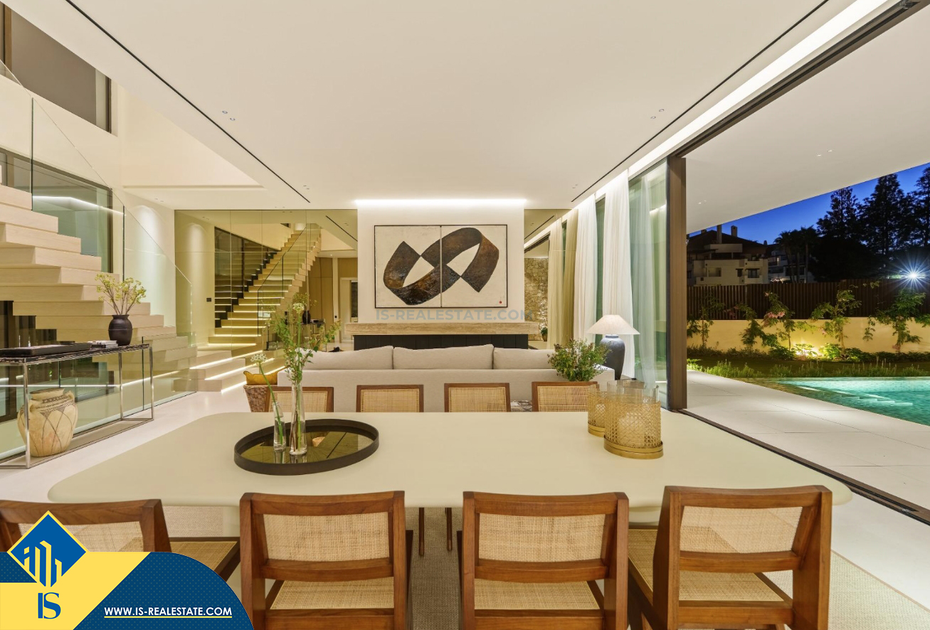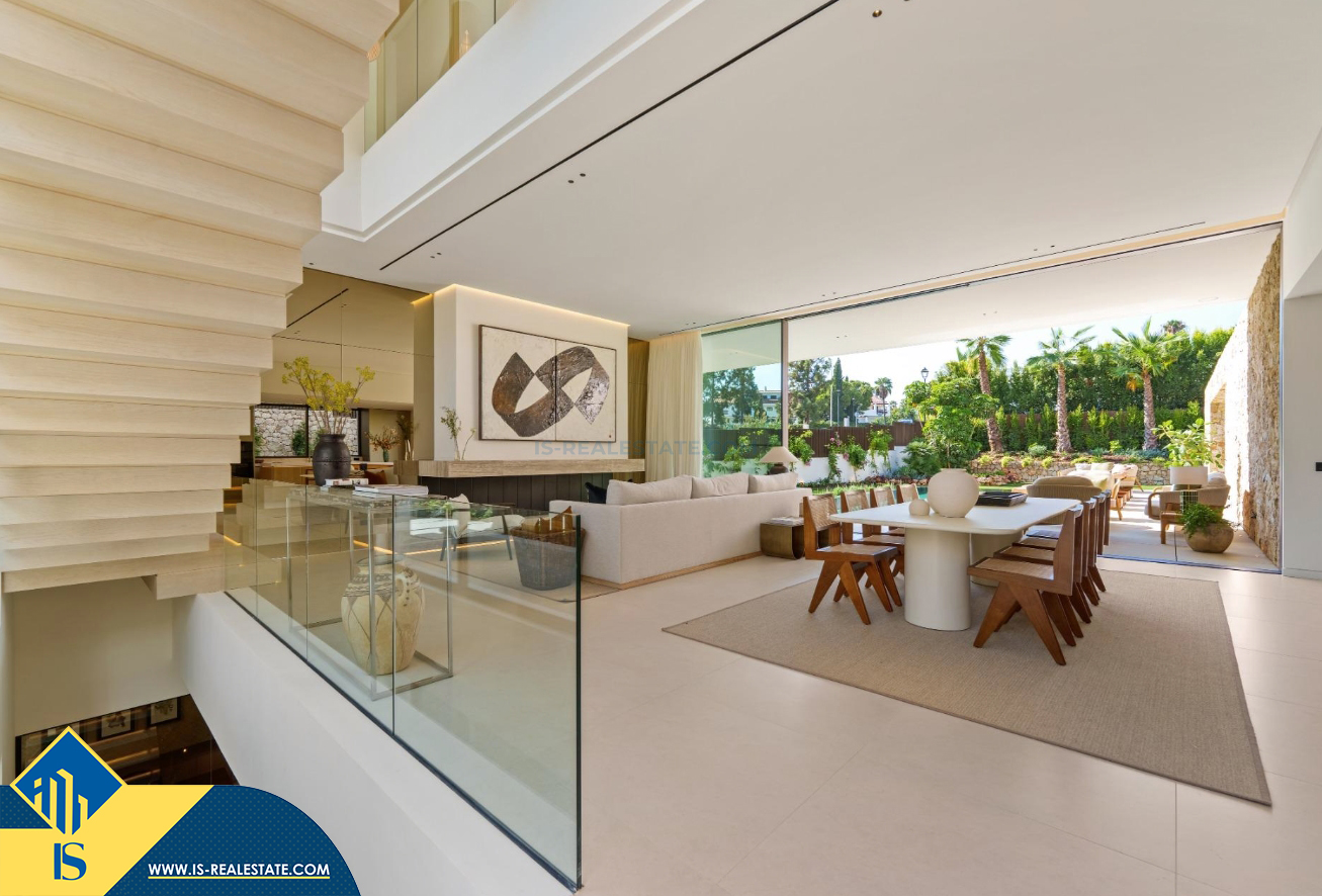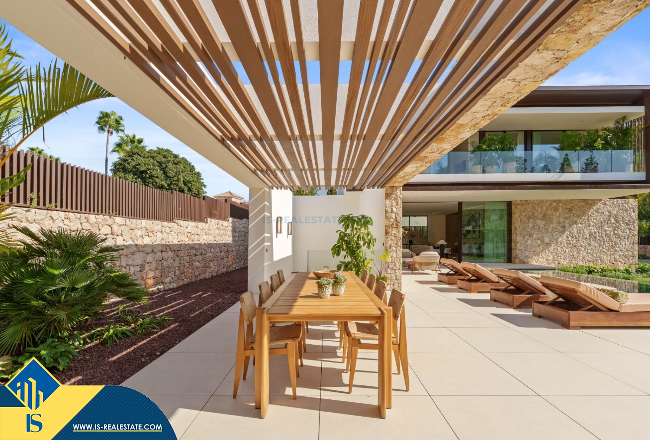 6-ių kambarių vila su privačiu baseinu, Ispanijoje, Malaga provincijoje, Marbella mieste, Auksinės mylios rajone, bendras plotas 696 m², 1 kilometras iki jūros, 57 kilometrai iki Malaga oro uosto. Turtui priklauso terasa, privatus baseinas, garažas, privatus kiemas. Netoli turto yra parduotuvės, restoranai, autobusų stotelės, vaikų zonos, degalinės, žalios zonos, kavinės, vaistinės, ligoninė