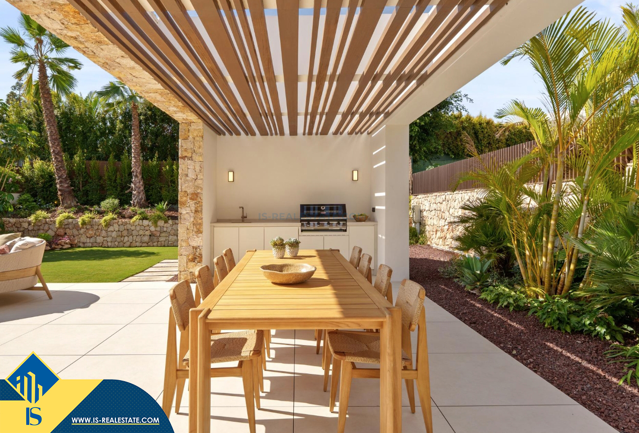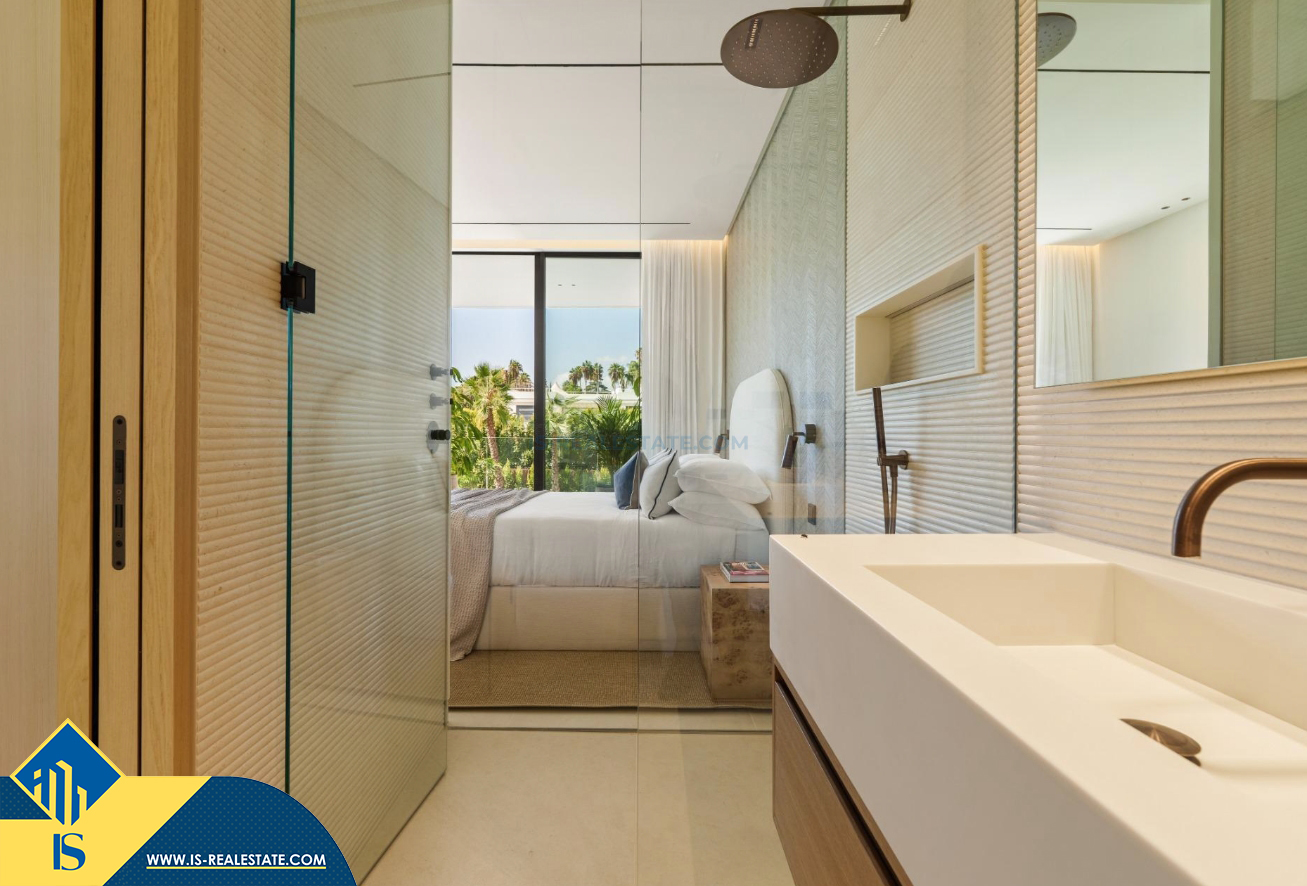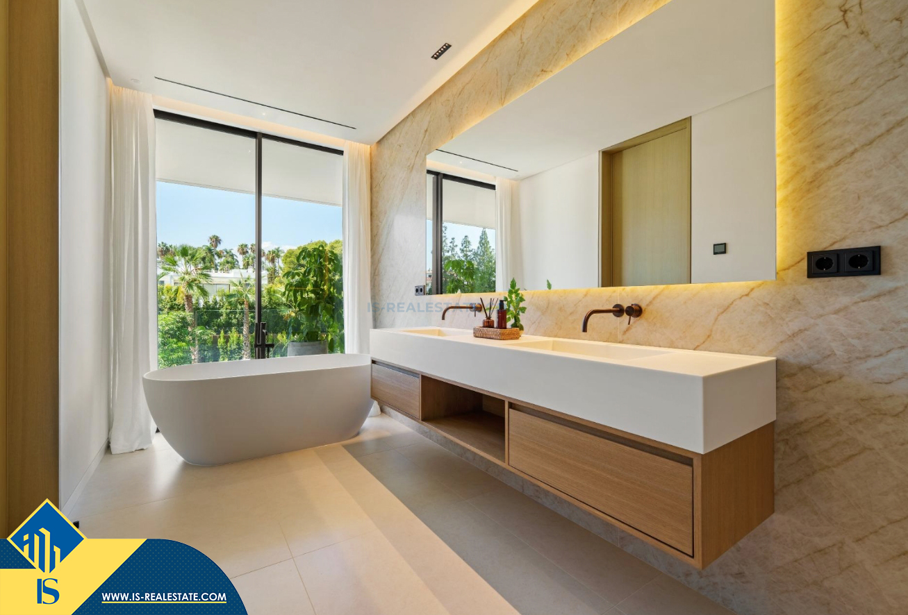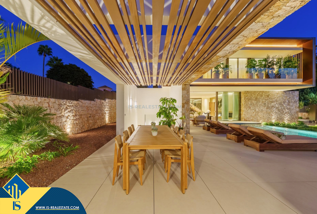 6-ių kambarių vila su privačiu baseinu, Ispanijoje, Malaga provincijoje, Marbella mieste, Auksinės mylios rajone, bendras plotas 696 m², 1 kilometras iki jūros, 57 kilometrai iki Malaga oro uosto. Turtui priklauso terasa, privatus baseinas, garažas, privatus kiemas. Netoli turto yra parduotuvės, restoranai, autobusų stotelės, vaikų zonos, degalinės, žalios zonos, kavinės, vaistinės, ligoninė