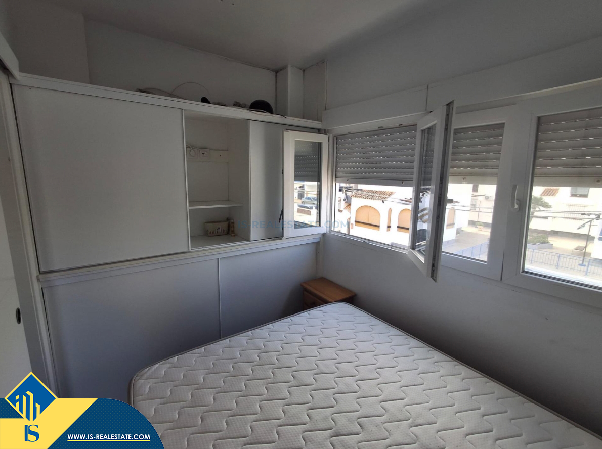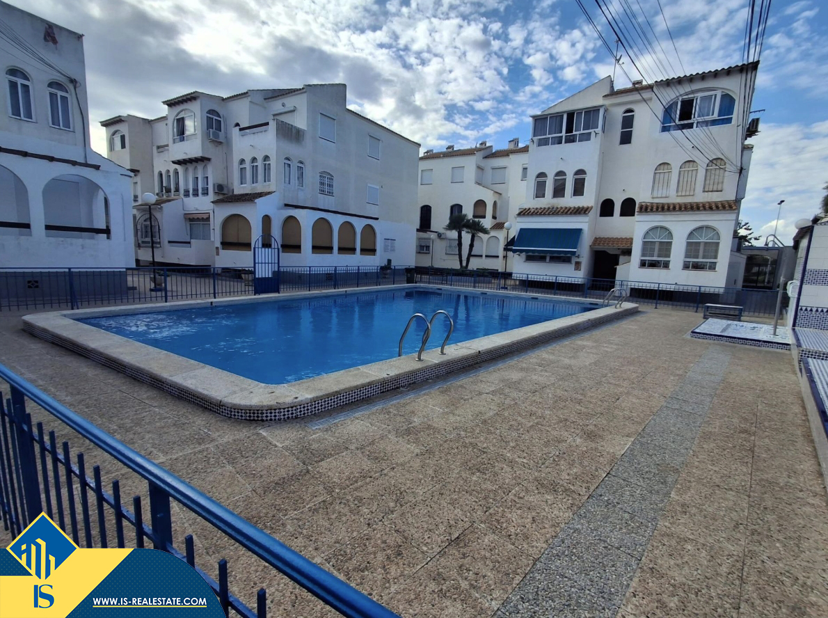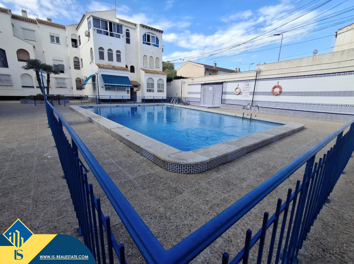 Renovuota studija su bendru baseinu, Ispanijoje, Alicante provincijoje, Torrevieja mieste, Playa de los Náufragos rajone, bendras plotas 34 m², 450 metrų iki jūros, 45 kilometrai iki Alicante oro uosto. Turtui priklauso bendras baseinas, terasa, sandėliukas. Netoli turto yra parduotuvės, restoranai, vaistinės, autobusų stotelės, degalinės, žalios zonos, kavinės