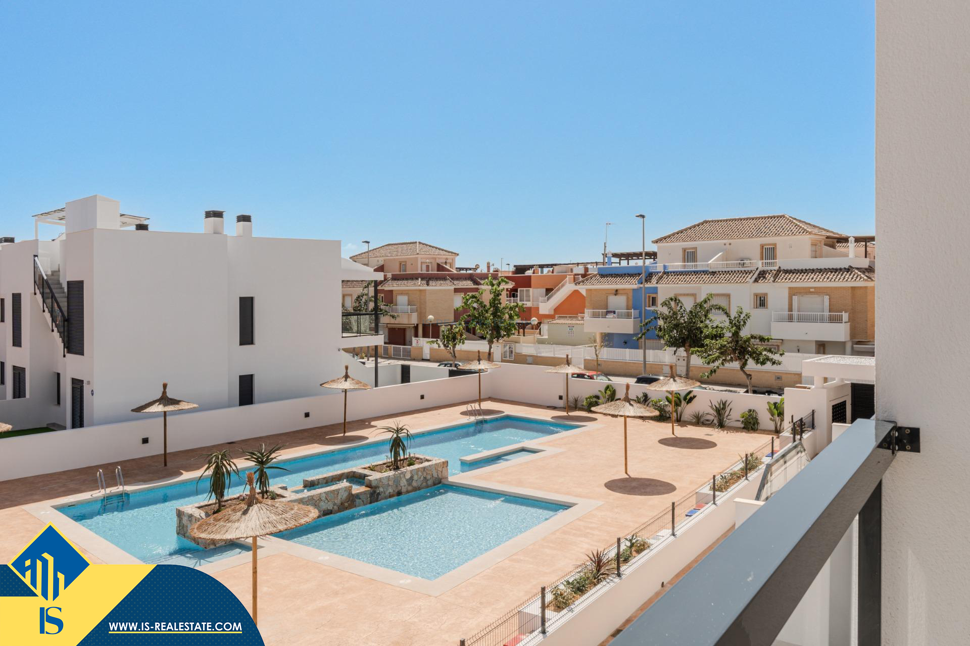 3-jų kambarių bungalas su bendru baseinu, Ispanijoje, Alicante provincijoje, Orihuela Costa mieste, bendras plotas 77 m², 2.5 kilometrai iki jūros, 55 kilometrai iki Alicante oro uosto. Turtui priklauso bendras baseinas, terasa, vieta automobiliui. Netoli turto yra parduotuvės, restoranai, autobusų stotelės, vaikų zonos, degalinės, žalios zonos, kavinės, ligoninė