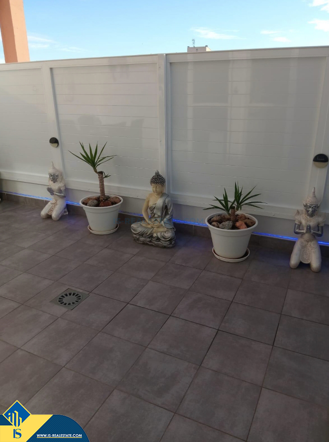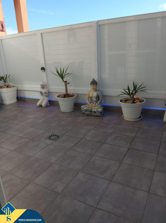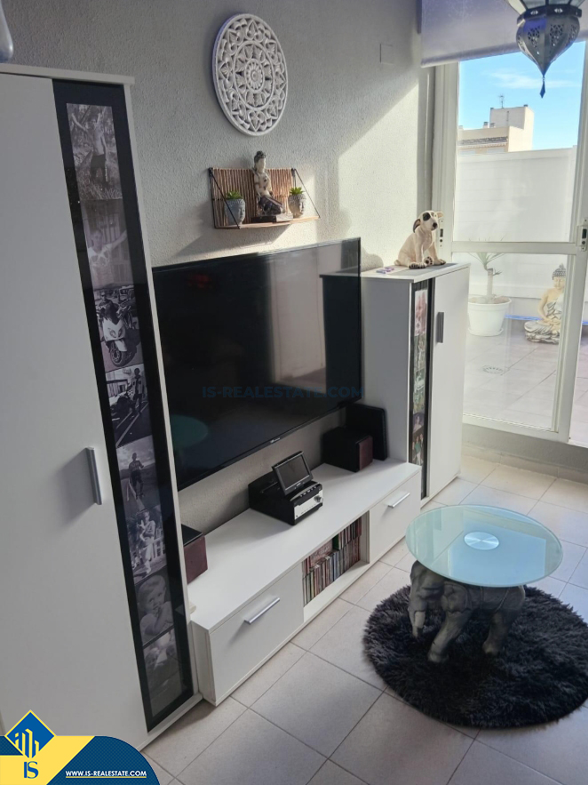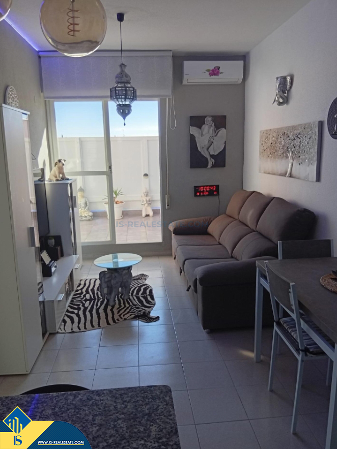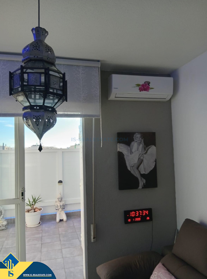 2-jų kambarių renovuotas penthouse apartamentas su terasa, Ispanijoje, Alicante provincijoje, Torrevieja mieste, bendras plotas 51 m², 800 metrų iki jūros, 45 kilometrai iki Alicante oro uosto. Turtui priklauso terasa, liftas. Netoli turto yra parduotuvės, restoranai, autobusų stotelės, degalinės, žalios zonos, kavinės, vaistinės