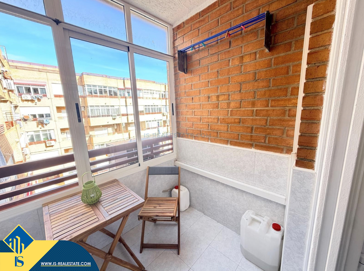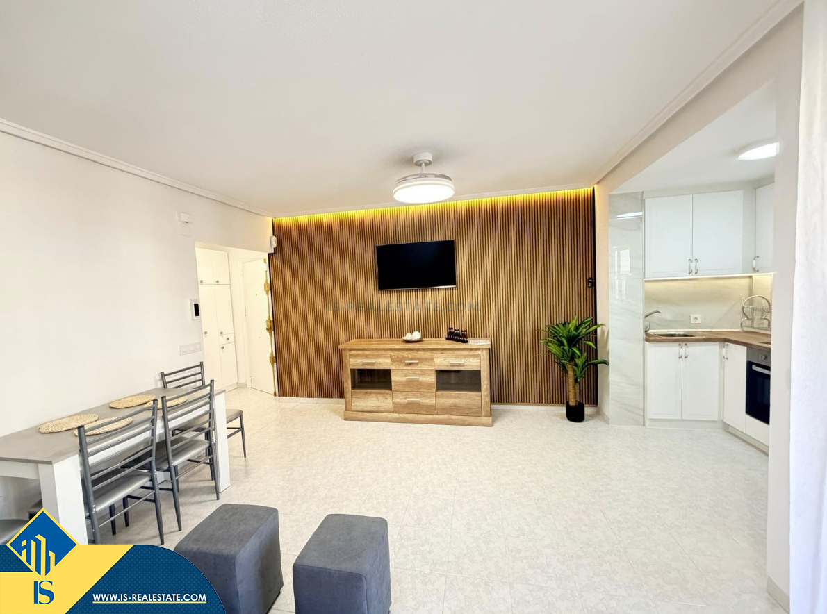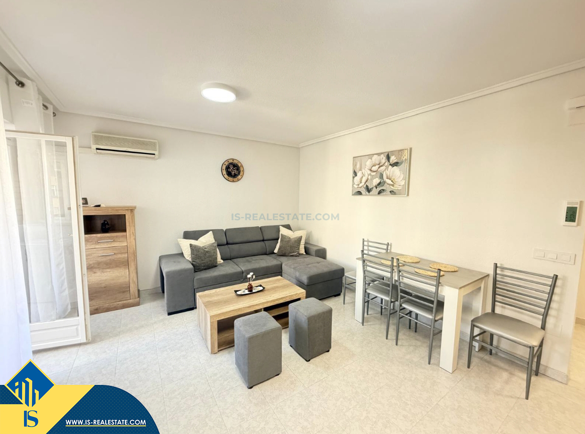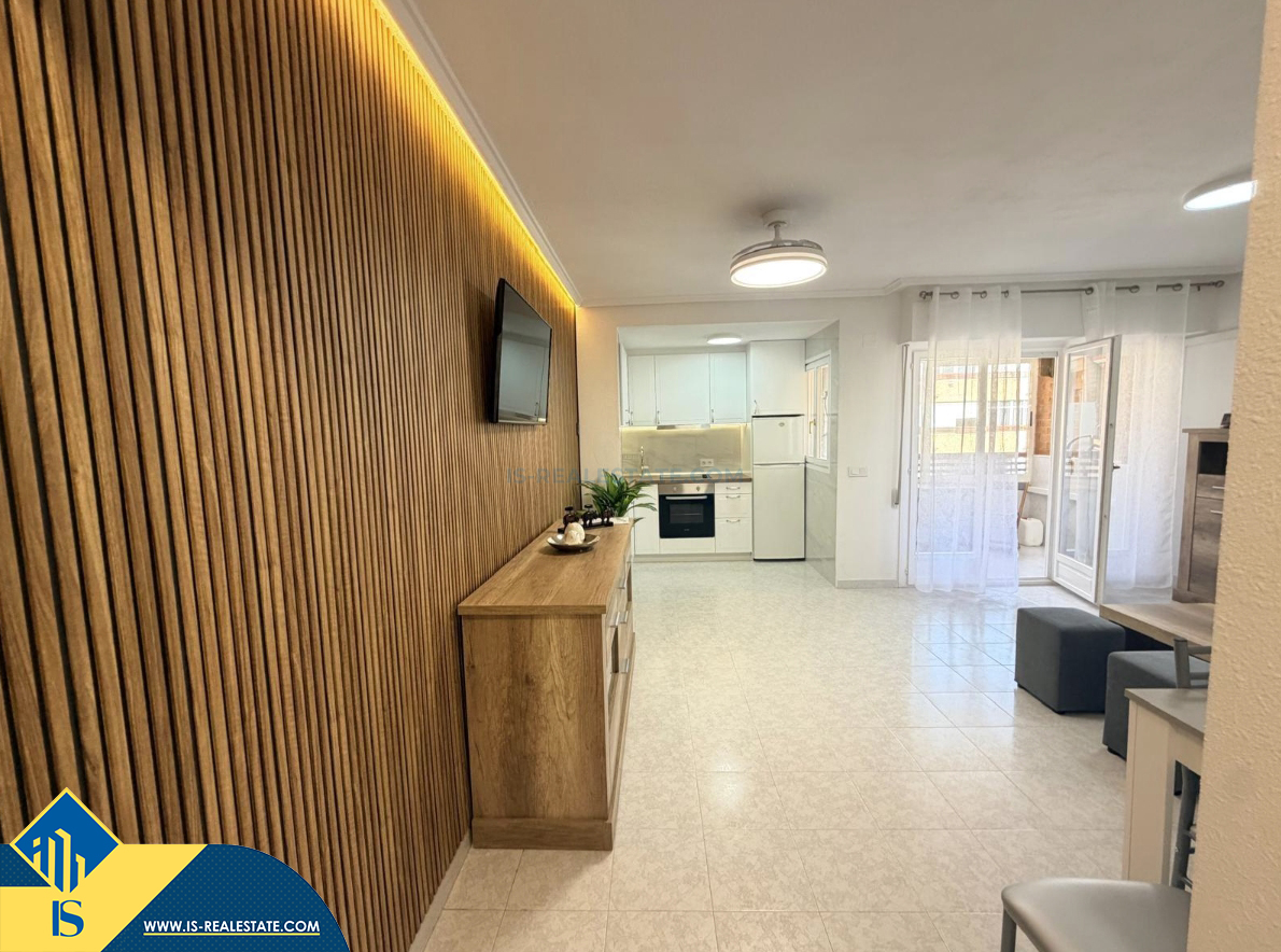 Renovuota studija su bendru baseinu, Ispanijoje, Alicante provincijoje, Torrevieja mieste, bendras plotas 50 m², 900 metrų iki jūros, 45 kilometrai iki Alicante oro uosto. Turtui priklauso bendras baseinas, terasa, liftas. Netoli turto yra parduotuvės, restoranai, vaistinės, autobusų stotelės, degalinės, žalios zonos, kavinės