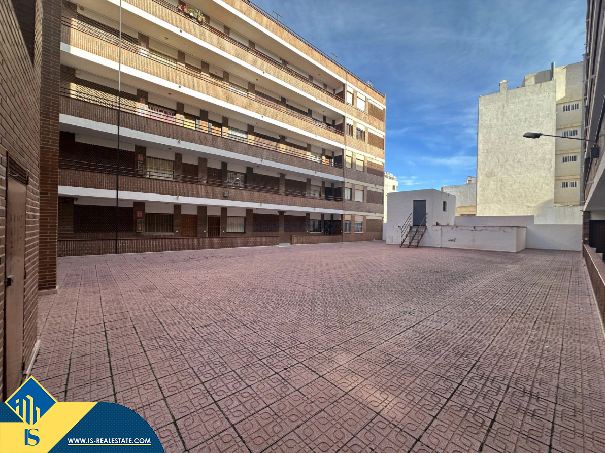 2-jų kambarių apartamentas su terasa, Ispanijoje, Alicante provincijoje, Torrevieja mieste, bendras plotas 57 m², 300 metrų iki jūros, 45 kilometrai iki Alicante oro uosto. Turtui priklauso terasa, soliariumas, liftas. Netoli turto yra parduotuvės, restoranai, vaistinės, autobusų stotelės, degalinės, žalios zonos, kavinės