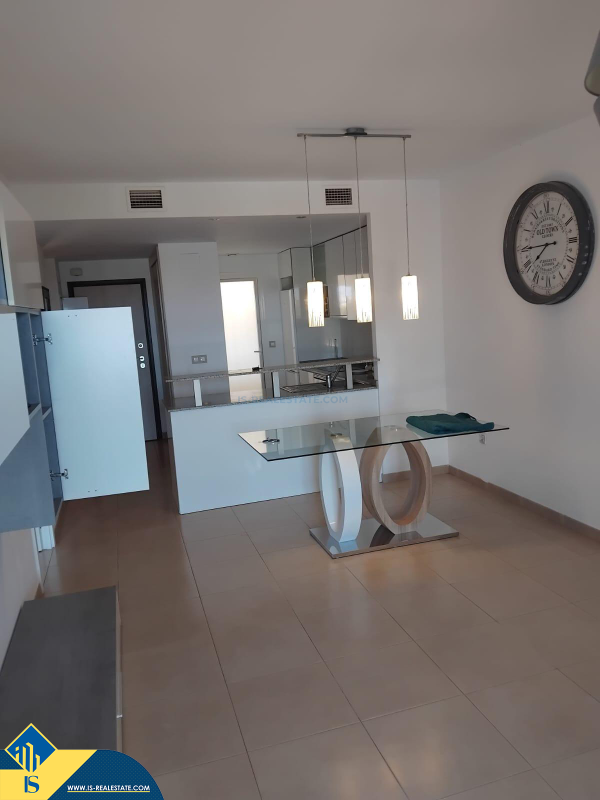 3-jų kambarių apartamentas su bendru baseinu, Ispanijoje, Alicante provincijoje, Orihuela Costa mieste, bendras plotas 112 m², 1 kilometras iki jūros, 57 kilometrai iki Alicante oro uosto. Turtui priklauso bendras baseinas, terasa. Netoli turto yra parduotuvės, restoranai, autobusų stotelės, vaikų zonos, degalinės, žalios zonos, kavinės, ligoninė