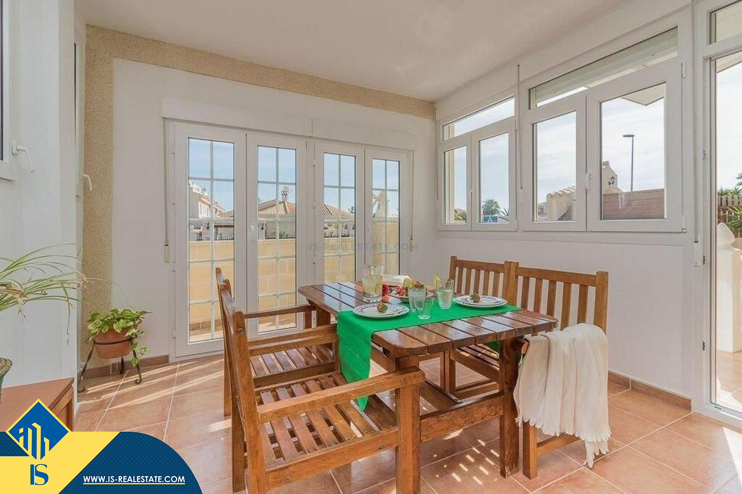 4-ių kambarių namas su bendru baseinu, Ispanijoje, Alicante provincijoje, Orihuela Costa mieste, bendras plotas 195 m², 1.5 kilometrai iki jūros, 57 kilometrai iki Alicante oro uosto. Turtui priklauso bendras baseinas, terasa. Netoli turto yra parduotuvės, restoranai, autobusų stotelės, vaikų zonos, degalinės, žalios zonos, kavinės, ligoninė
