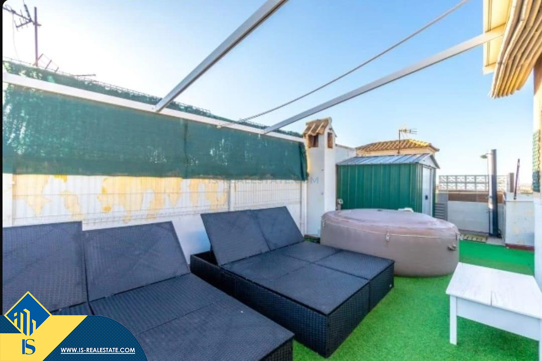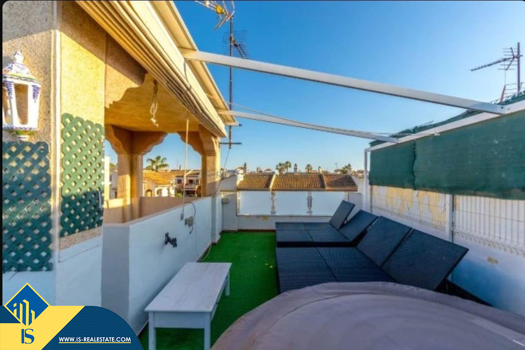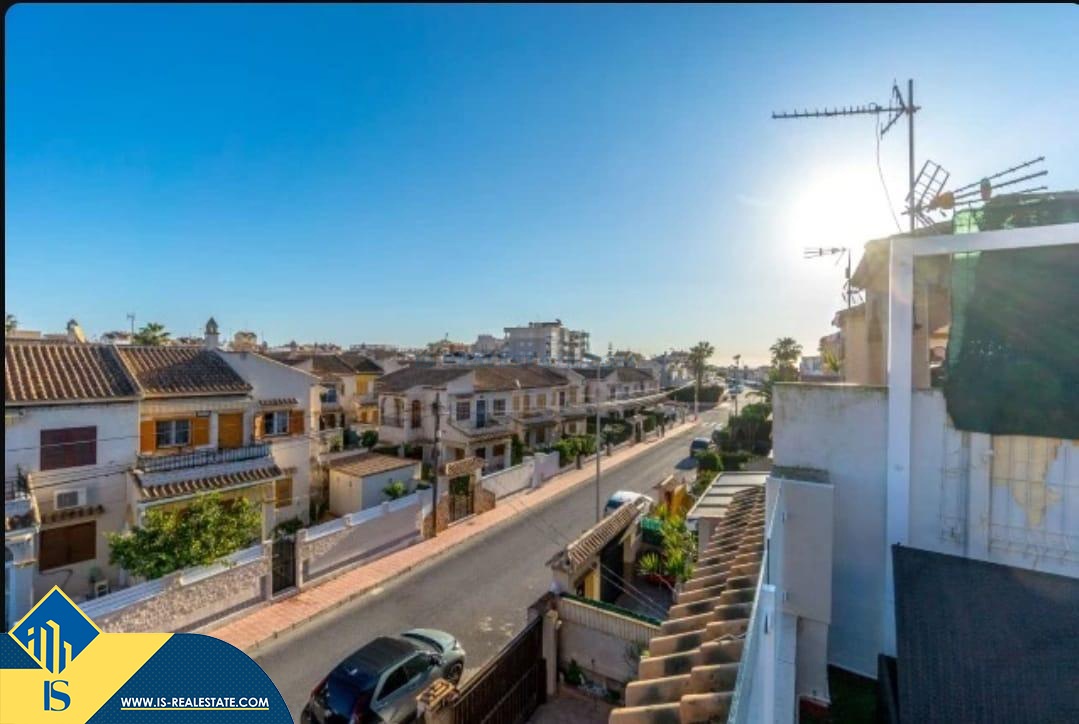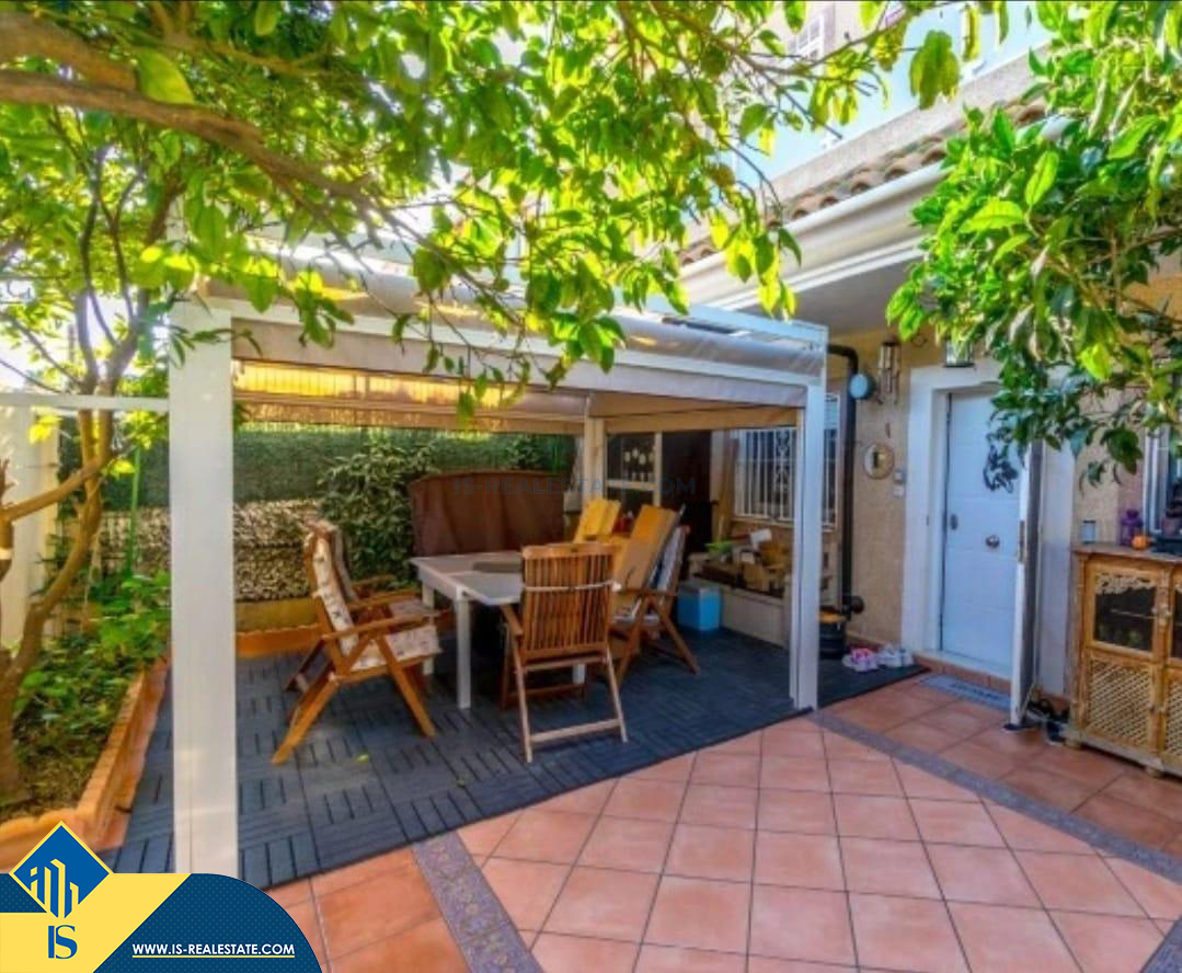 4-ių kambarių namas su bendru baseinu, Ispanijoje, Alicante provincijoje, Torrevieja mieste, La Mata rajone, bendras plotas 111 m², 1.2 kilometrai iki jūros, 38 kilometrai iki Alicante oro uosto. Turtui priklauso bendras baseinas, terasa. Netoli turto yra parduotuvės, restoranai, autobusų stotelės, vaikų zonos, degalinės, žalios zonos, kavinės