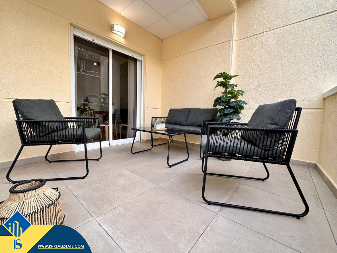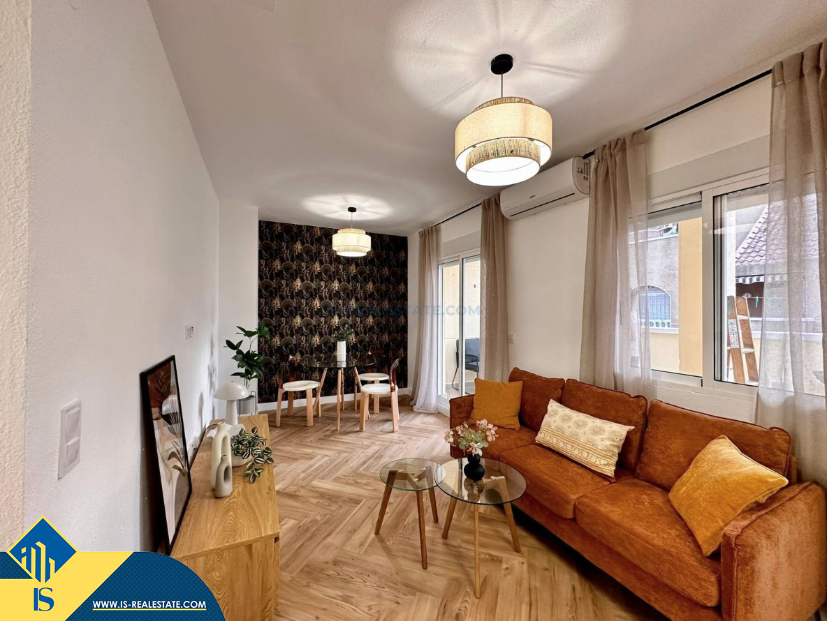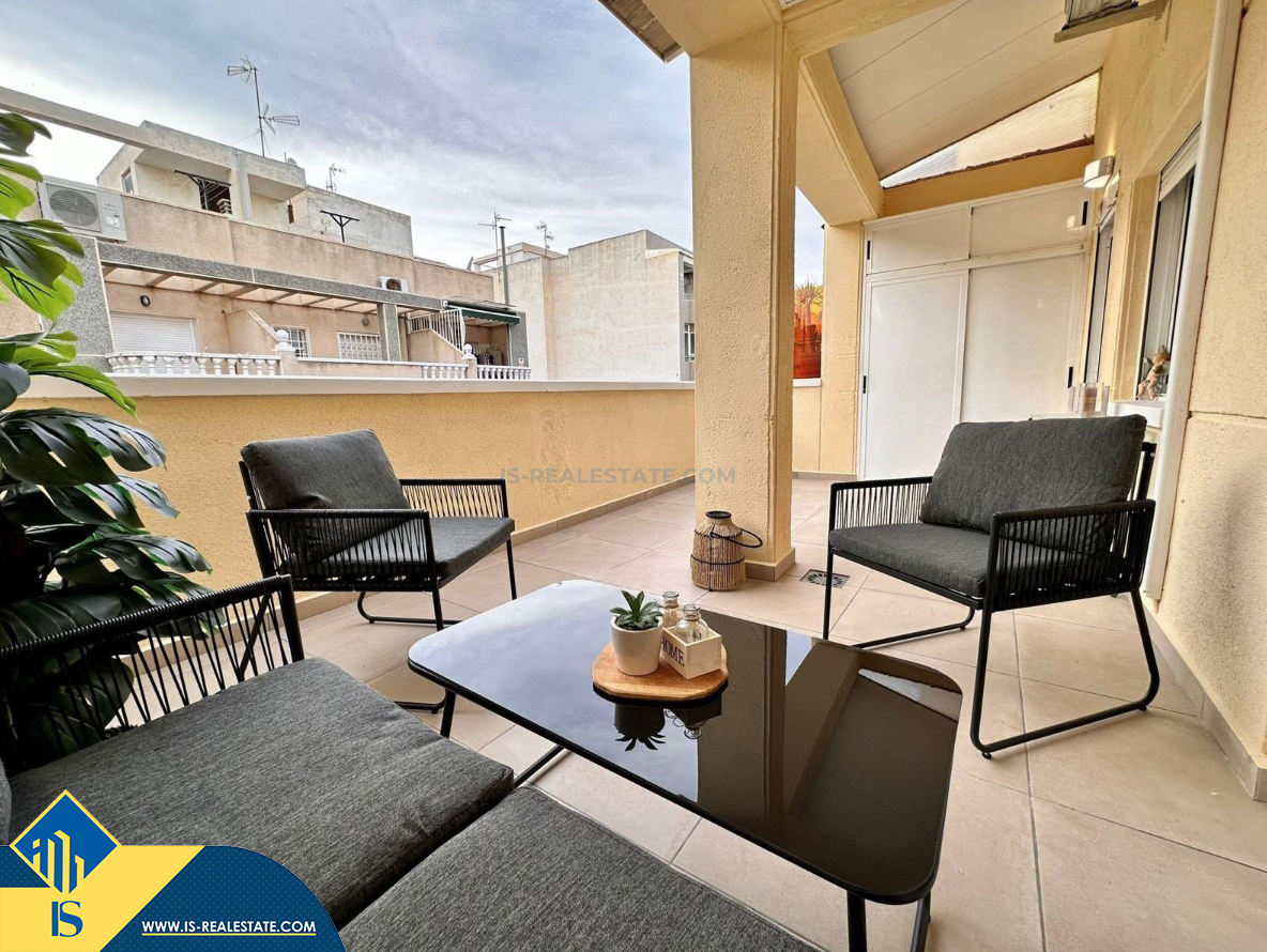 3-jų kambarių renovuotas penthouse apartamentas su terasa, Ispanijoje, Alicante provincijoje, Torrevieja mieste, bendras plotas 57 m², 280 metrų iki jūros, 45 kilometrai iki Alicante oro uosto. Turtui priklauso terasa, liftas, vieta automobiliui. Netoli turto yra parduotuvės, restoranai, autobusų stotelės, degalinės, žalios zonos, kavinės, vaistinės