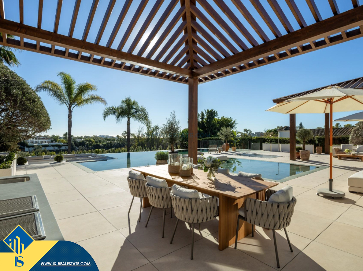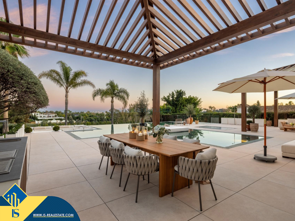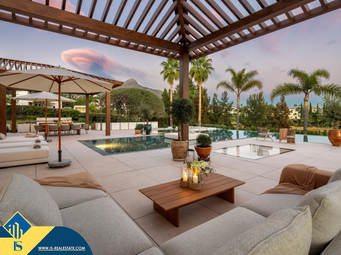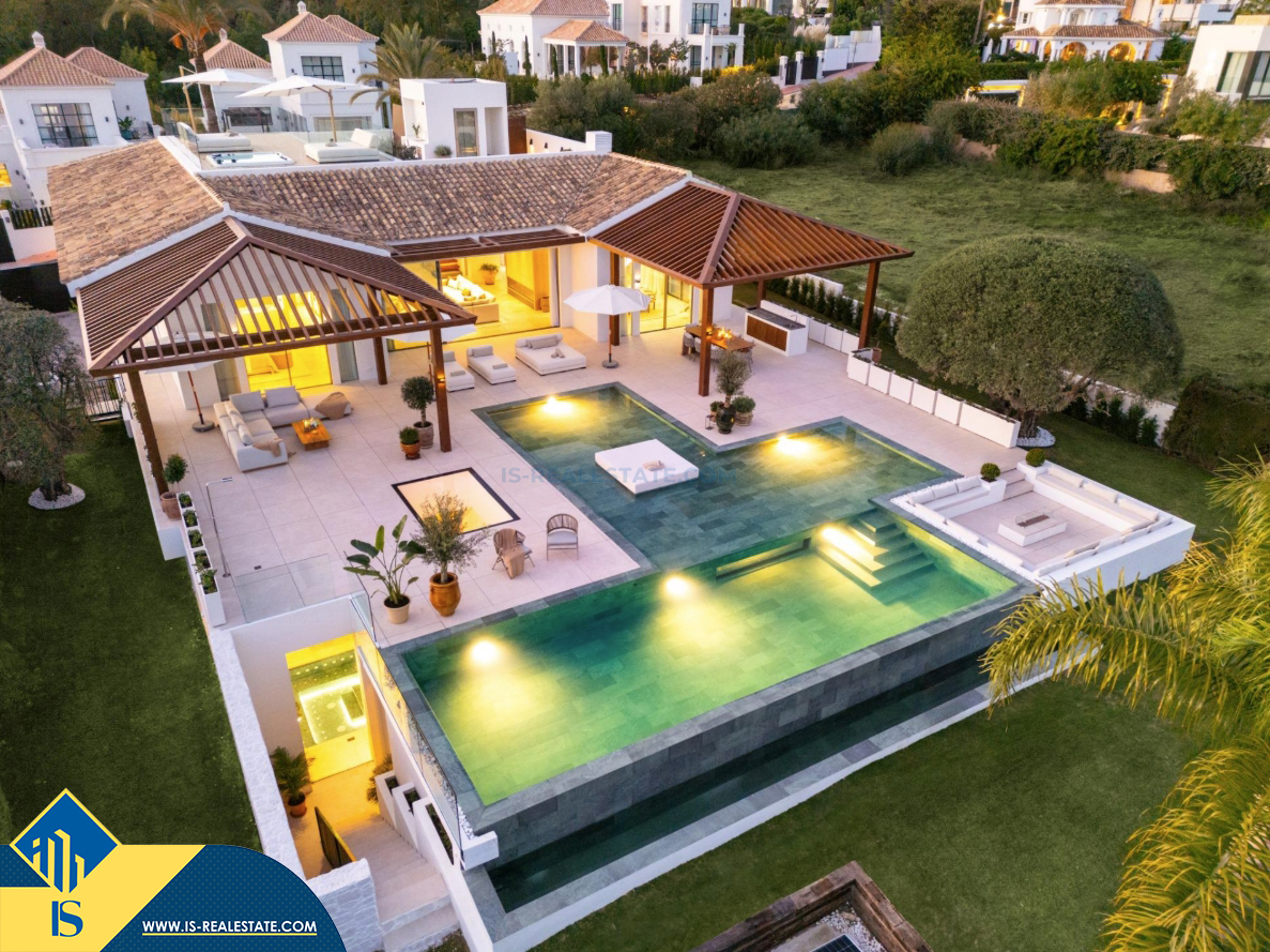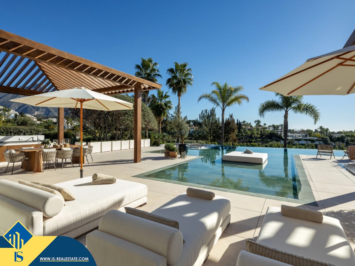 7-ių kambarių vila su privačiu baseinu, Ispanijoje, Malaga provincijoje, Marbella mieste, Nueva Andalucia rajone, bendras plotas 854 m², 4 kilometrai iki jūros, 57 kilometrai iki Malaga oro uosto. Turtui priklauso terasa, privatus baseinas, garažas, sandėliukas. Netoli turto yra parduotuvės, restoranai, autobusų stotelės, vaikų zonos, degalinės, žalios zonos, kavinės, vaistinės, ligoninė