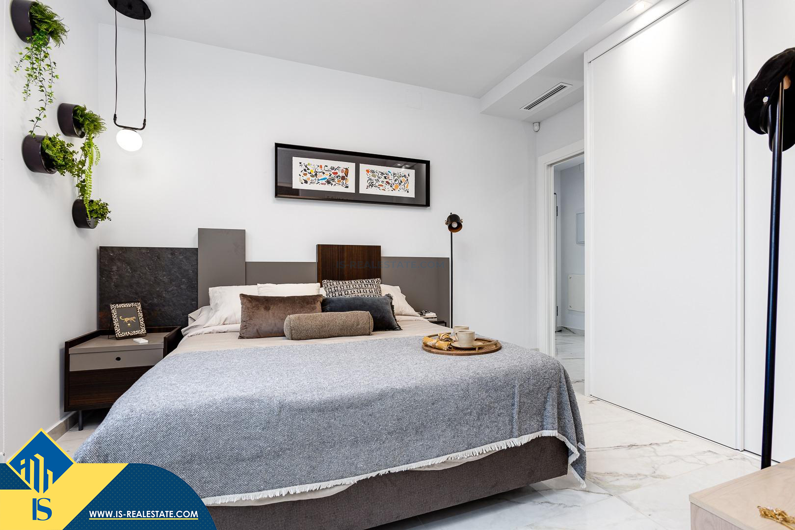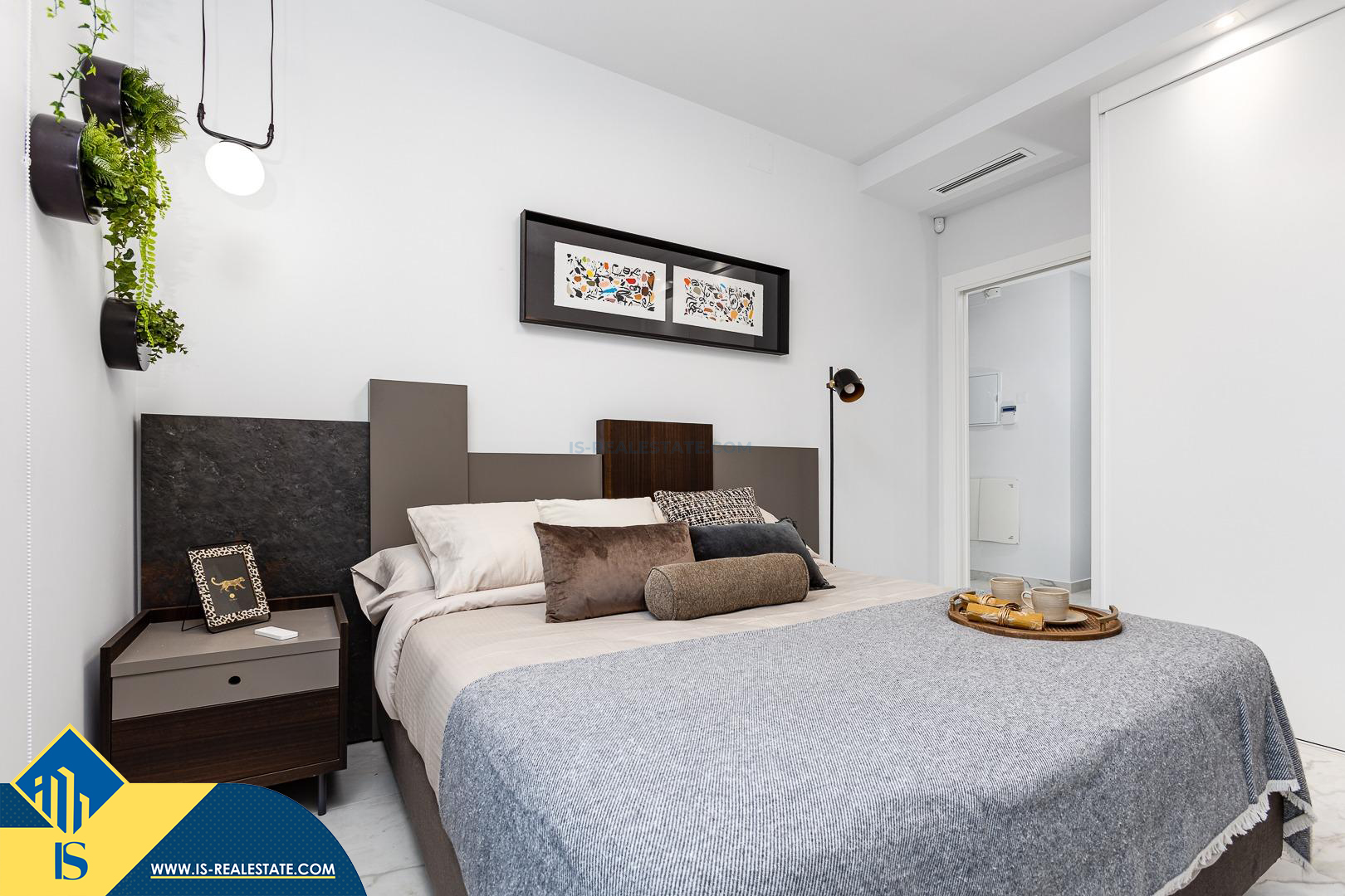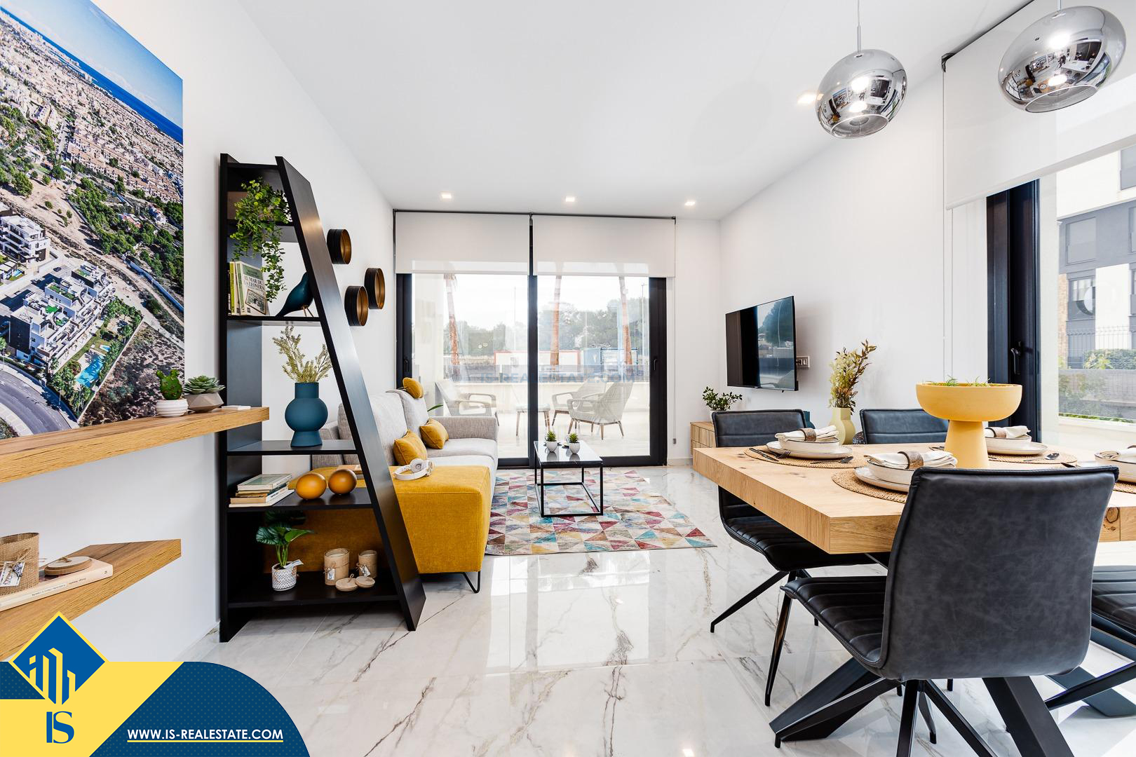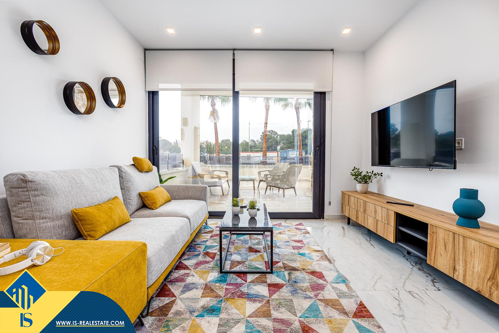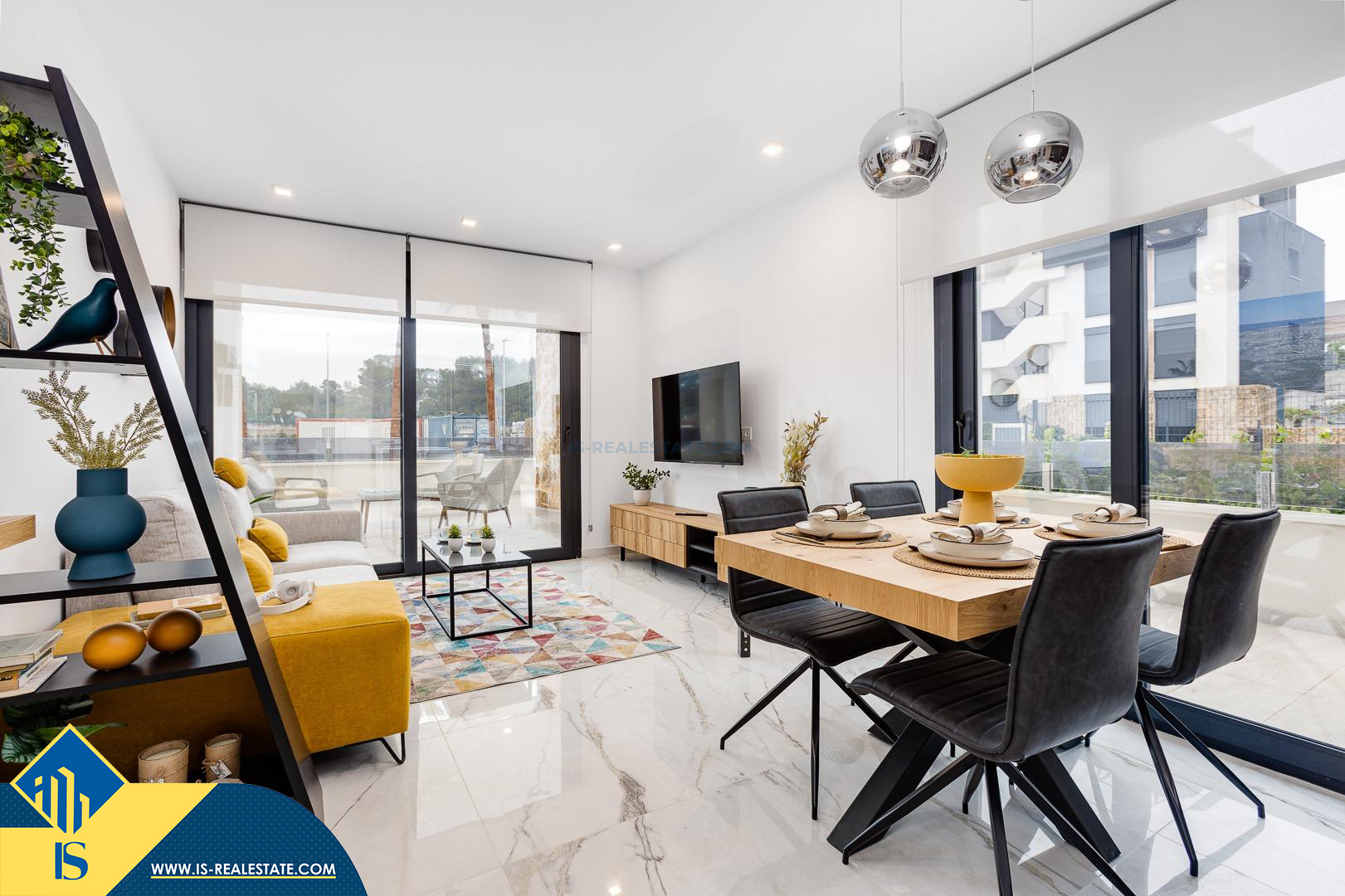 3-jų kambarių apartamentas su bendru baseinu, Ispanijoje, Alicante provincijoje, Torrevieja mieste, Torreta rajone, bendras plotas 110 m², 1.5 kilometrai, 45 kilometrai iki Alicante miesto oro uosto. Turtui priklauso bendras baseinas, terasa, vieta automobiliui. Netoli turto yra parduotuvės, restoranai, autobusų stotelės, degalinės, žalios zonos, kavinės, vaistinės