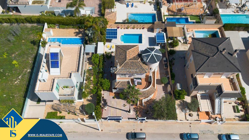 5-ių kambarių vila su privačiu baseinu, Ispanijoje, Alicante provincijoje, Orihuela Costa mieste, bendras plotas 176 m², 700 metrų iki jūros, 57 kilometrai iki Alicante oro uosto. Turtui priklauso terasa, privatus baseinas, vieta automobiliui. Netoli turto yra parduotuvės, restoranai, autobusų stotelės, vaikų zonos, degalinės, žalios zonos, kavinės, ligoninė