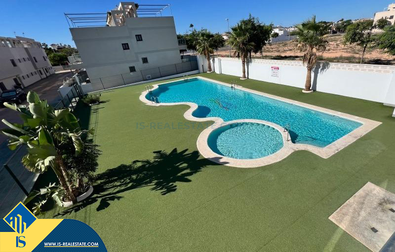 3-jų kambarių bungalas su bendru baseinu, Ispanijoje, Alicante provincijoje, Orihuela Costa mieste, bendras plotas 66 m², 600 metrų iki jūros, 55 kilometrai iki Alicante oro uosto. Turtui priklauso bendras baseinas, terasa, vieta automobiliui, soliariumas. Netoli turto yra parduotuvės, restoranai, autobusų stotelės, vaikų zonos, degalinės, žalios zonos, kavinės, ligoninė