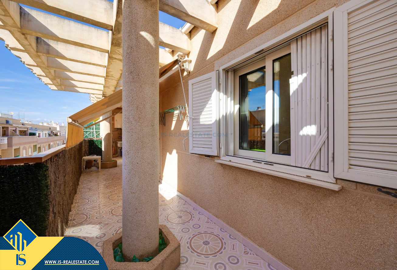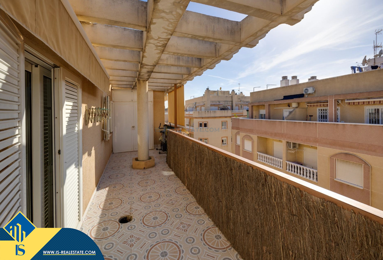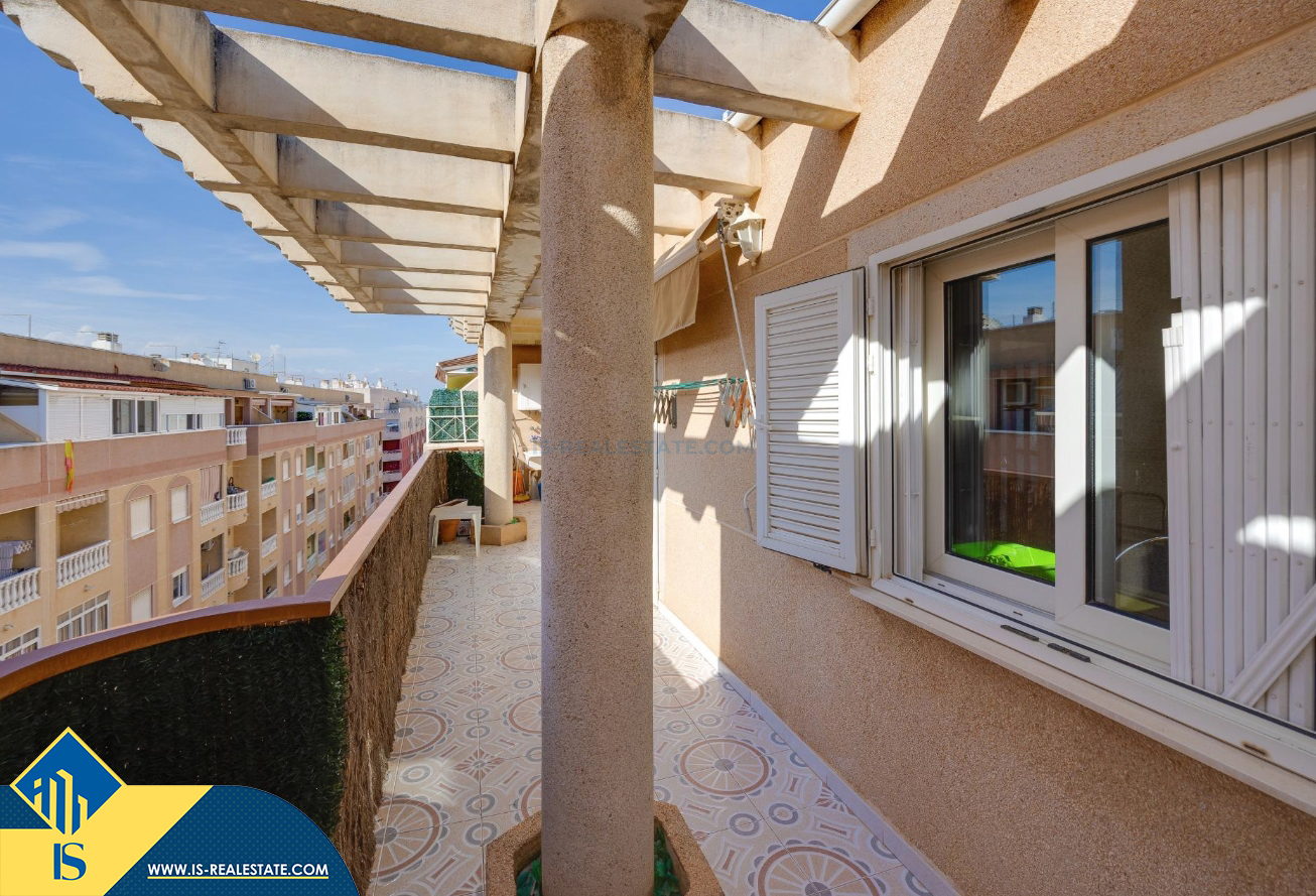3-jų kambarių penthouse apartamentas su terasa, Ispanijoje, Alicante provincijoje, Torrevieja mieste, bendras plotas 79 m², 620 metrų iki jūros, 45 kilometrai iki Alicante oro uosto. Turtui priklauso terasa, soliariumas, liftas. Netoli turto yra parduotuvės, restoranai, vaistinės, autobusų stotelės, degalinės, žalios zonos, kavinės