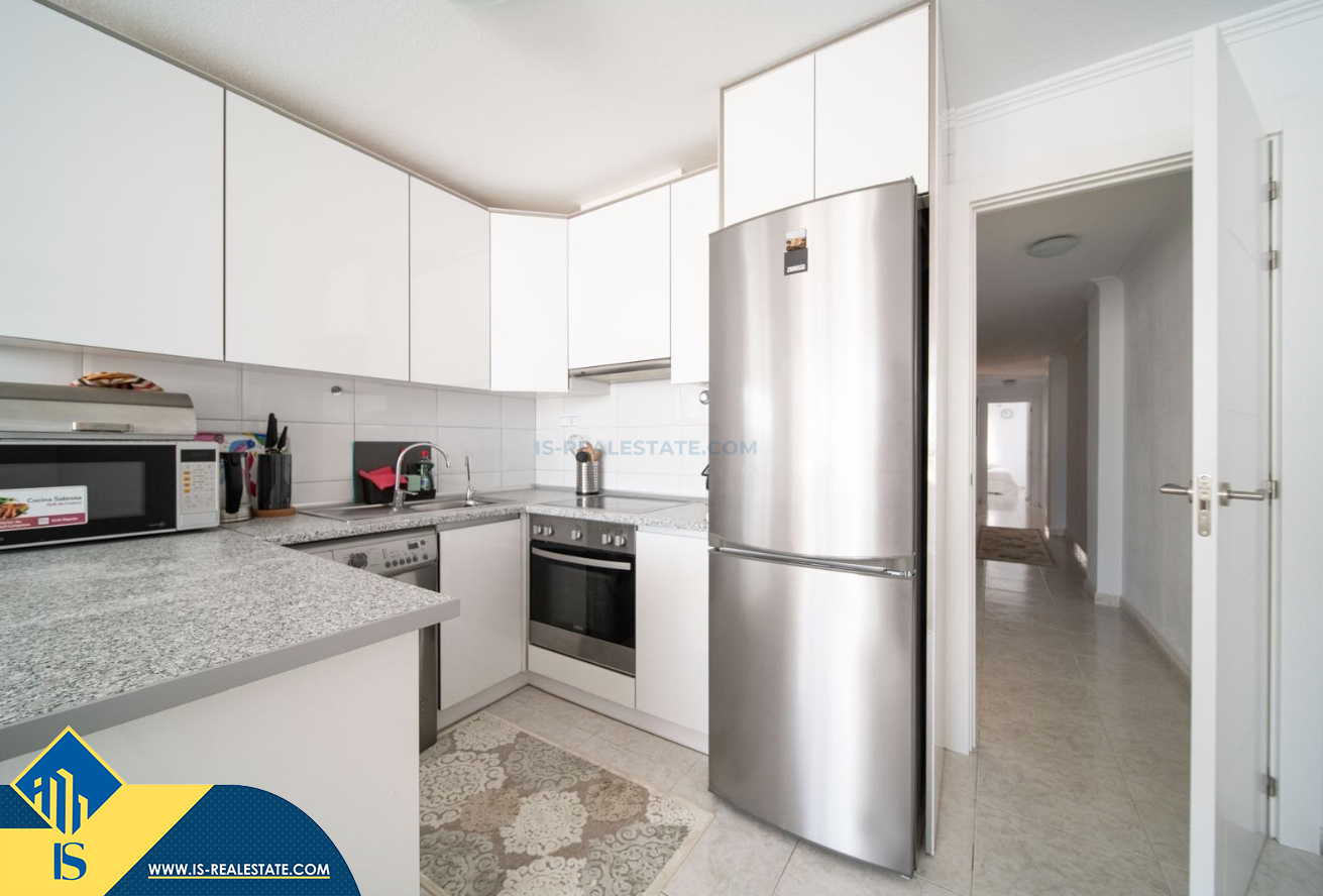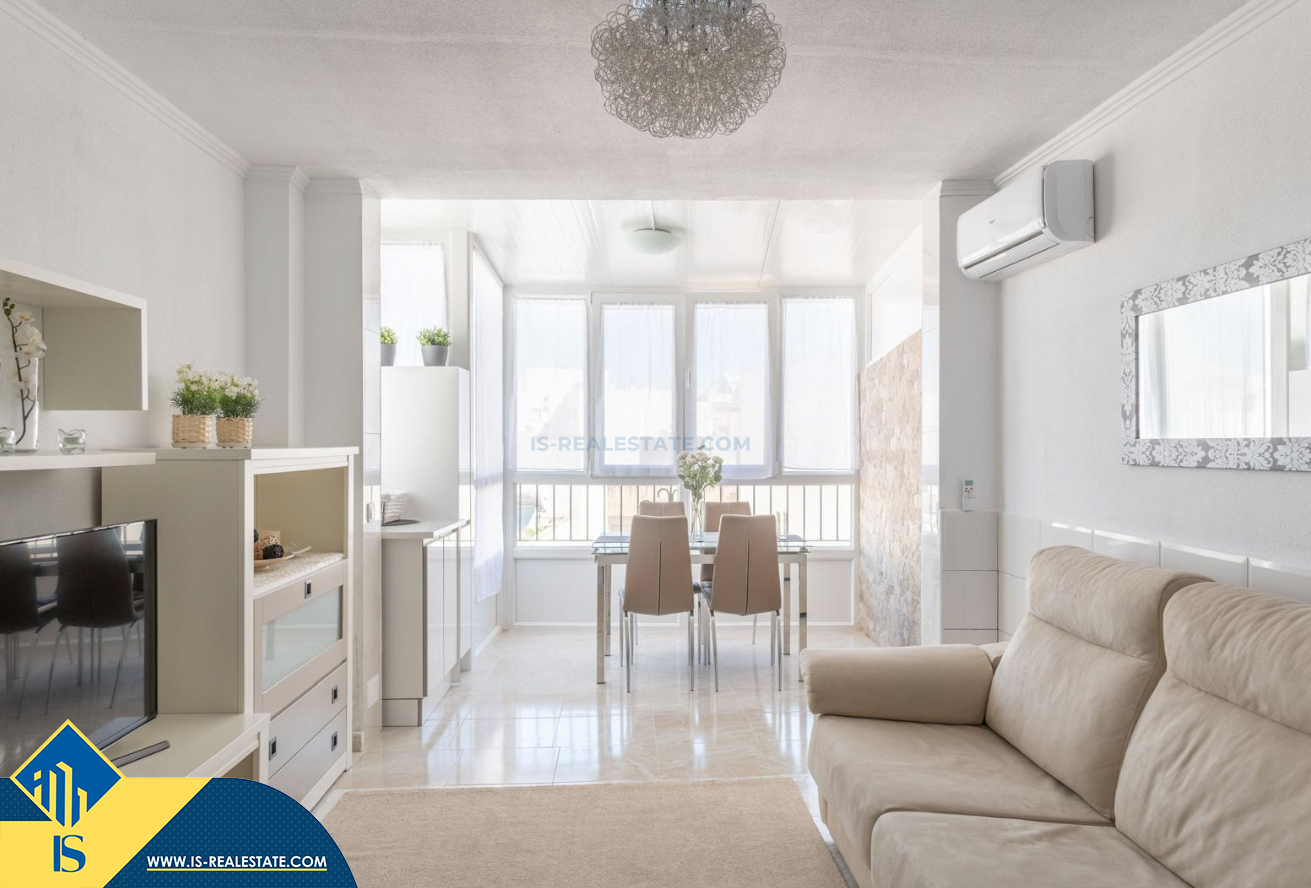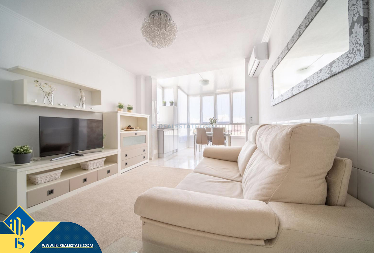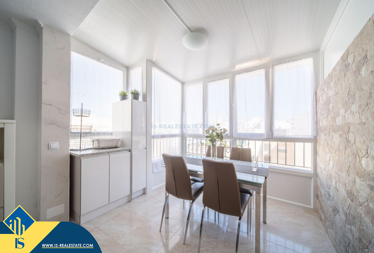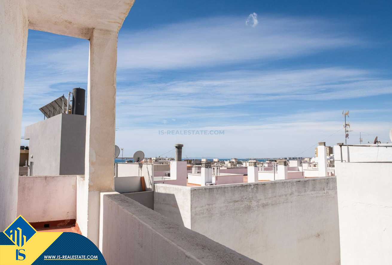2-jų kambarių renovuotas penthouse apartamentas su terasa, Ispanijoje, Alicante provincijoje, Torrevieja mieste, bendras plotas 66 m², 400 metrų iki jūros, 45 kilometrai iki Alicante oro uosto. Turtui priklauso terasa, soliariumas, liftas. Netoli turto yra parduotuvės, restoranai, autobusų stotelės, degalinės, žalios zonos, kavinės, vaistinės
