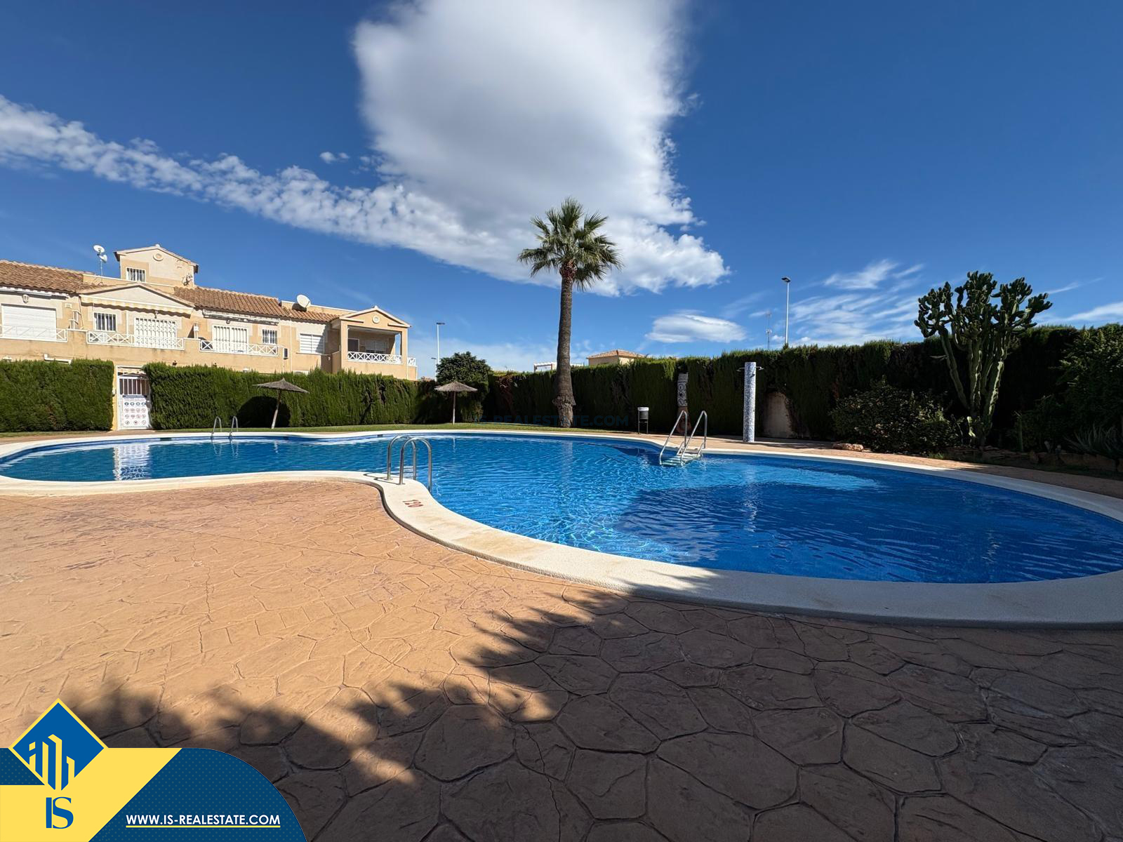 3-jų kambarių namas, Ispanijoje, Alicante provincijoje, Torrevieja mieste, Playa del Cura rajone, bendras plotas 53 m², 1.5 kilometrai iki jūros, 35 kilometrai iki Alicante miesto oro uosto. Turtui priklauso terasa, bendras baseinas. Netoli turto yra parduotuvės, restoranai, autobusų stotelės, vaikų zonos, degalinės, žalios zonos, kavinės