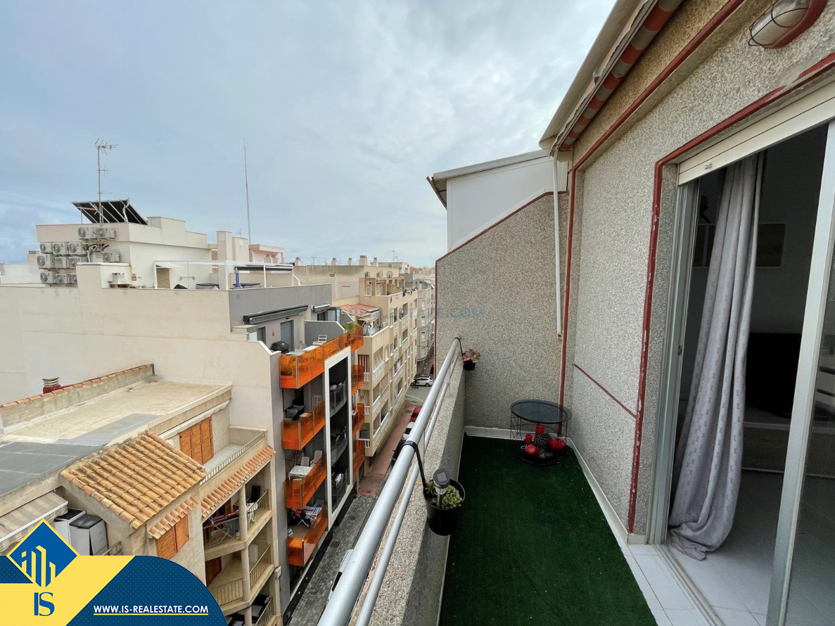 3-jų kambarių renovuotas apartamentas su terasa, Ispanijoje, Alicante provincijoje, Torrevieja mieste, bendras plotas 72 m², 500 metrų iki jūros, 45 kilometrai iki Alicante oro uosto. Turtui priklauso terasa, liftas. Netoli turto yra parduotuvės, restoranai, vaistinės, autobusų stotelės, degalinės, žalios zonos, kavinės