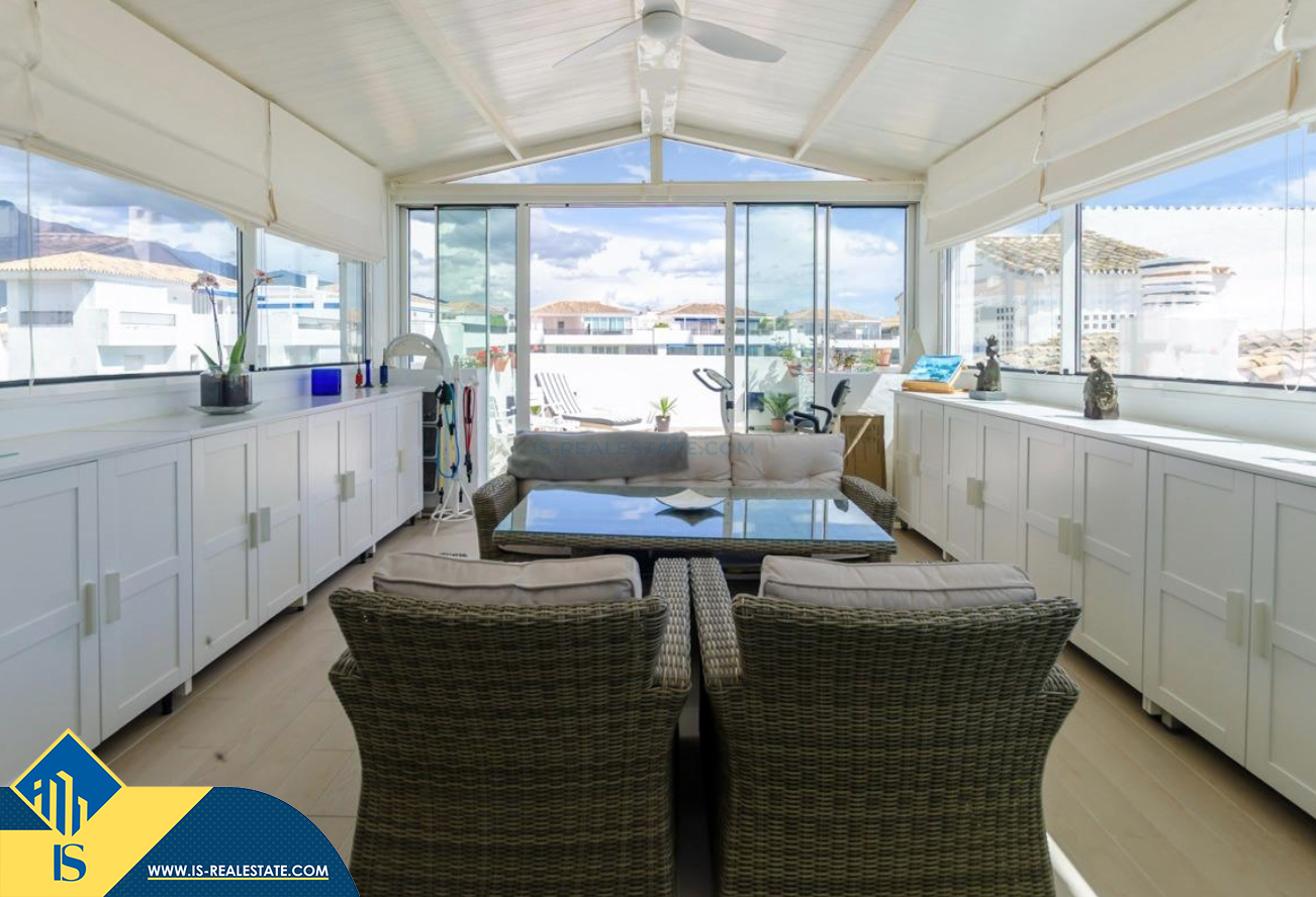 4-ių kambarių penthouse apartamentas su bendru baseinu, Ispanijoje, Malaga provincijoje, Marbella mieste, Puerto Banús rajone, bendras plotas 258 m², 500 metrų iki jūros, 57 kilometrai iki Malaga oro uosto. Turtui priklauso bendras baseinas, terasa, liftas, vieta automobiliui, sandėliukas. Netoli turto yra parduotuvės, restoranai, autobusų stotelės, vaikų zonos, degalinės, žalios zonos, kavinės, vaistinės, ligoninė