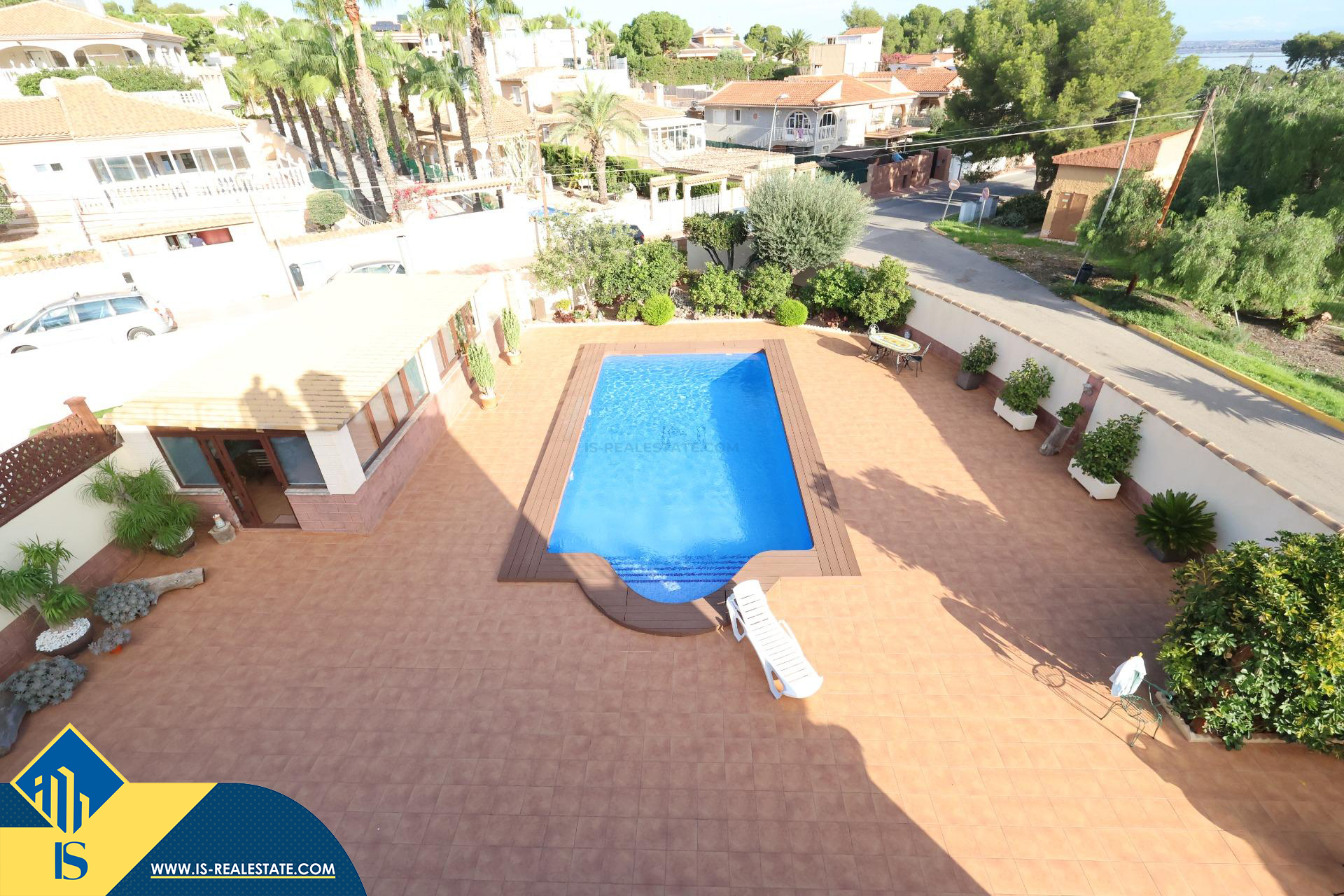 6-ių kambarių vila su privačiu baseinu, Ispanijoje, Alicante provincijoje, Torrevieja mieste, Los Balcones rajone, bendras plotas 311 m², 2.5 kilometrai iki jūros, 45 kilometrai iki Alicante miesto oro uosto. Turtui priklauso privatus baseinas, kiemas, terasa, soliariumas. Netoli turto yra parduotuvės, restoranai, autobusų stotelės, vaikų zonos, degalinės, žalios zonos, kavinės, vaistinės