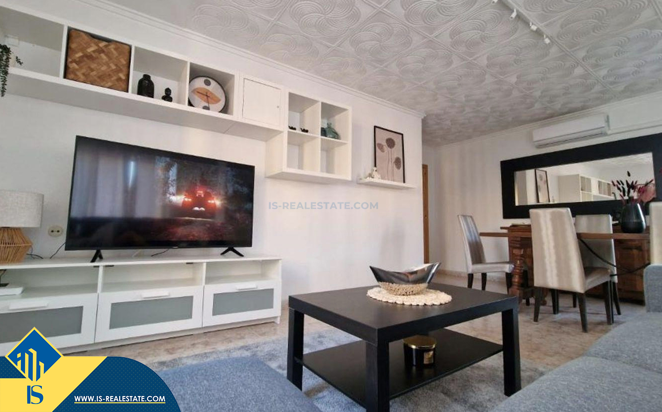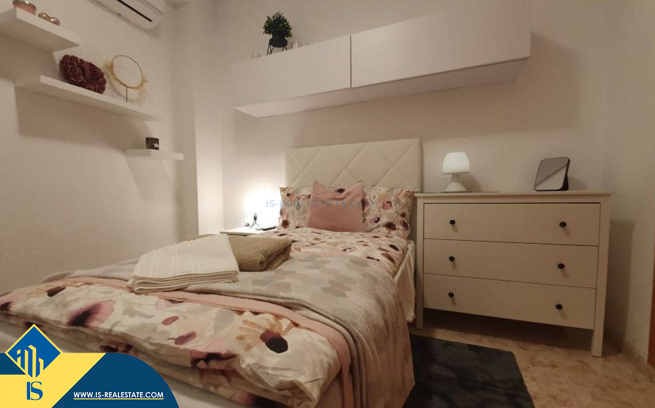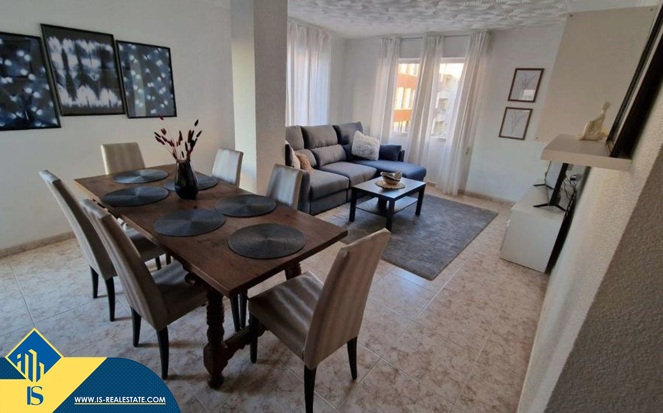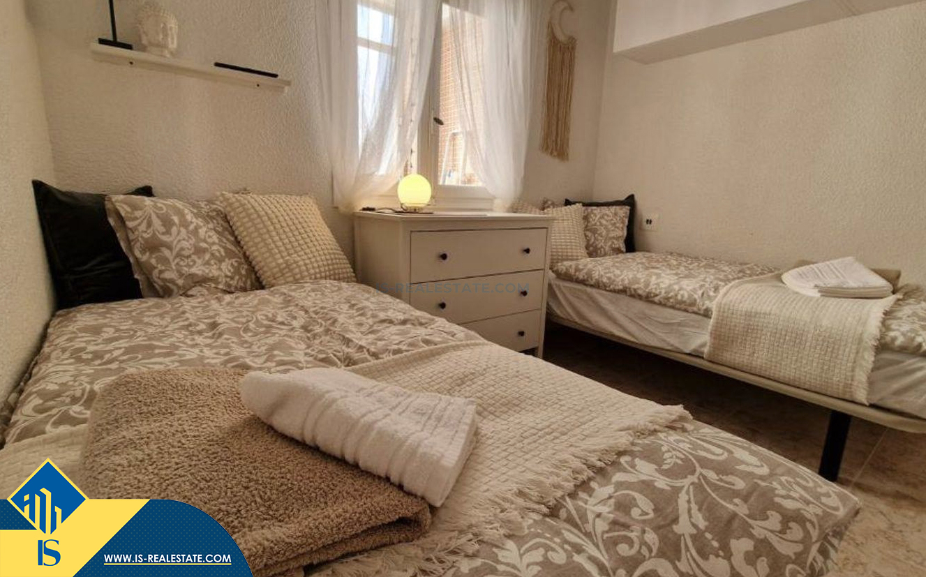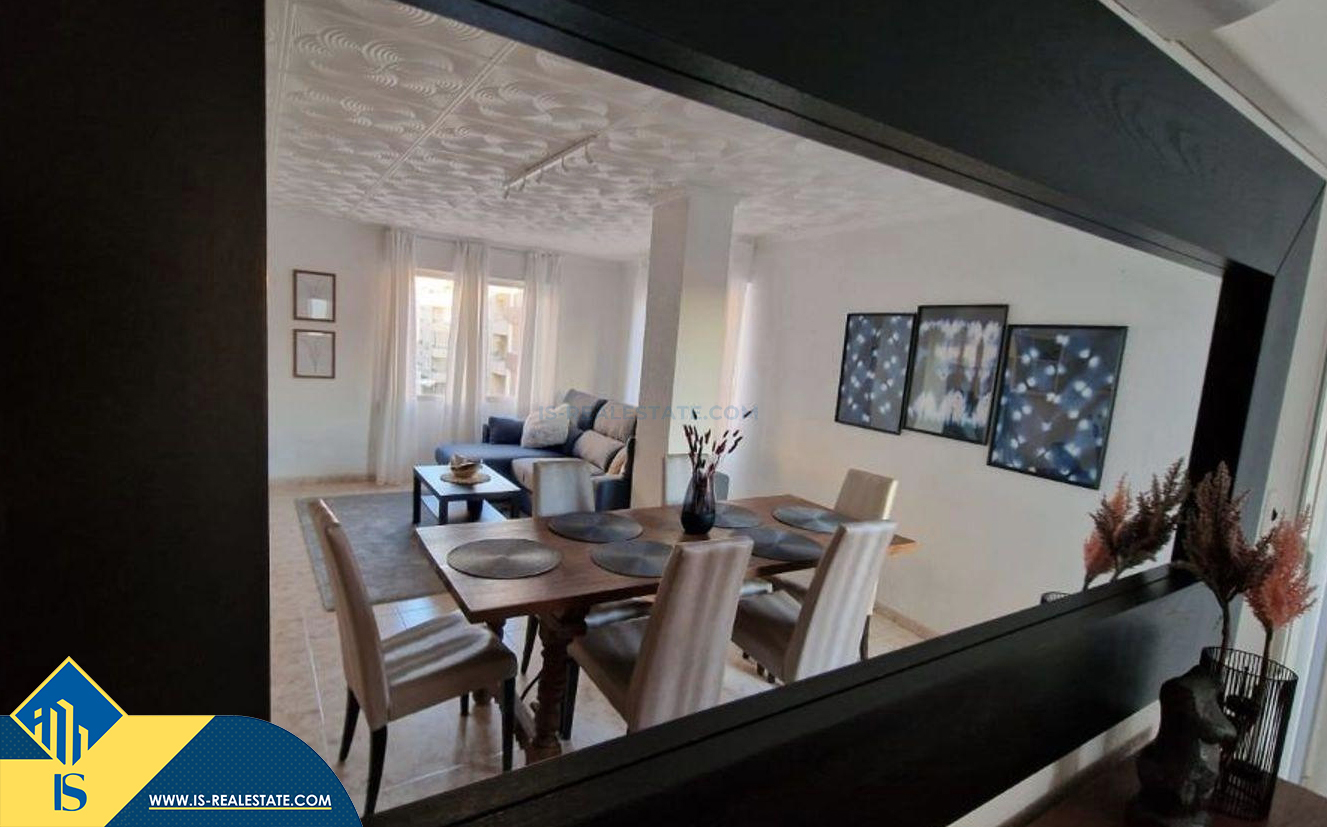 4-ių kambarių apartamentas su terasa, Ispanijoje, Alicante provincijoje, Torrevieja mieste, Playa de los Locos rajone, bendras plotas 100 m², 180 metrų iki jūros, 45 kilometrai iki Alicante oro uosto. Turtui priklauso terasa, sandėliukas. Netoli turto yra parduotuvės, restoranai, autobusų stotelės, degalinės, žalios zonos, kavinės, vaistinės