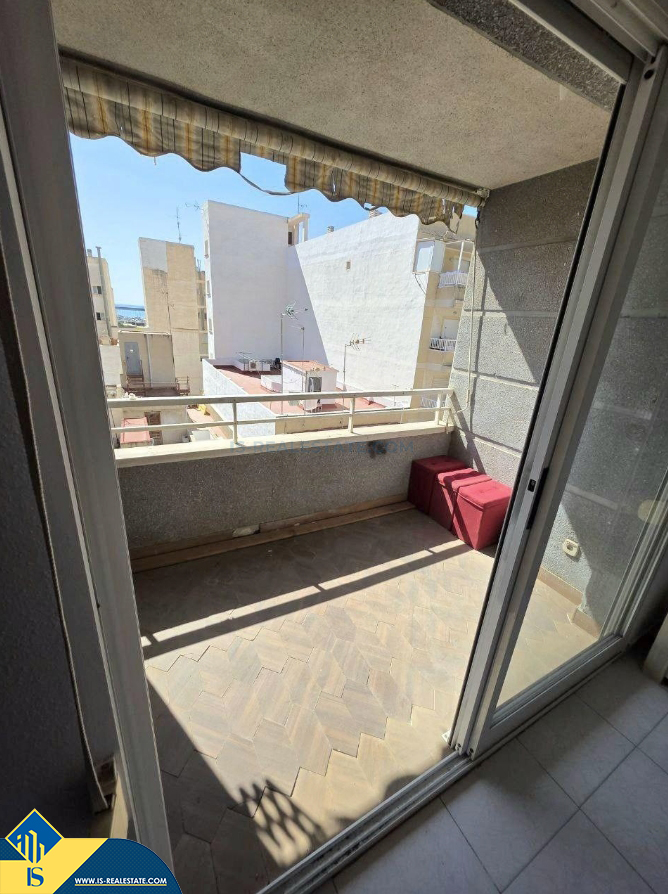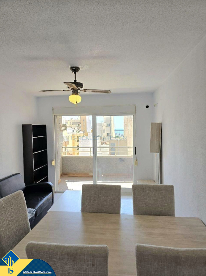 2-jų kambarių apartamentas su terasa, Ispanijoje, Alicante provincijoje, Torrevieja mieste, bendras plotas 57 m², 200 metrų iki jūros, 45 kilometrai iki Alicante oro uosto. Turtui priklauso terasa, liftas. Netoli turto yra parduotuvės, restoranai, vaistinės, autobusų stotelės, degalinės, žalios zonos, kavinės