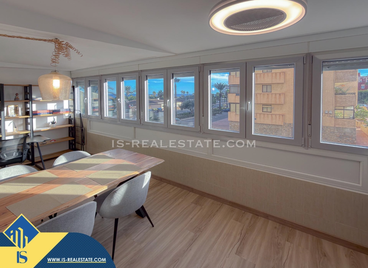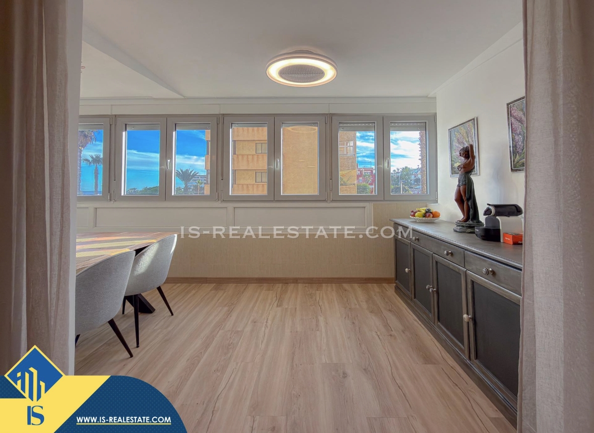 3-jų kambarių renovuotas apartamentas su terasa, Ispanijoje, Alicante provincijoje, Torrevieja mieste, bendras plotas 67 m², 200 metrų iki jūros, 45 kilometrai iki Alicante oro uosto. Turtui priklauso terasa, liftas, vieta automobiliui. Netoli turto yra parduotuvės, restoranai, vaistinės, autobusų stotelės, degalinės, žalios zonos, kavinės