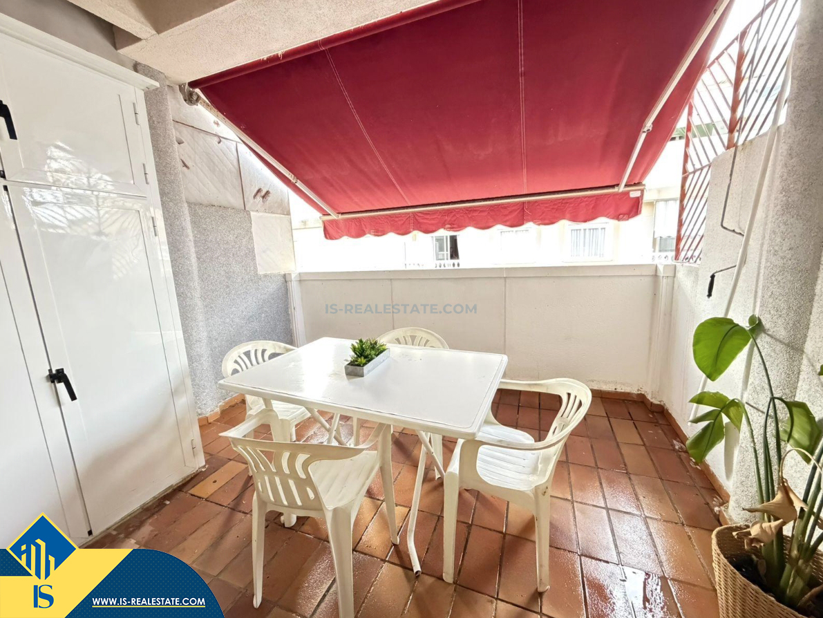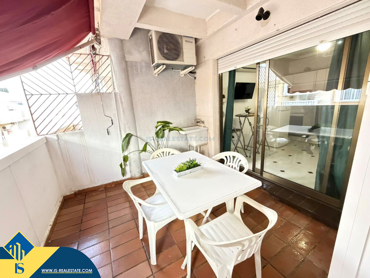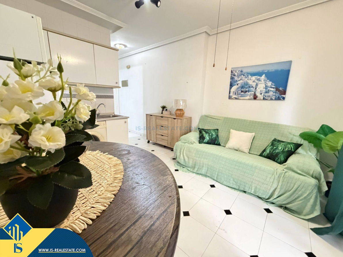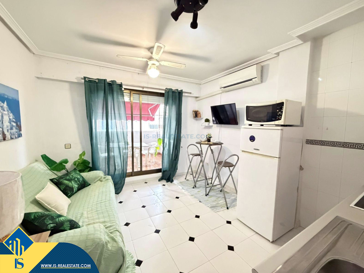 Studija su terasa, Ispanijoje, Alicante provincijoje, Torrevieja mieste, bendras plotas 32 m², 400 metrų iki jūros, 45 kilometrai iki Alicante oro uosto. Turtui priklauso terasa, liftas. Netoli turto yra parduotuvės, restoranai, vaistinės, autobusų stotelės, degalinės, žalios zonos, kavinės