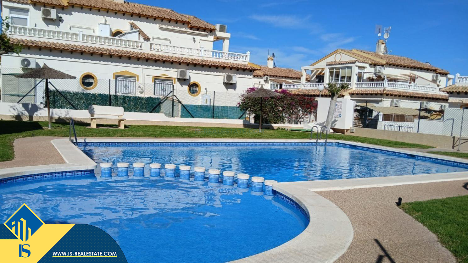 4-ių kambarių duplex namas su bendru baseinu, Ispanijoje, Alicante provincijoje, Torrevieja mieste, Los Balcones rajone, bendras plotas 104 m², 1.5 kilometrai iki jūros, 45 kilometrai iki Alicante miesto oro uosto. Turtui priklauso terasa, kiemas, bendras baseinas. Netoli turto yra parduotuvės, restoranai, autobusų stotelės, vaikų zonos, degalinės, žalios zonos, kavinės, vaistinės
