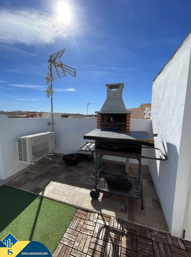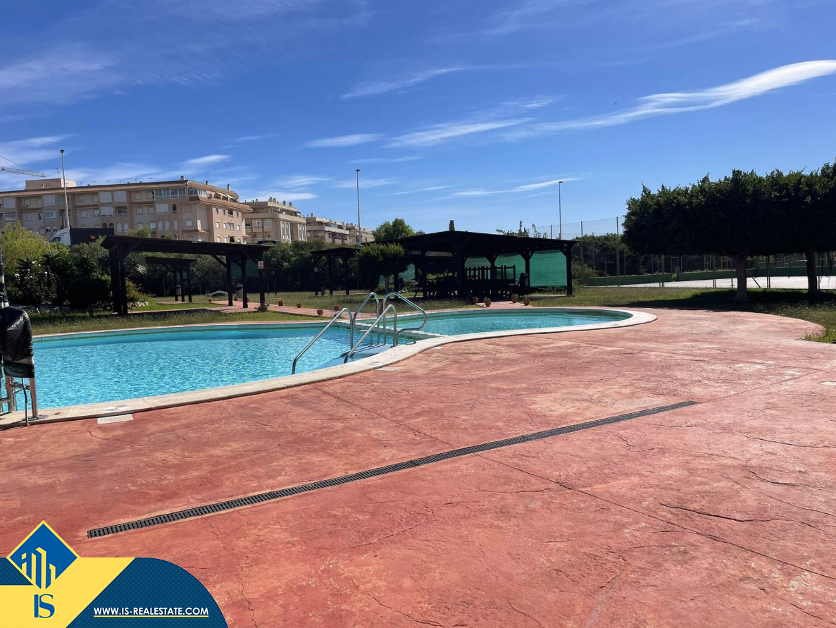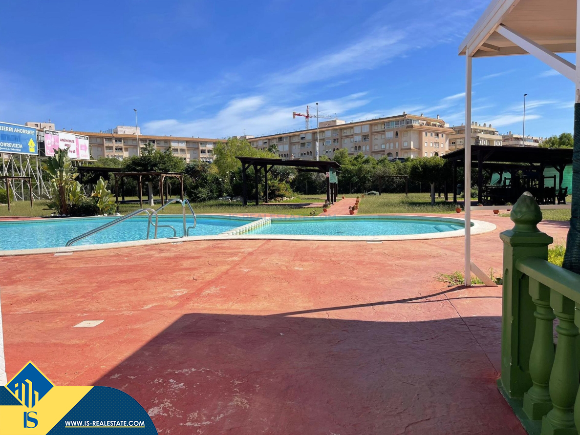 3-jų kambarių renovuotas bungalas su bendru baseinu, Ispanijoje, Alicante provincijoje, Torrevieja mieste, bendras plotas 52 m², 900 metrų iki jūros, 45 kilometrai iki Alicante oro uosto. Turtui priklauso bendras baseinas, terasa, soliariumas. Netoli turto yra parduotuvės, restoranai, autobusų stotelės, vaikų zonos, degalinės, žalios zonos, kavinės