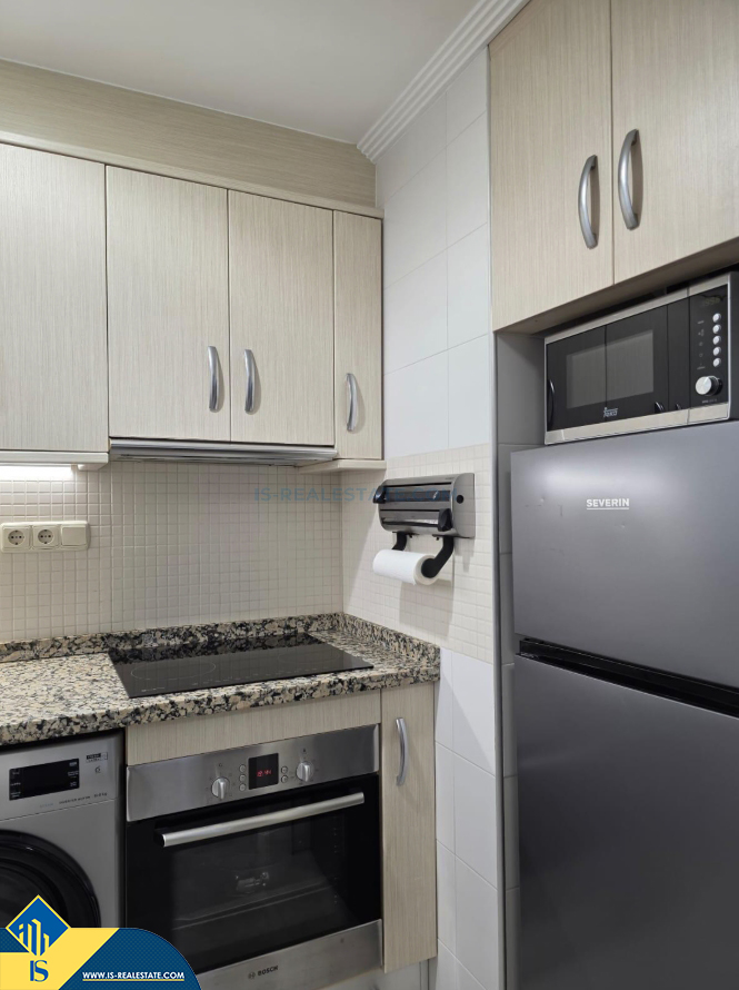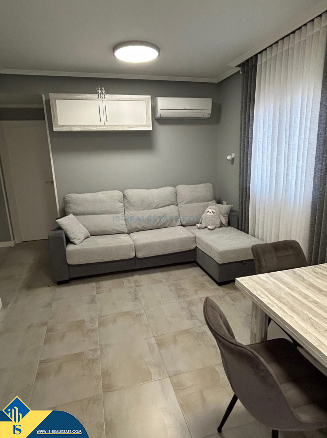 2-jų kambarių renovuotas apartamentas su terasa, Ispanijoje, Alicante provincijoje, Torrevieja mieste, bendras plotas 50 m², 1.5 kilometro iki jūros, 45 kilometrai iki Alicante oro uosto. Turtui priklauso terasa, liftas. Netoli turto yra parduotuvės, restoranai, vaistinės, autobusų stotelės, degalinės, žalios zonos, kavinės