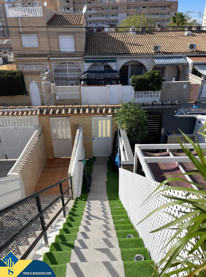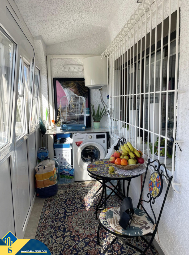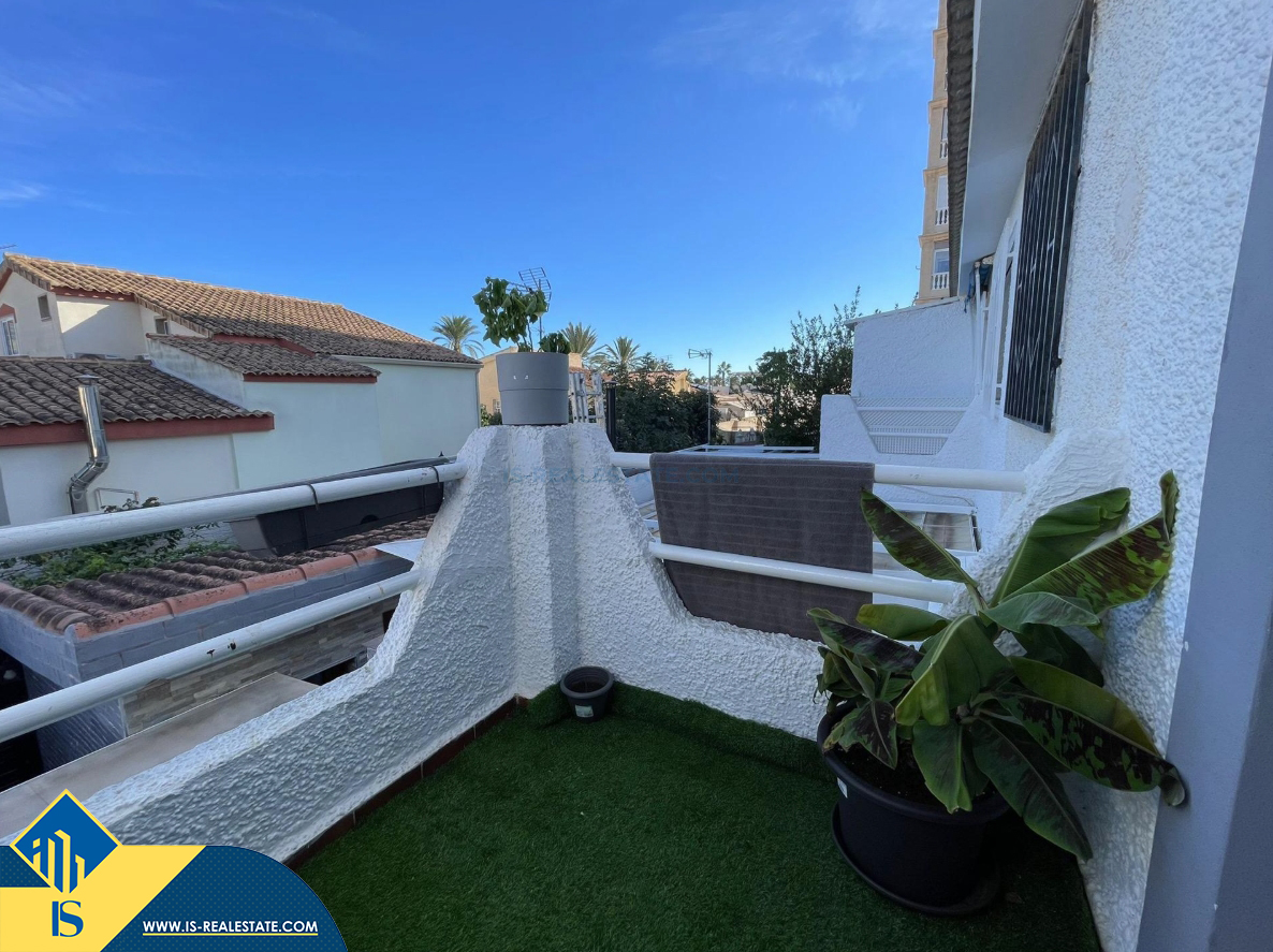 2-jų kambarių apartamentas su terasa, Ispanijoje, Alicante provincijoje, Torrevieja mieste, bendras plotas 50 m², 1.5 kilometro iki jūros, 45 kilometrai iki Alicante oro uosto. Turtui priklauso terasa. Netoli turto yra parduotuvės, restoranai, vaistinės, autobusų stotelės, degalinės, žalios zonos, kavinės