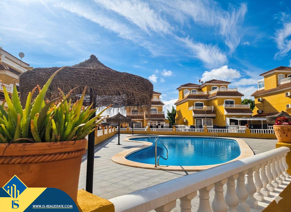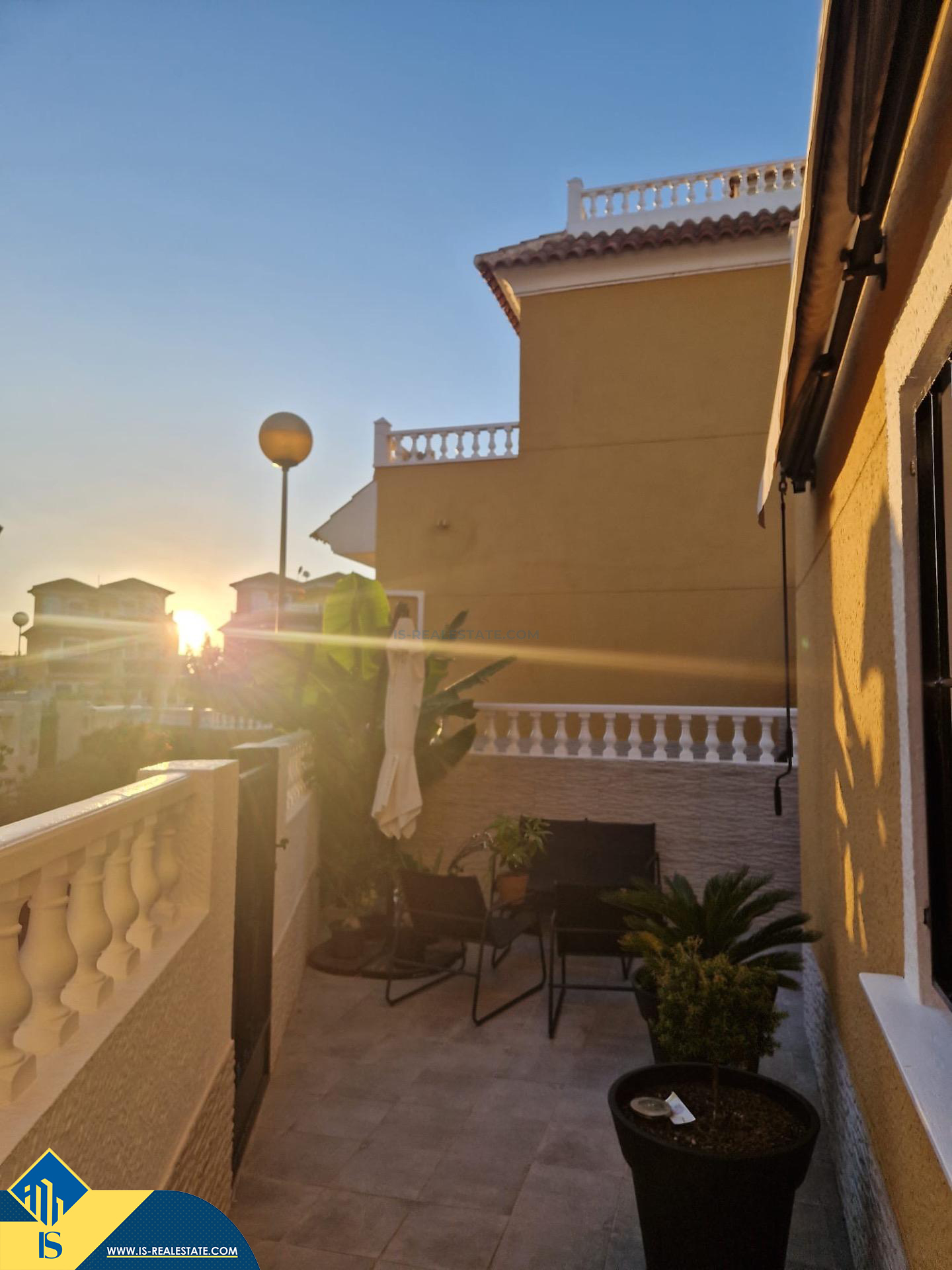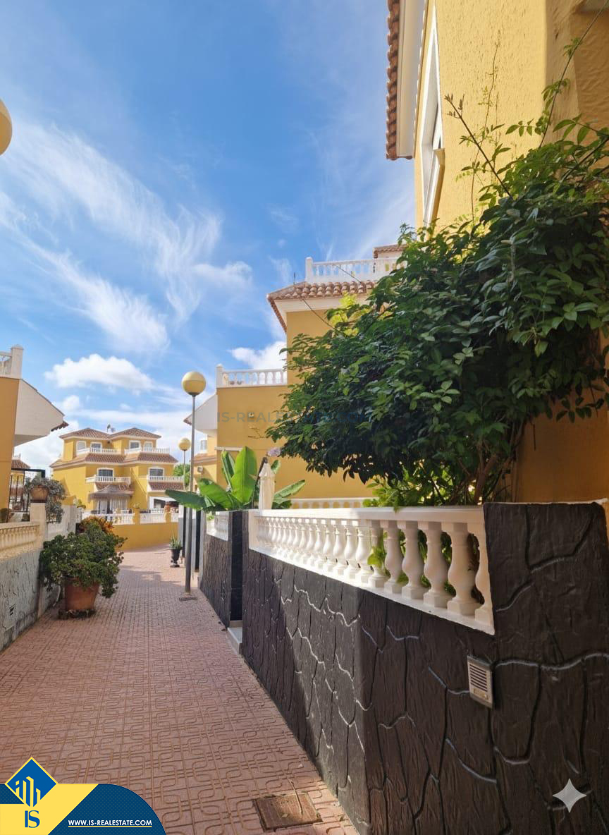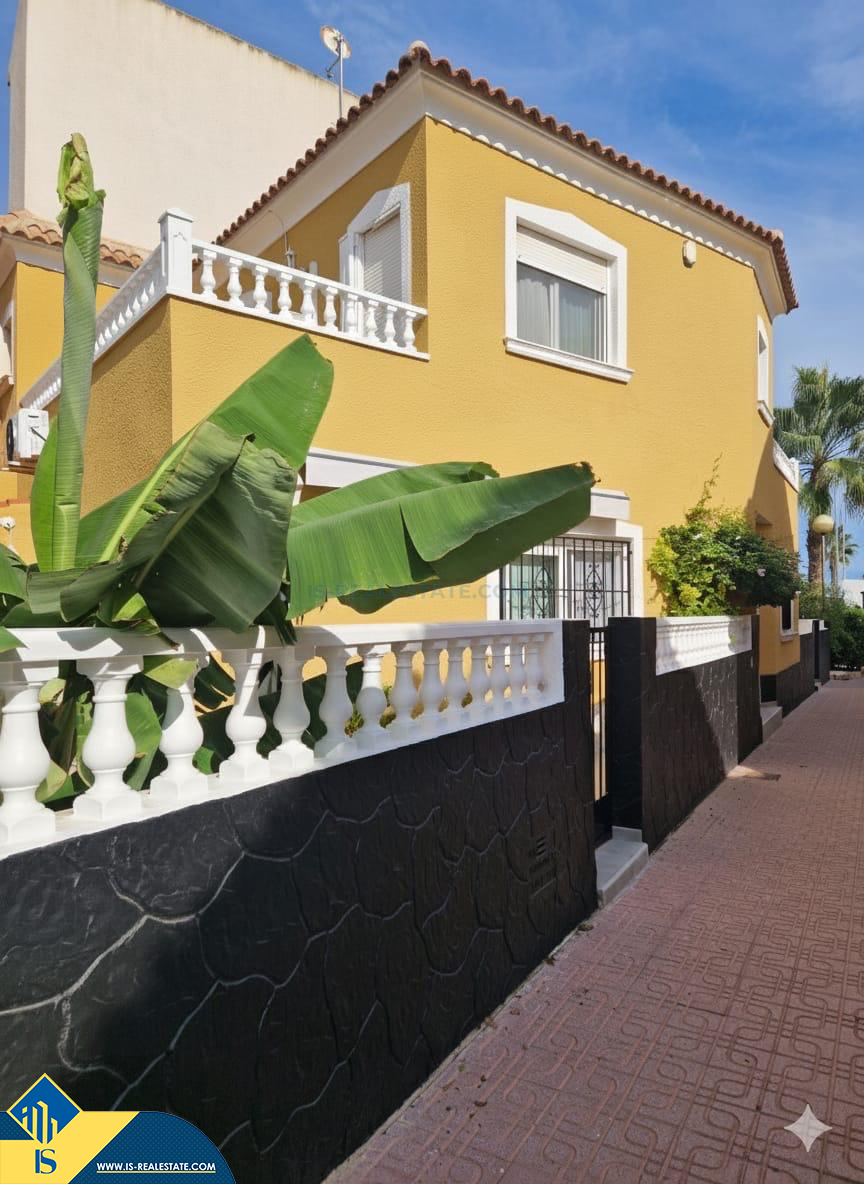 4-ių kambarių namas su bendru baseinu, Ispanijoje, Alicante provincijoje, Orihuela Costa mieste, bendras plotas 167 m², 2 kilometrai iki jūros, 57 kilometrai iki Alicante oro uosto. Turtui priklauso bendras baseinas, terasa, vieta automobiliui. Netoli turto yra parduotuvės, restoranai, autobusų stotelės, vaikų zonos, degalinės, žalios zonos, kavinės, ligoninė