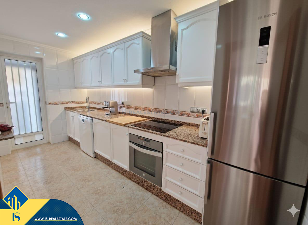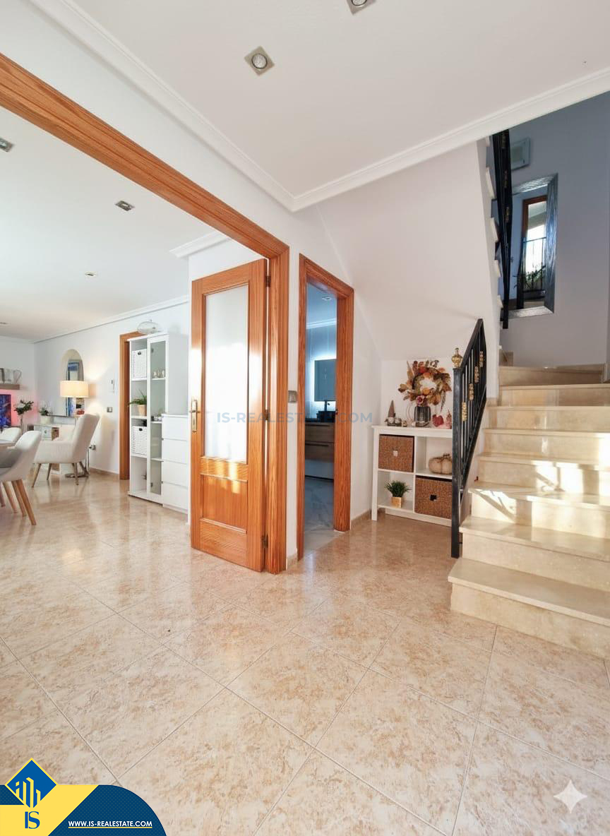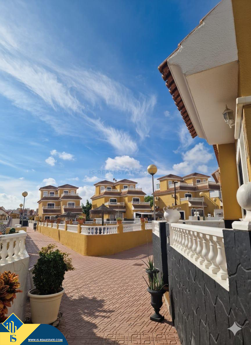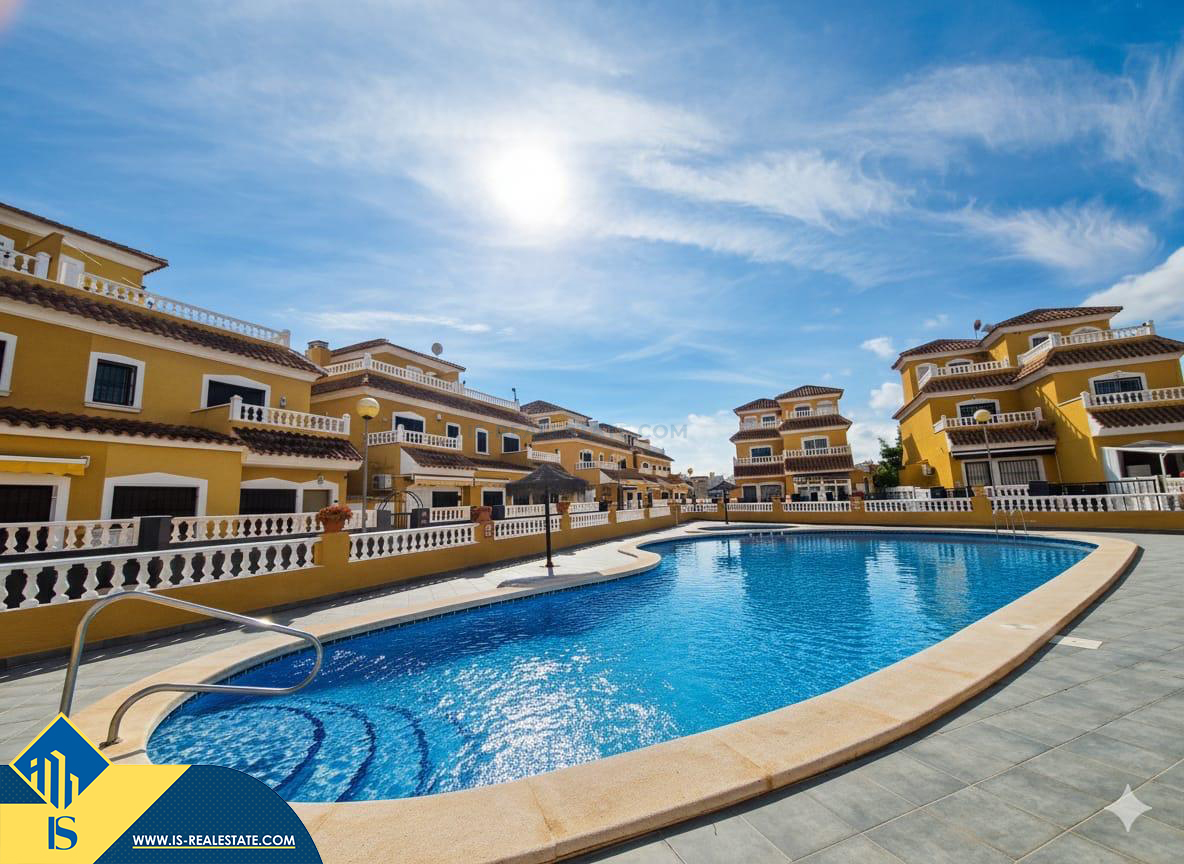 4-ių kambarių namas su bendru baseinu, Ispanijoje, Alicante provincijoje, Orihuela Costa mieste, bendras plotas 167 m², 2 kilometrai iki jūros, 57 kilometrai iki Alicante oro uosto. Turtui priklauso bendras baseinas, terasa, vieta automobiliui. Netoli turto yra parduotuvės, restoranai, autobusų stotelės, vaikų zonos, degalinės, žalios zonos, kavinės, ligoninė