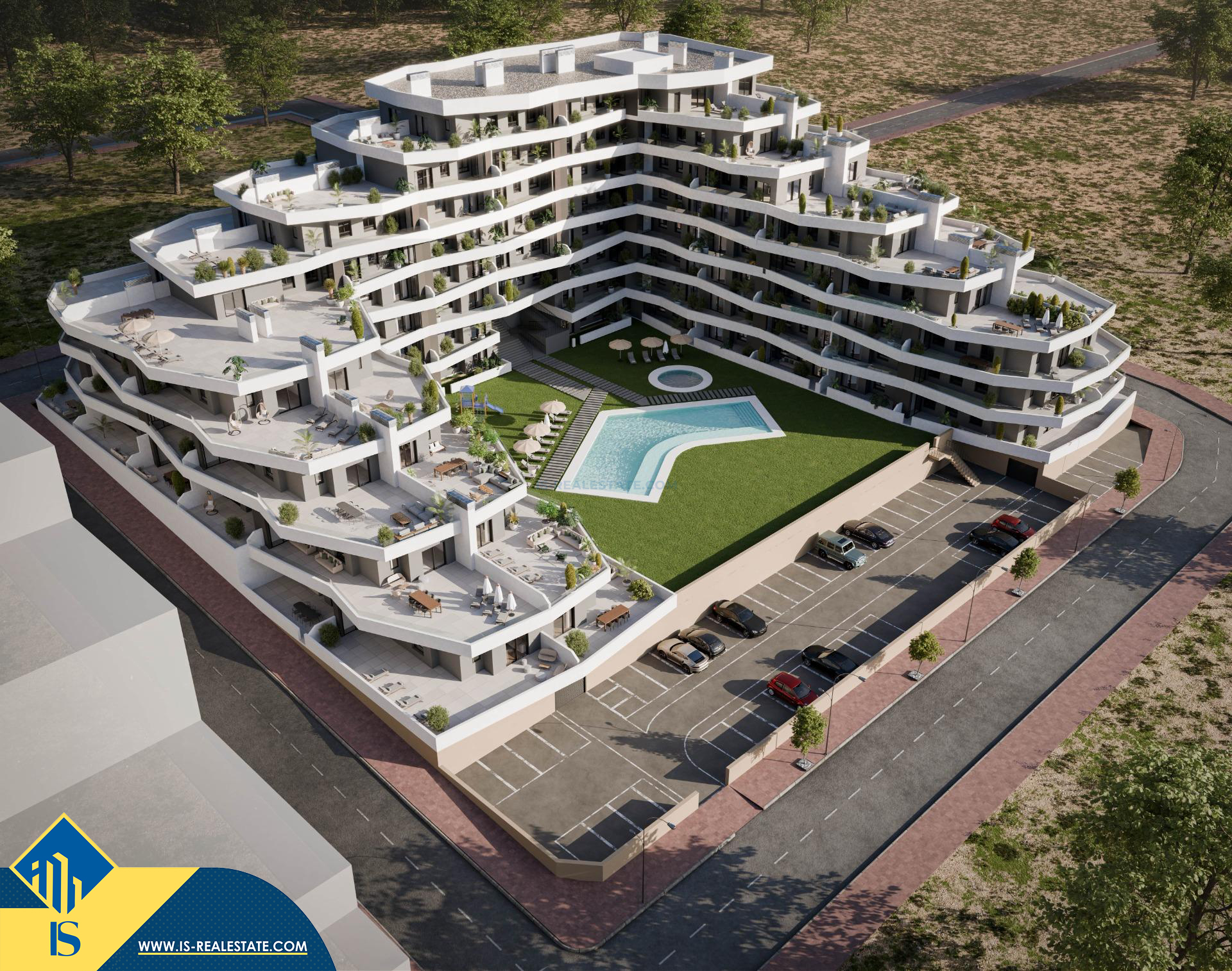 3-jų kambarių apartamentas su bendru baseinu, Ispanijoje, Alicante provincijoje, San Miguel de Salinas mieste, bendras plotas 77 m², 8 kilometrai iki jūros, 45 kilometrai iki Alicante miesto oro uosto. Turtui priklauso terasa, liftas, bendras baseinas, vieta automobiliui. Netoli turto yra parduotuvės, restoranai, vaistinės, autobusų stotelės, degalinės, žalios zonos, kavinės