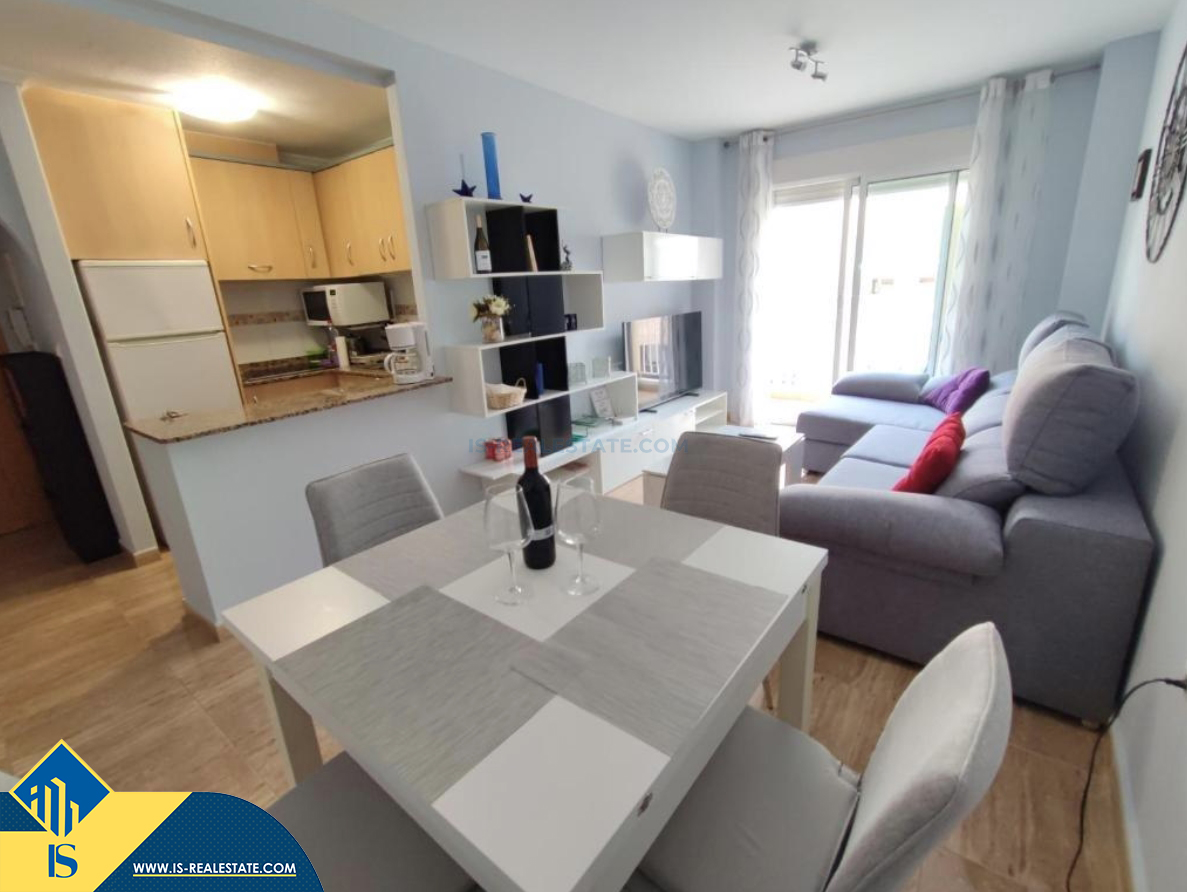 3-jų kambarių apartamentas su balkonu, Ispanijoje, Alicante provincijoje, Torrevieja mieste, bendras plotas 60 m², 300 metrų iki jūros, 45 kilometrai iki Alicante oro uosto. Turtui priklauso balkonas, liftas. Netoli turto yra parduotuvės, restoranai, vaistinės, autobusų stotelės, degalinės, žalios zonos, kavinės