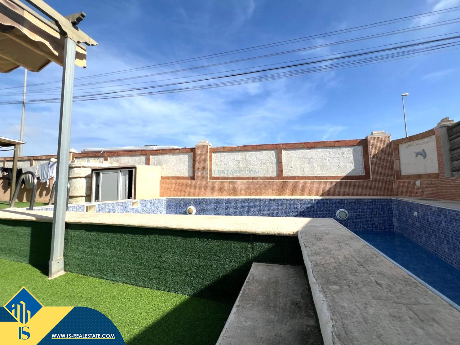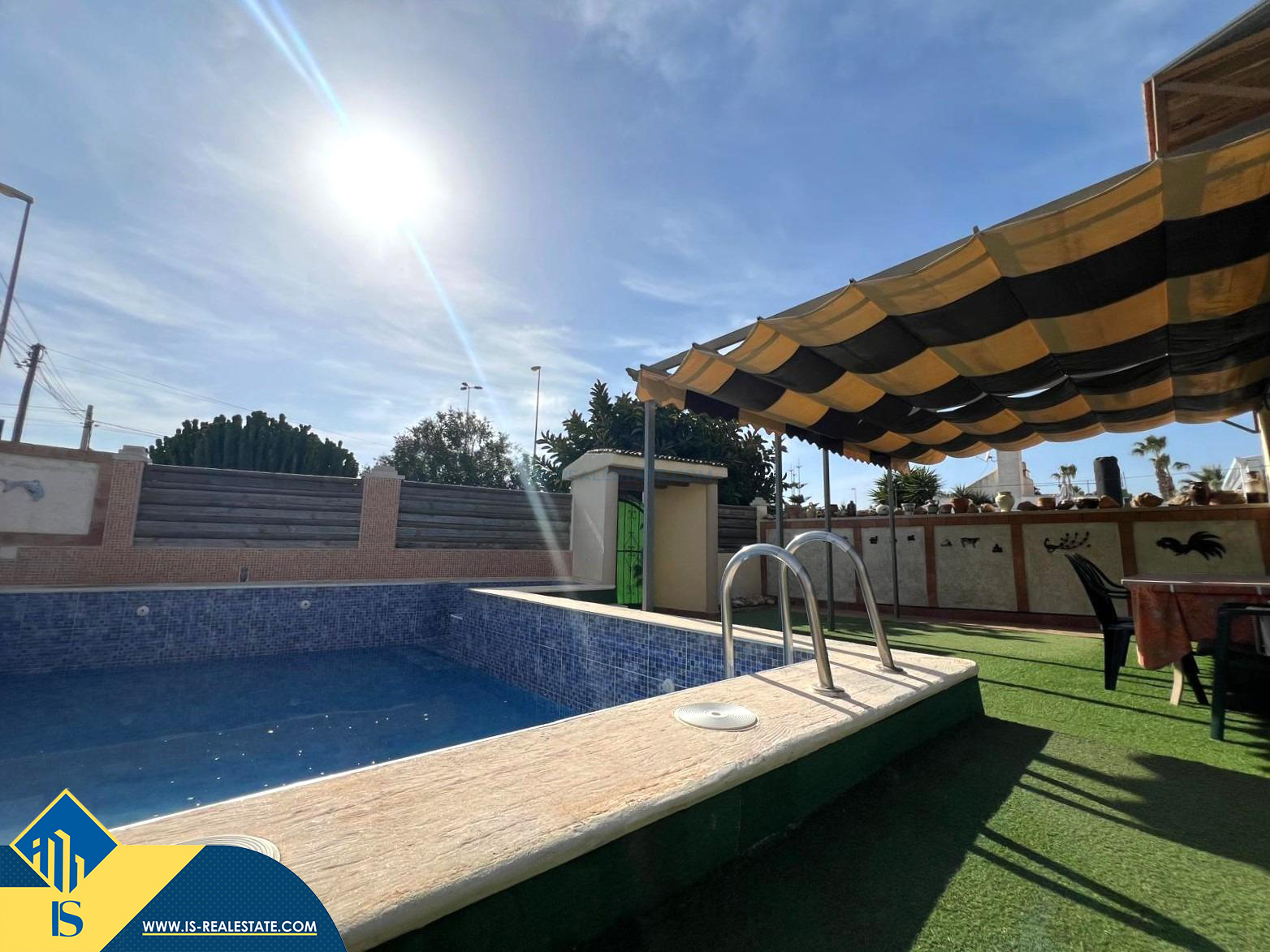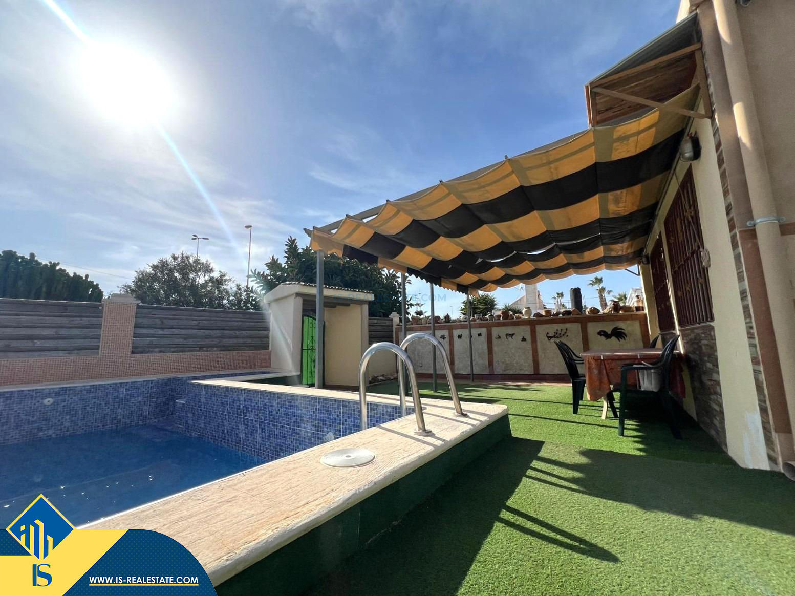 3-jų kambarių renovuotas namas, Ispanijoje, Alicante provincijoje, Orihuela Costa mieste, 1.5 kilometrai iki jūros, bendras plotas 90 m², 57 kilometrai iki Alicante miesto oro uosto. Turtui priklauso terasa, kiemas, privatus baseinas, vieta automobiliui. Netoli turto yra parduotuvės, restoranai, autobusų stotelės, vaikų zonos, degalinės, žalios zonos, kavinės, ligoninė