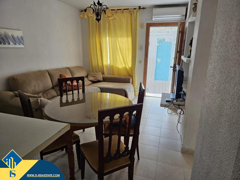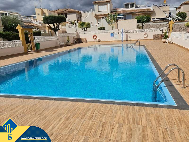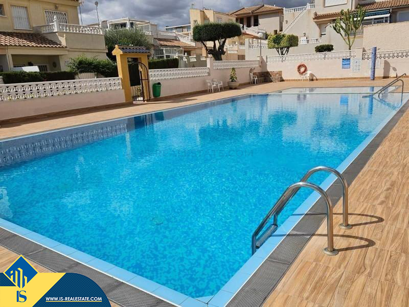 4-ių kambarių bungalas su bendru baseinu, Ispanijoje, Alicante provincijoje, Torrevieja mieste, Los Balcones rajone, bendras plotas 100 m², 1.5 kilometrai iki jūros, 45 kilometrai iki Alicante oro uosto. Turtui priklauso bendras baseinas, terasa, soliariumas. Netoli turto yra parduotuvės, restoranai, autobusų stotelės, vaikų zonos, degalinės, žalios zonos, kavinės
