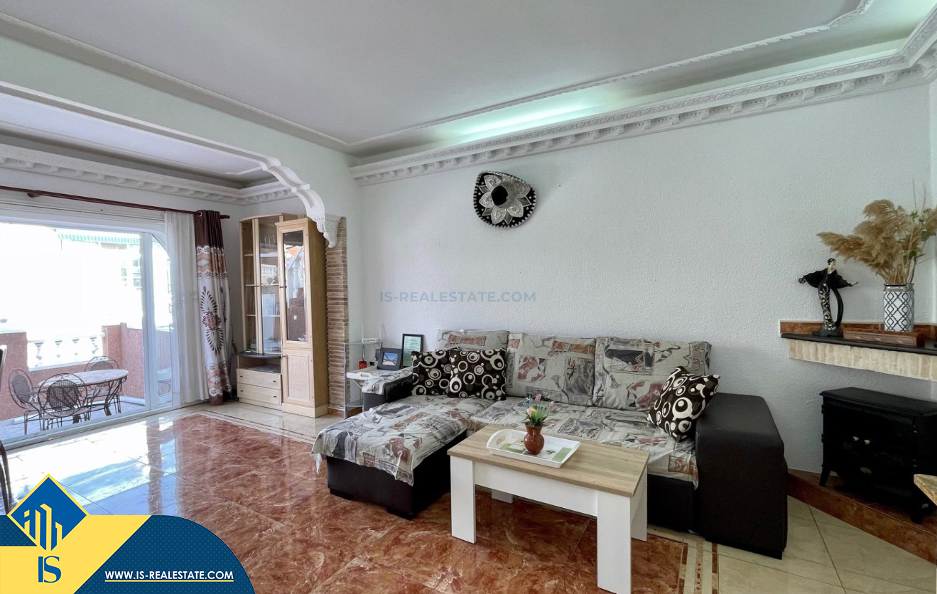 3-jų kambarių renovuotas bungalas su terasa, Ispanijoje, Alicante provincijoje, Torrevieja mieste, El Chaparral rajone, bendras plotas 60 m², 6 kilometrai iki jūros, 45 kilometrai iki Alicante oro uosto. Turtui priklauso terasa, vieta automobiliui. Netoli turto yra parduotuvės, restoranai, autobusų stotelės, vaikų zonos, degalinės, žalios zonos, kavinės, vaistinės