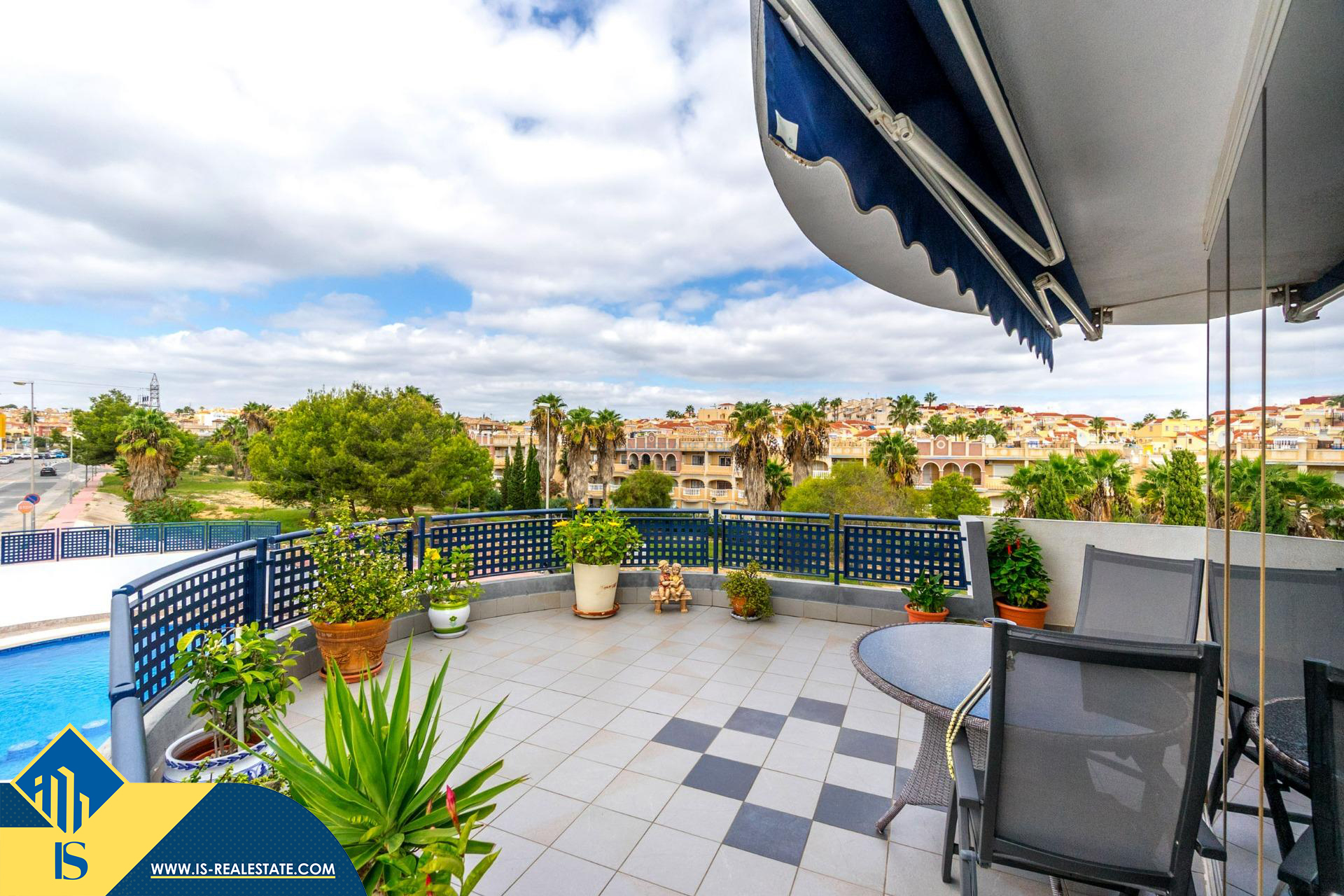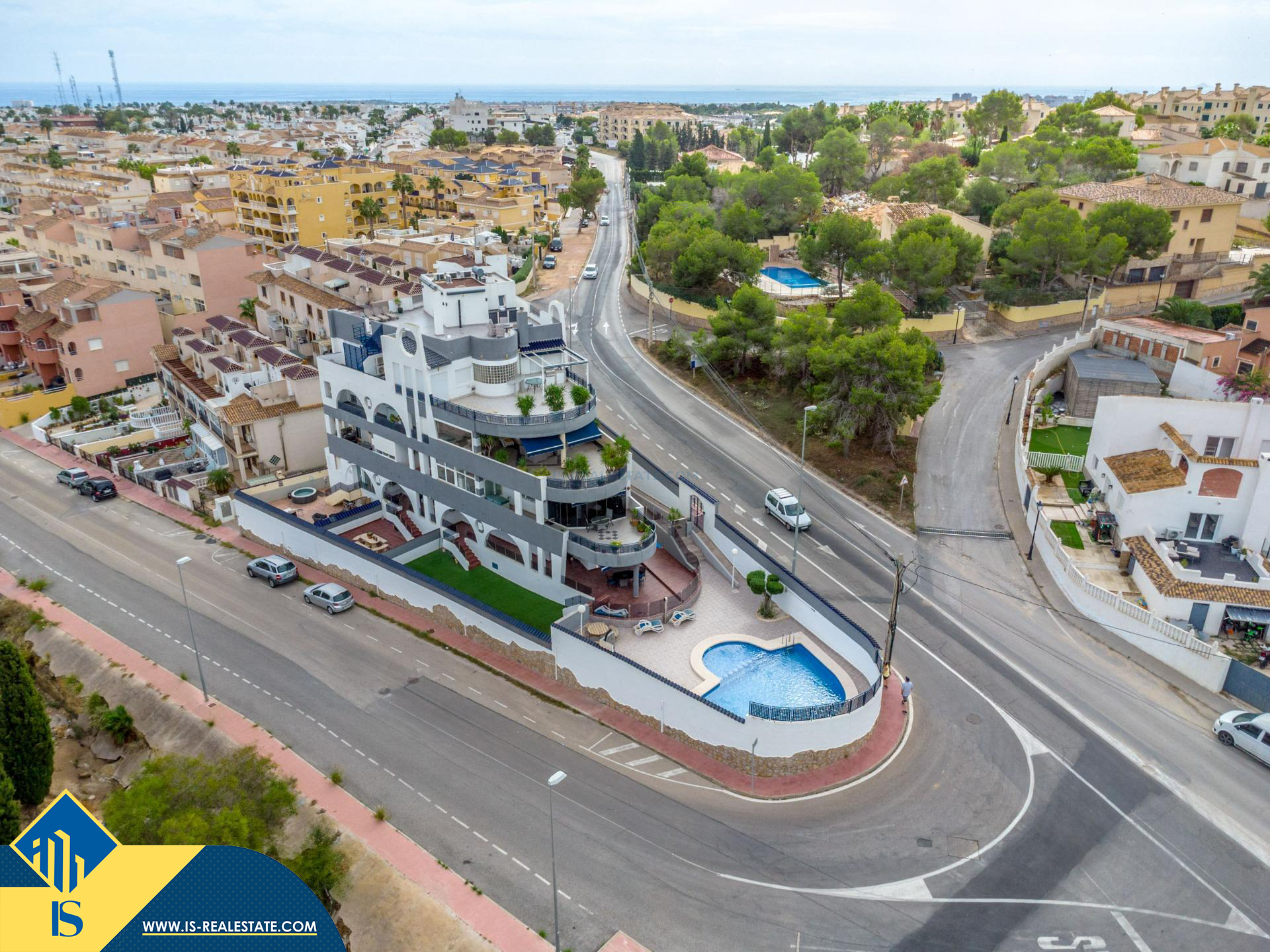 3-jų kambarių apartamentas su bendru baseinu, Ispanijoje, Alicante provincijoje, Orihuela Costa mieste, bendras plotas 85 m², 4 kilometrai iki jūros, 57 kilometrai iki Alicante oro uosto. Turtui priklauso bendras baseinas, terasa, liftas, soliariumas. Netoli turto yra parduotuvės, restoranai, autobusų stotelės, vaikų zonos, degalinės, žalios zonos, kavinės, ligoninė