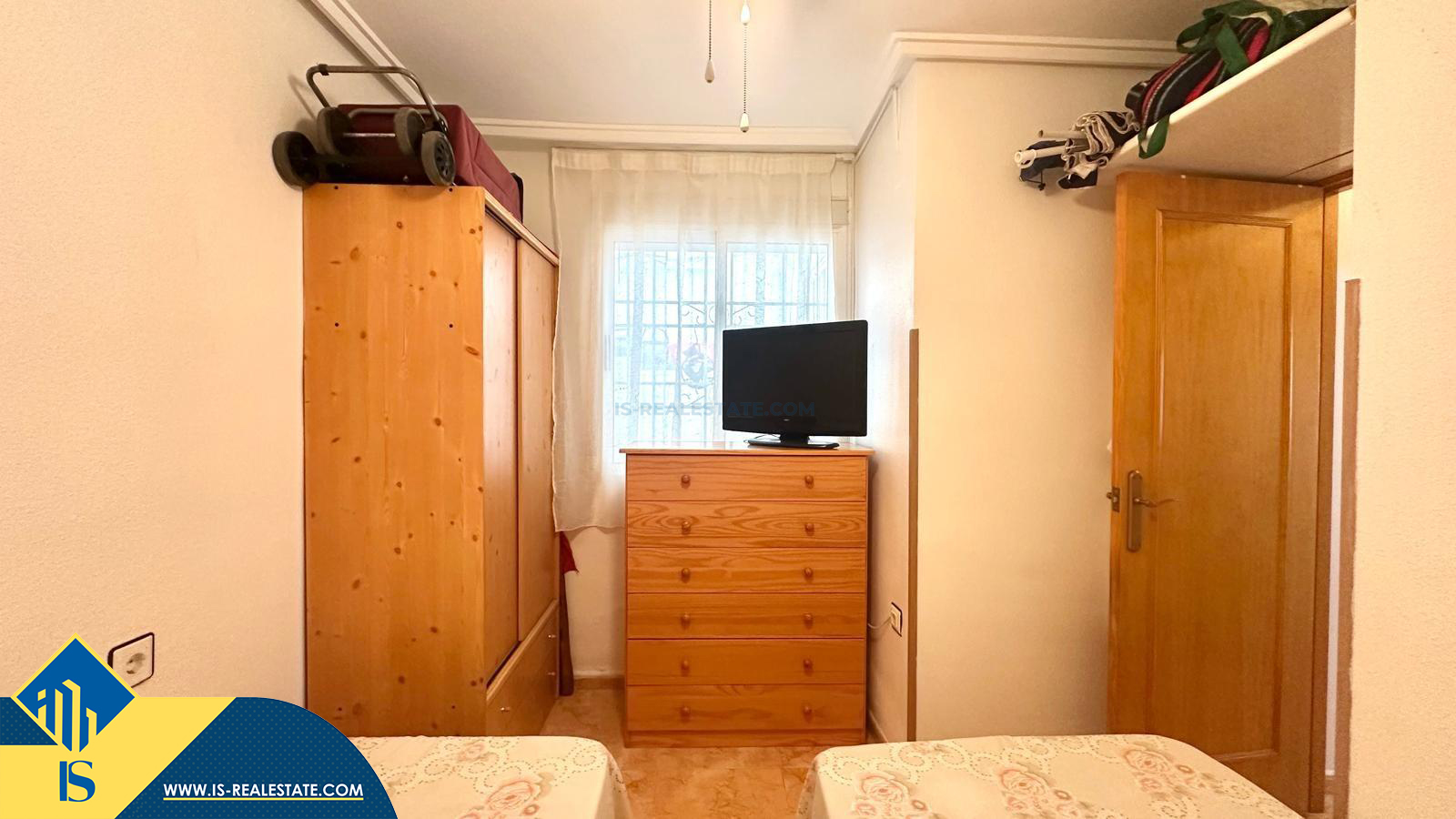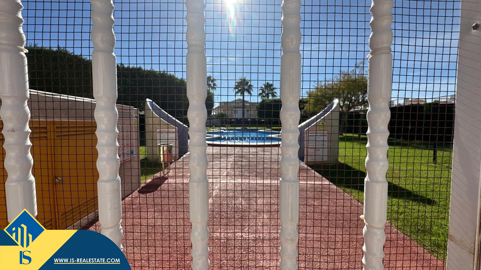 3-jų kambarių bungalas su bendru baseinu, Ispanijoje, Alicante provincijoje, Torrevieja mieste, Torreta rajone, bendras plotas 57 m², 4 kilometrai iki jūros, 45 kilometrai iki Alicante oro uosto. Turtui priklauso bendras baseinas, terasa. Netoli turto yra parduotuvės, restoranai, autobusų stotelės, vaikų zonos, degalinės, žalios zonos, kavinės, prekybos centras
