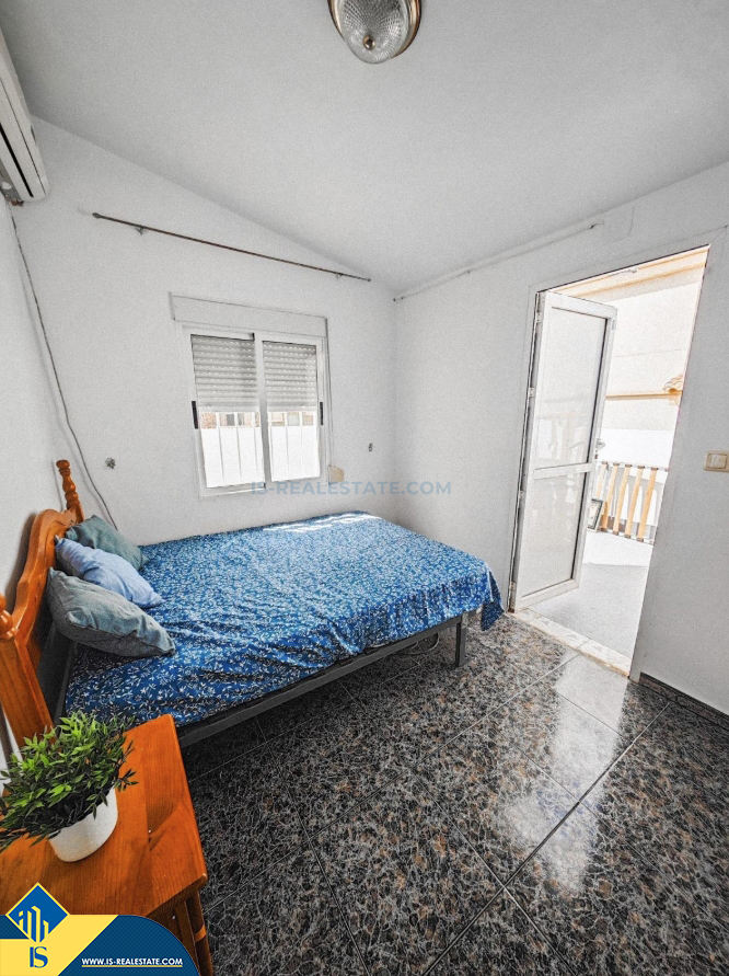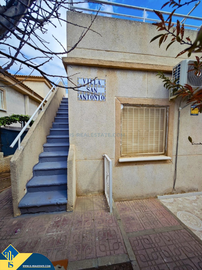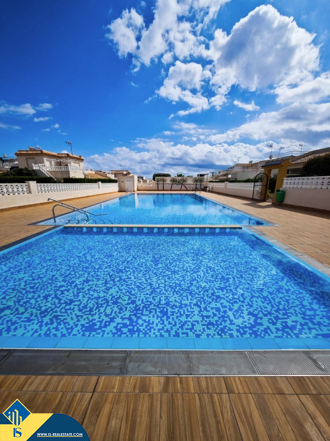 3-jų kambarių bungalas su bendru baseinu, Ispanijoje, Alicante provincijoje, Torrevieja mieste, Los Balcones rajone, bendras plotas 49 m², 2 kilometrai iki jūros, 45 kilometrai iki Alicante oro uosto. Turtui priklauso bendras baseinas, terasa. Netoli turto yra parduotuvės, restoranai, autobusų stotelės, vaikų zonos, degalinės, žalios zonos, kavinės