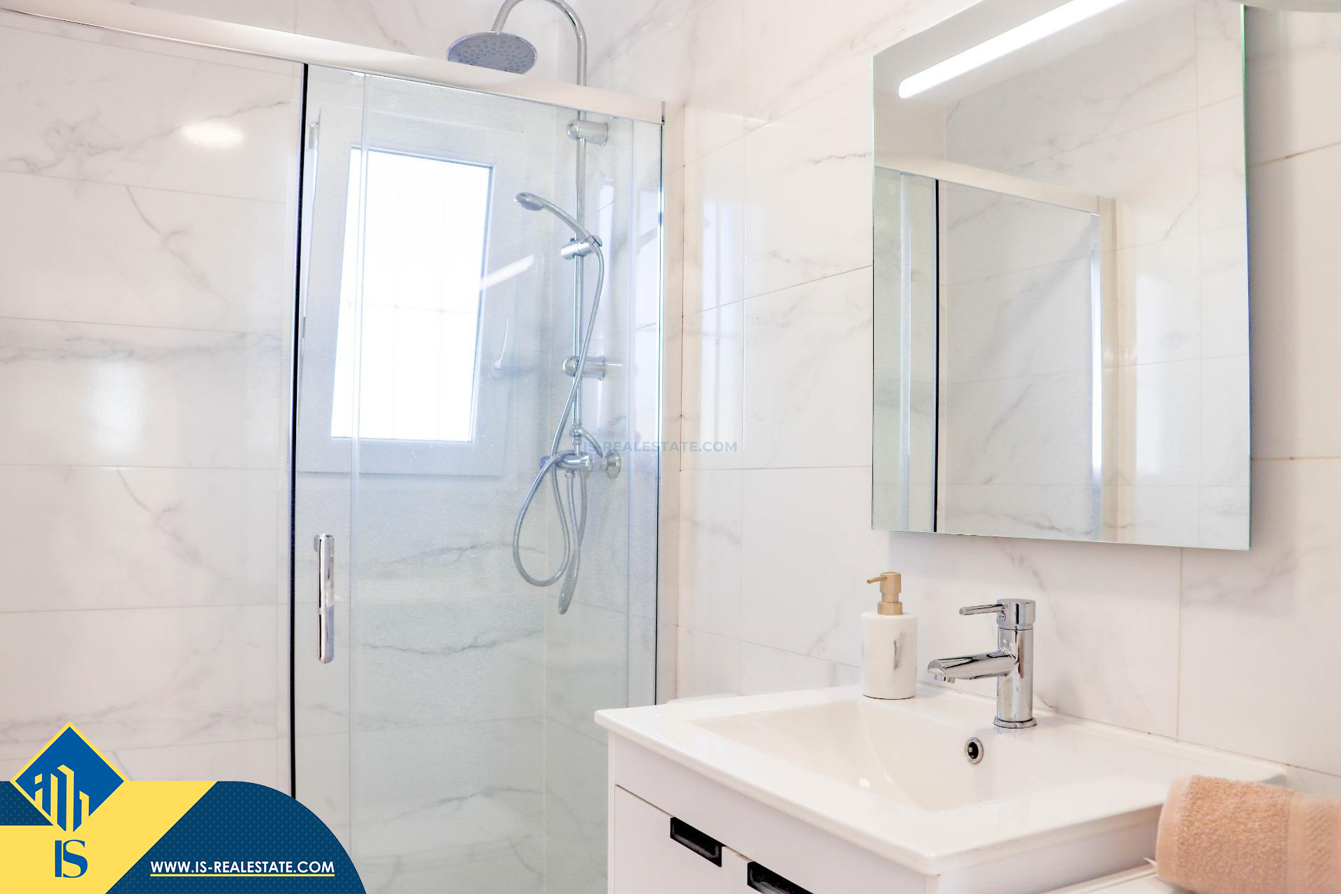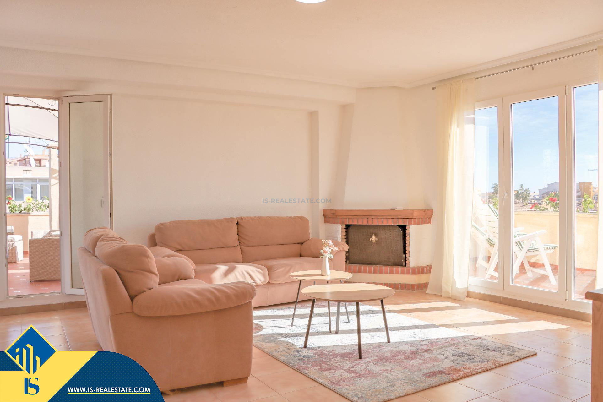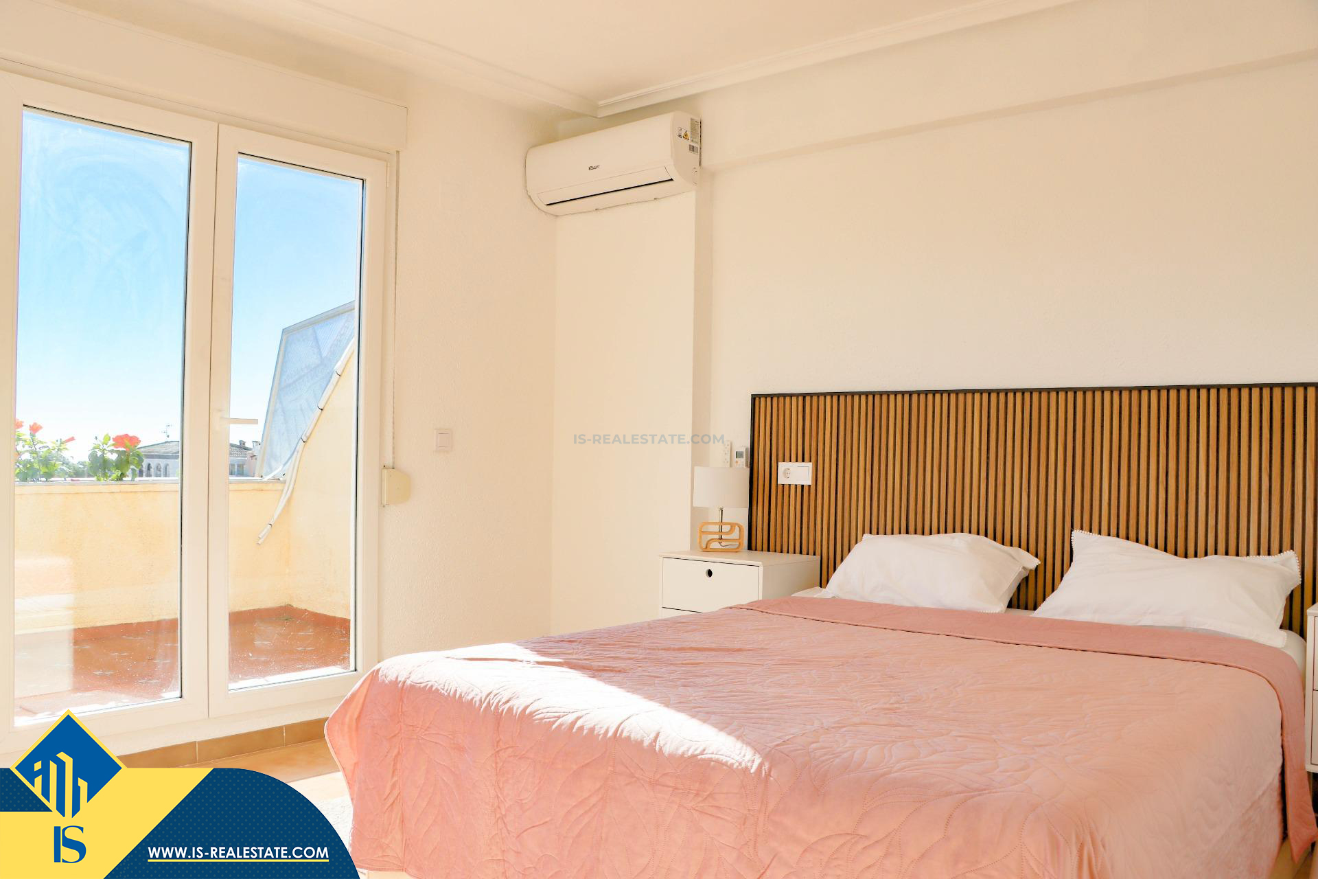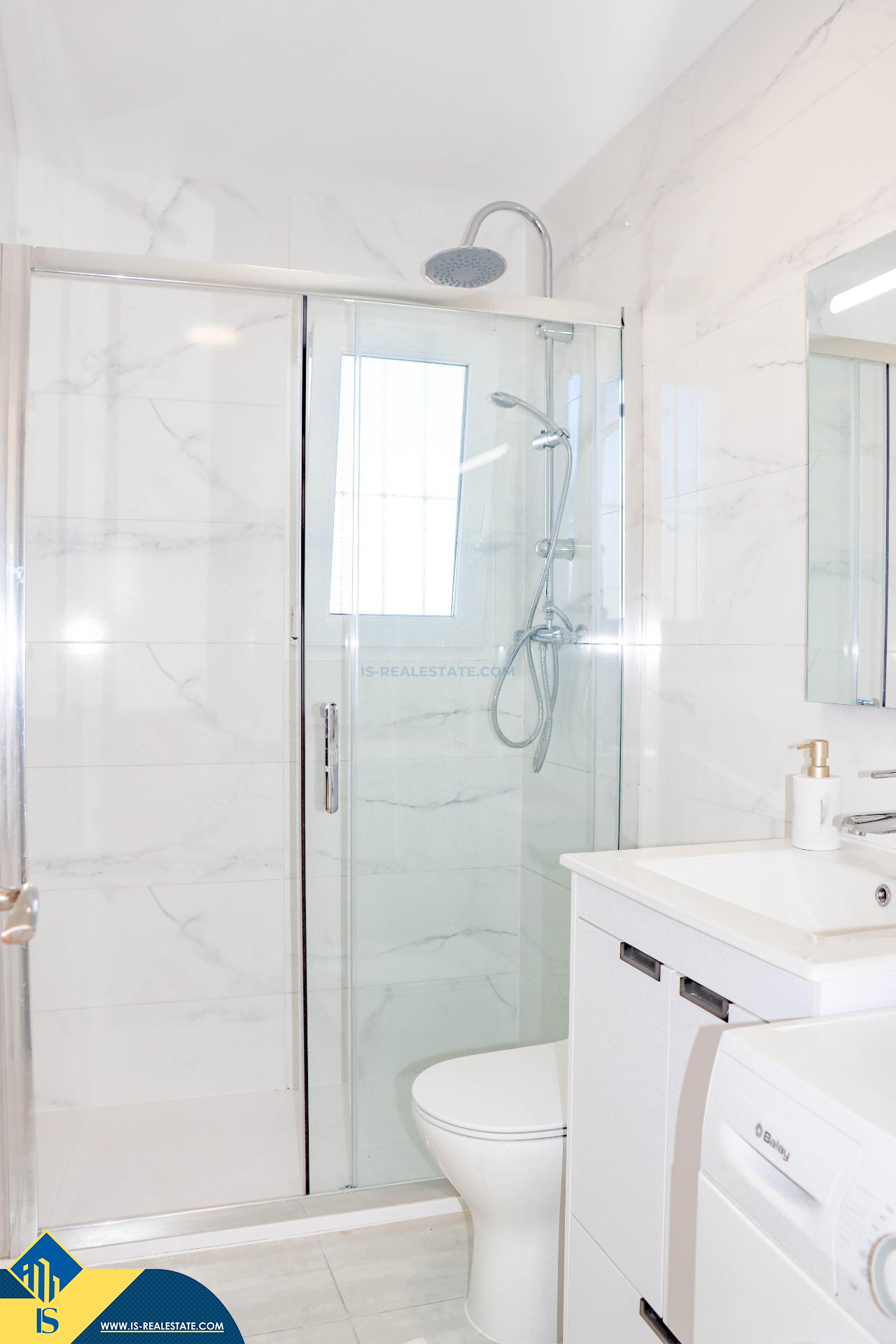 3-jų kambarių renovuotas apartamentas su terasa, Ispanijoje, Alicante provincijoje, Torrevieja mieste, Los Balcones rajone, bendras plotas 97 m², 700 metrų iki jūros, 45 kilometrai iki Alicante miesto oro uosto. Netoli turto yra parduotuvės, restoranai, vaistinės, autobusų stotelės, degalinės, žalios zonos, kavinės