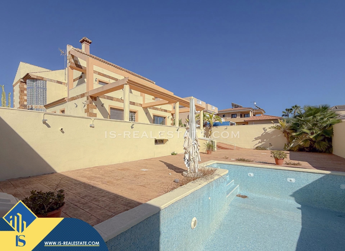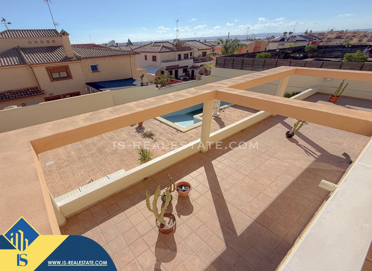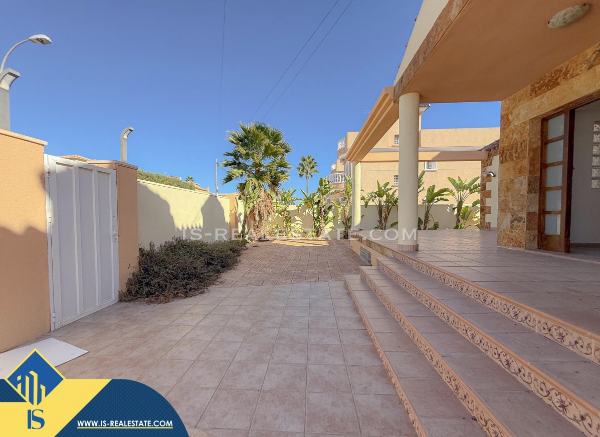7-ių kambarių vila su privačiu baseinu, Ispanijoje, Alicante provincijoje, Torrevieja mieste, bendras plotas 451 m², 1.5 kilometro iki jūros, 45 kilometrai iki Alicante oro uosto. Turtui priklauso terasa, privatus baseinas, garažas, privatus kiemas. Netoli turto yra parduotuvės, restoranai, autobusų stotelės, vaikų zonos, degalinės, žalios zonos, kavinės, vaistinės
