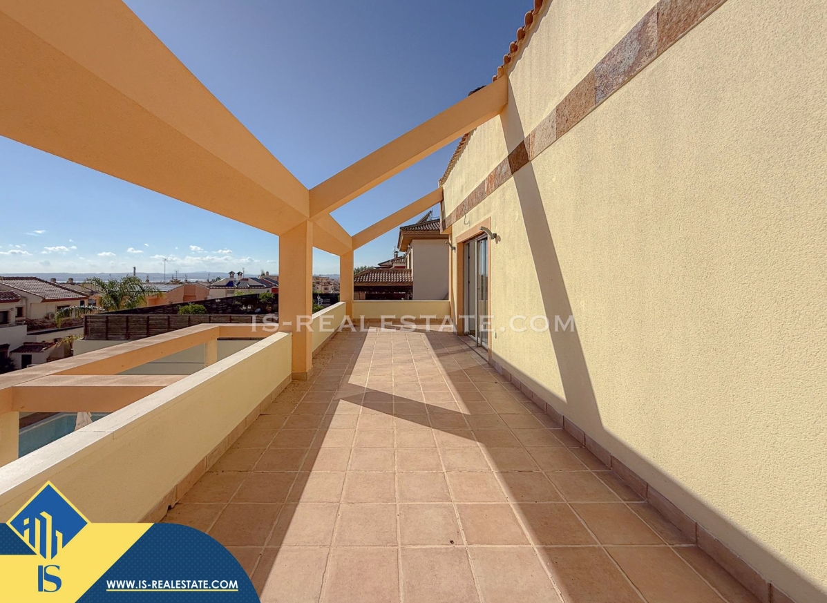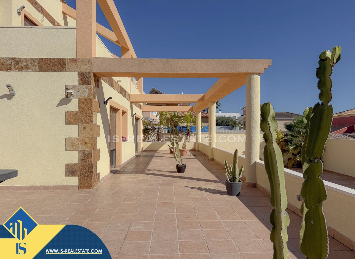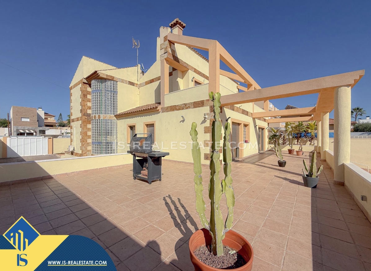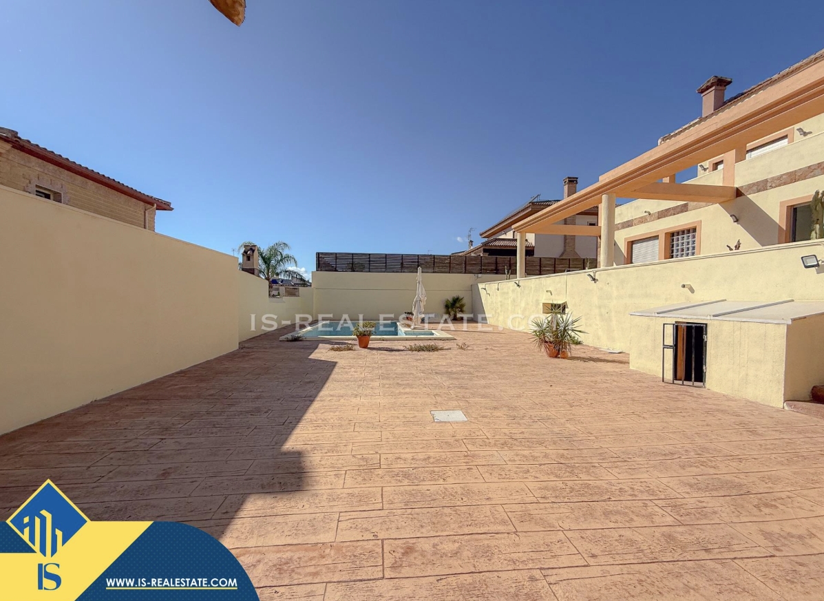 7-ių kambarių vila su privačiu baseinu, Ispanijoje, Alicante provincijoje, Torrevieja mieste, bendras plotas 451 m², 1.5 kilometro iki jūros, 45 kilometrai iki Alicante oro uosto. Turtui priklauso terasa, privatus baseinas, garažas, privatus kiemas. Netoli turto yra parduotuvės, restoranai, autobusų stotelės, vaikų zonos, degalinės, žalios zonos, kavinės, vaistinės