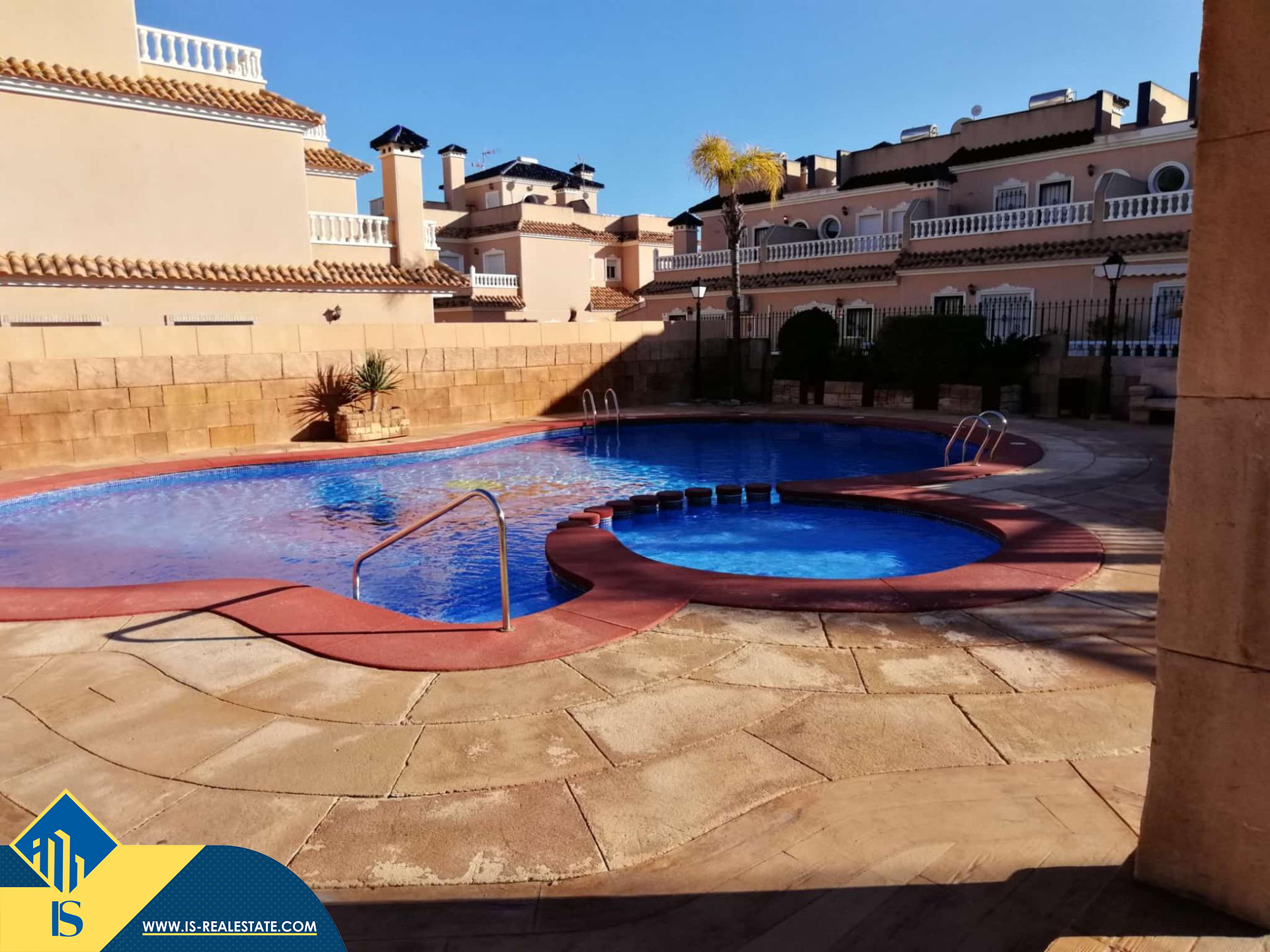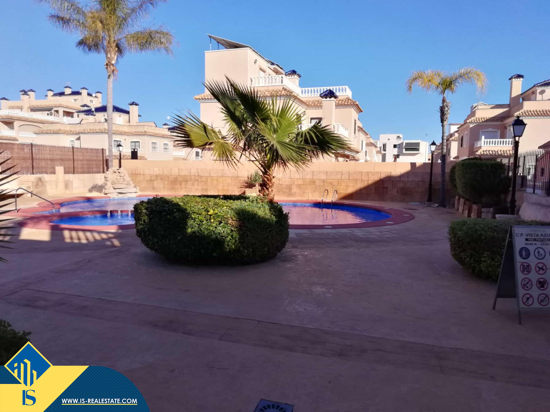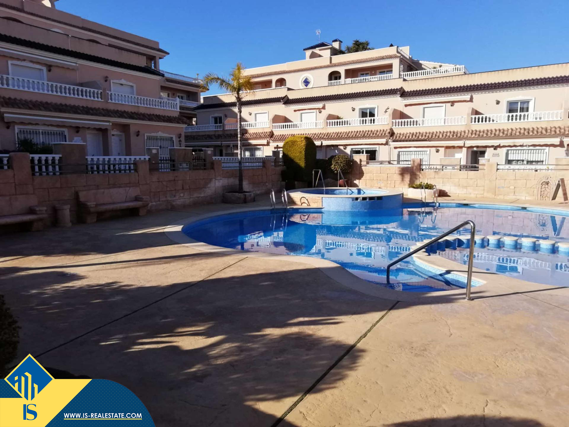 3-jų kambarių namas su bendru baseinu, Ispanijoje, Alicante provincijoje, Orihuela Costa mieste, bendras plotas 77 m², 3 kilometrai iki jūros, 57 kilometrai iki Alicante oro uosto. Turtui priklauso bendras baseinas, terasa. Netoli turto yra parduotuvės, restoranai, autobusų stotelės, vaikų zonos, degalinės, žalios zonos, kavinės, ligoninė