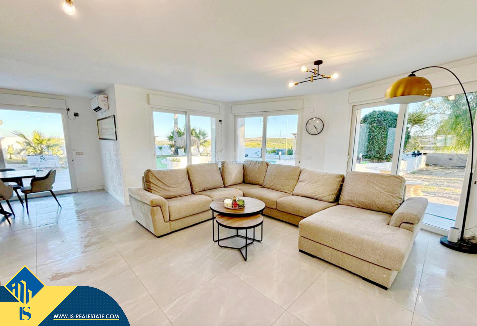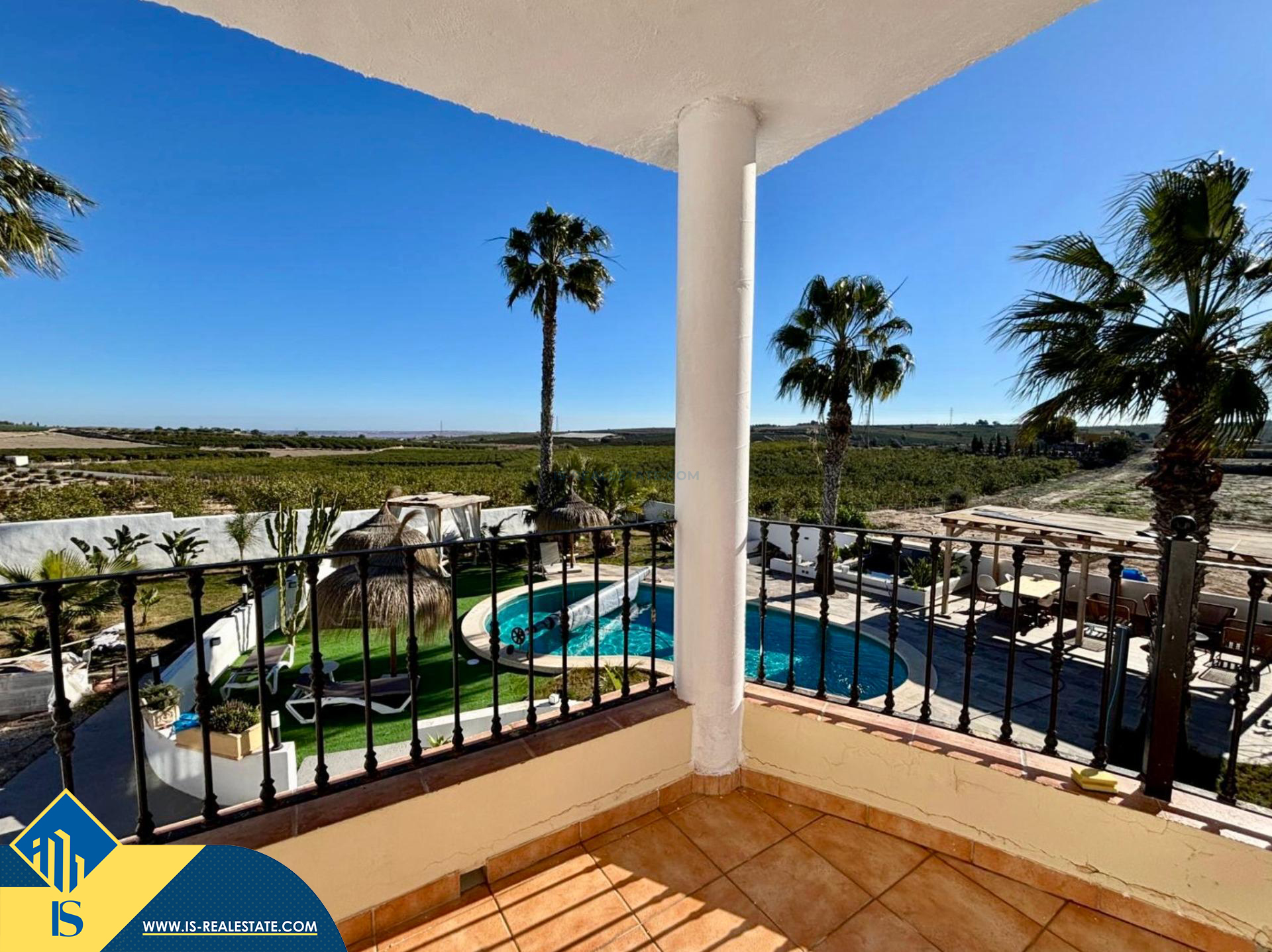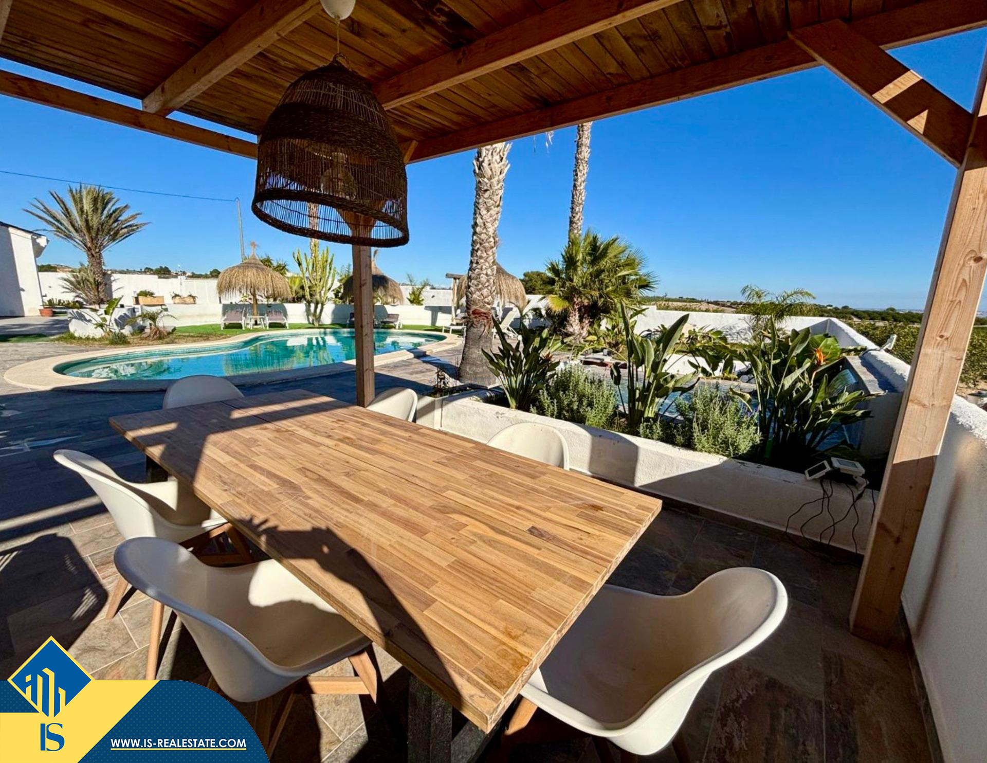 5-ių kambarių vila su privačiu baseinu, Ispanijoje, Alicante provincijoje, San Miguel de Salinas mieste, bendras plotas 300 m², 8 kilometrai iki jūros, 45 kilometrai iki Alicante miesto oro uosto. Turtui priklauso terasa, privatus baseinas, vieta automobiliui. Netoli turto yra parduotuvės, restoranai, vaistinės, autobusų stotelės, degalinės, žalios zonos, kavinės