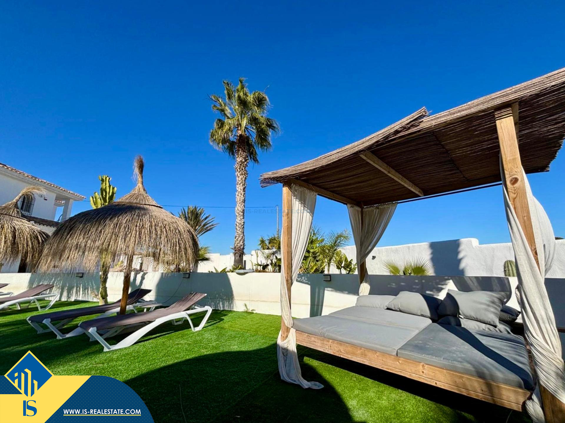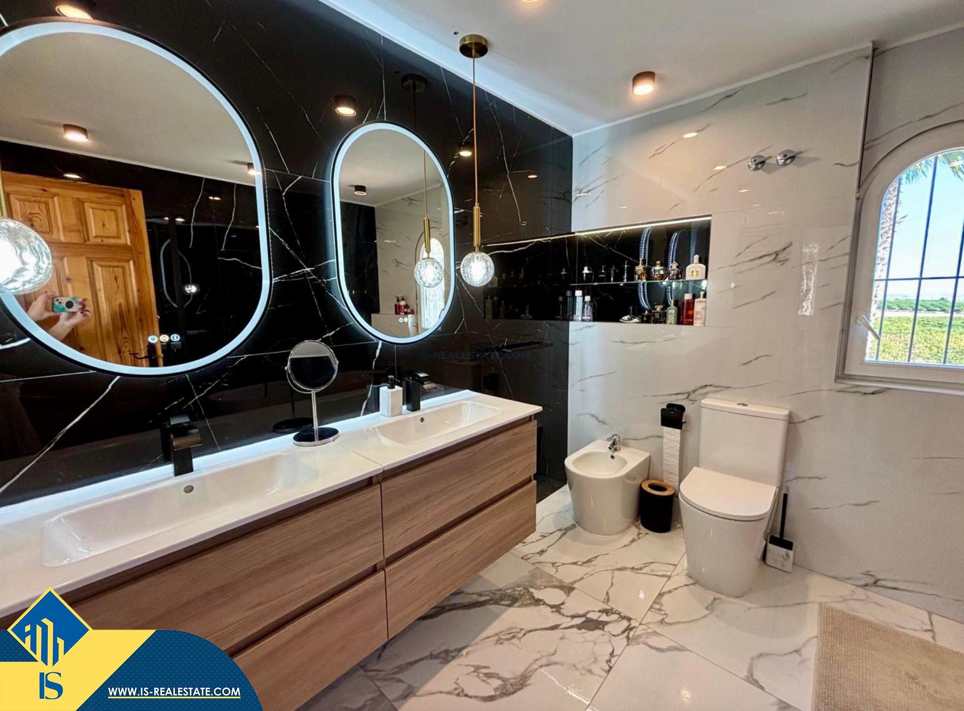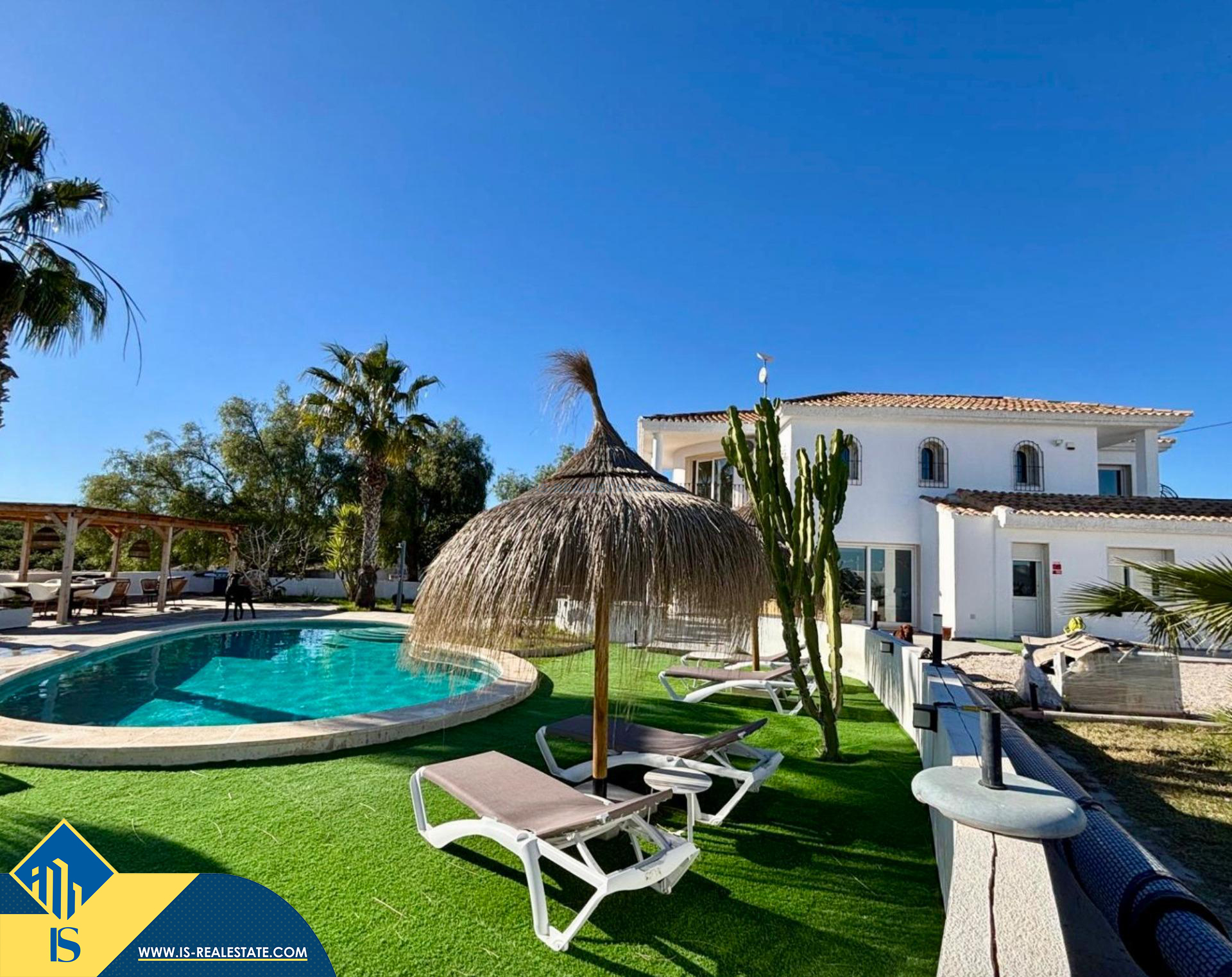 5-ių kambarių vila su privačiu baseinu, Ispanijoje, Alicante provincijoje, San Miguel de Salinas mieste, bendras plotas 300 m², 8 kilometrai iki jūros, 45 kilometrai iki Alicante miesto oro uosto. Turtui priklauso terasa, privatus baseinas, vieta automobiliui. Netoli turto yra parduotuvės, restoranai, vaistinės, autobusų stotelės, degalinės, žalios zonos, kavinės