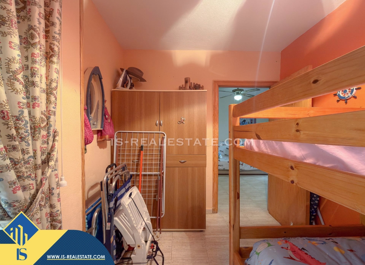 3-jų kambarių apartamentas su bendru baseinu, Ispanijoje, Alicante provincijoje, Torrevieja mieste, Playa de los Locos rajone, bendras plotas 58 m², 350 metrų iki jūros, 45 kilometrai iki Alicante oro uosto. Turtui priklauso bendras baseinas, terasa, liftas. Netoli turto yra parduotuvės, restoranai, autobusų stotelės, degalinės, žalios zonos, kavinės, vaistinės